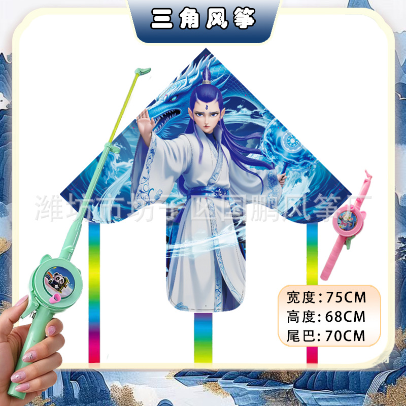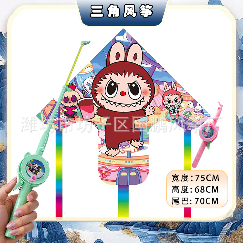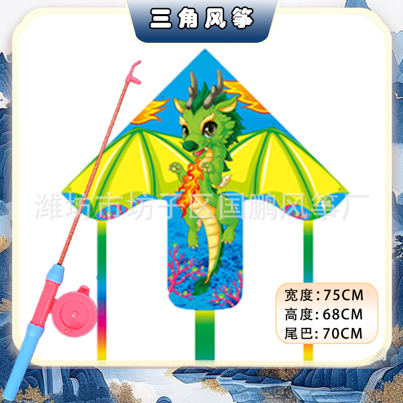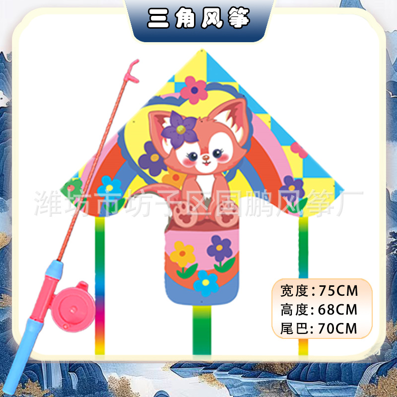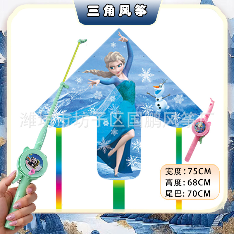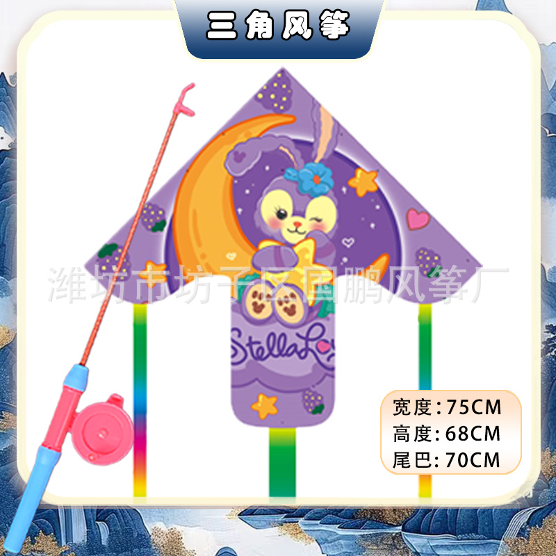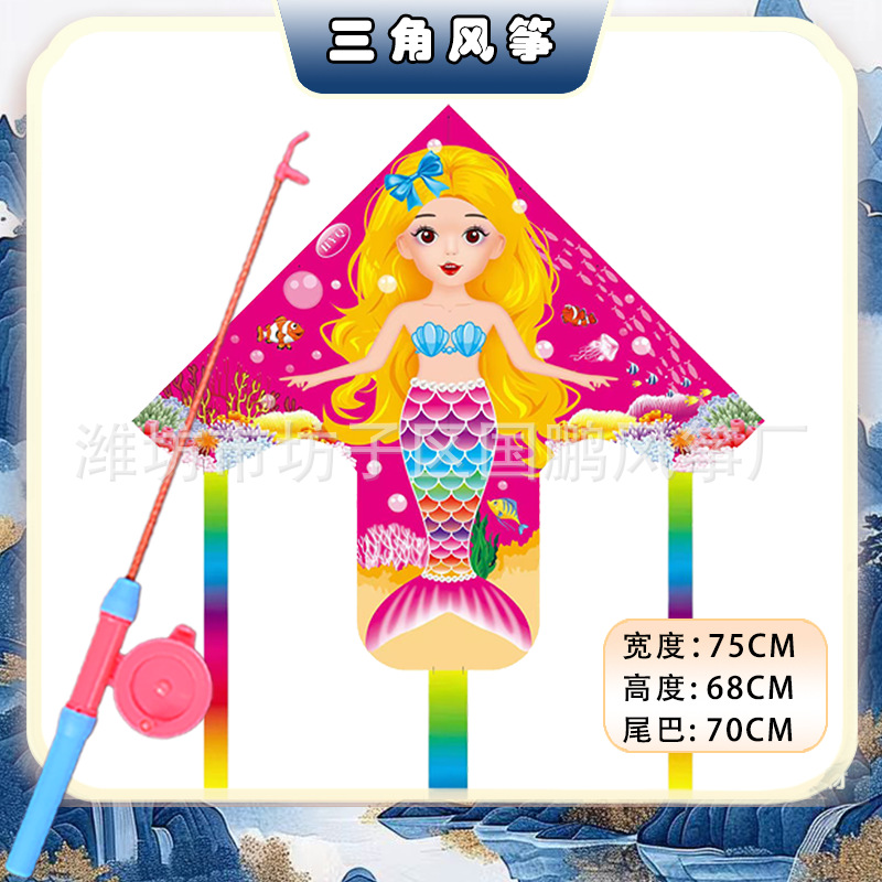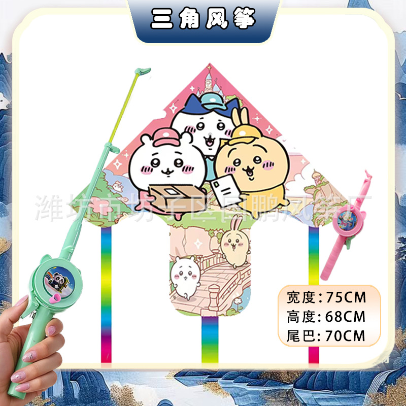 潍坊大三角塑料风筝批发新款儿童手持鱼竿风筝钓鱼竿易飞地摊玩具