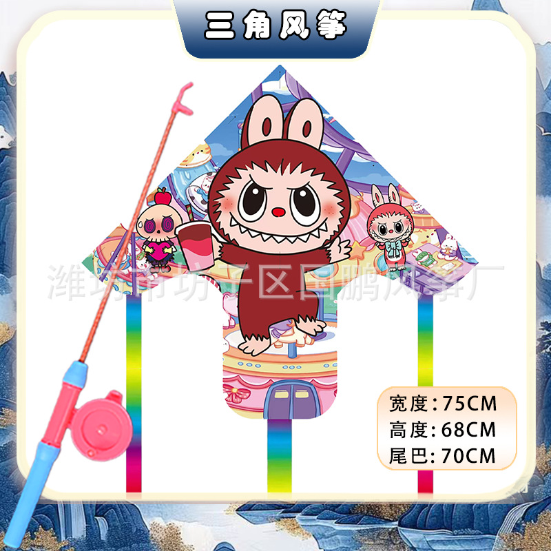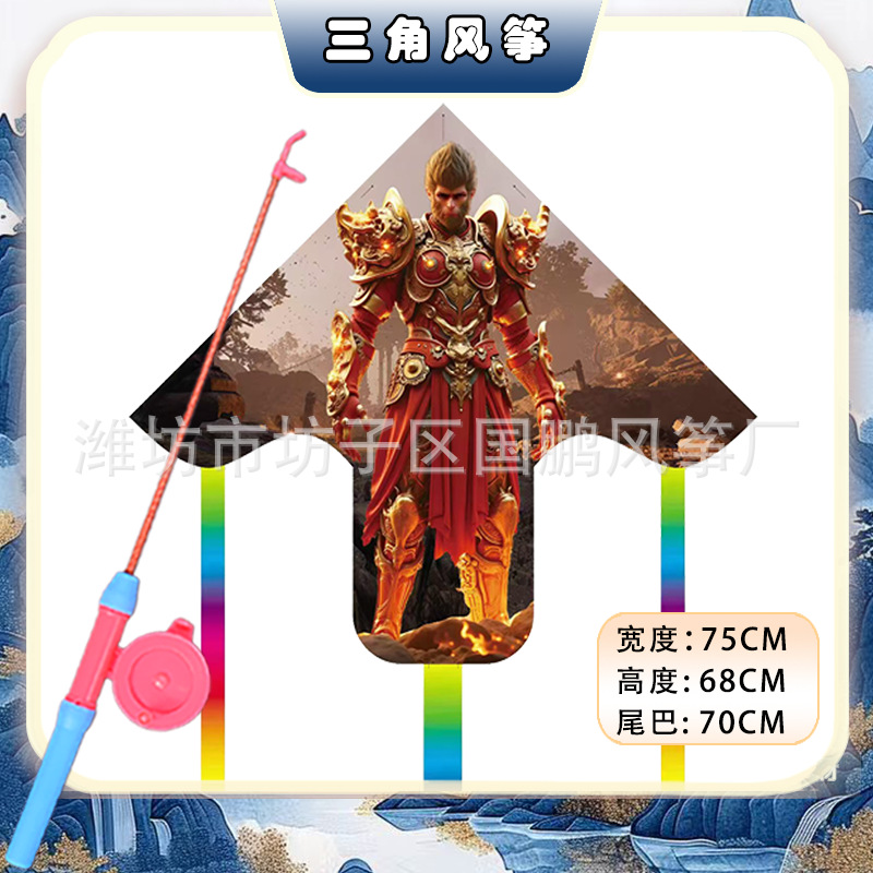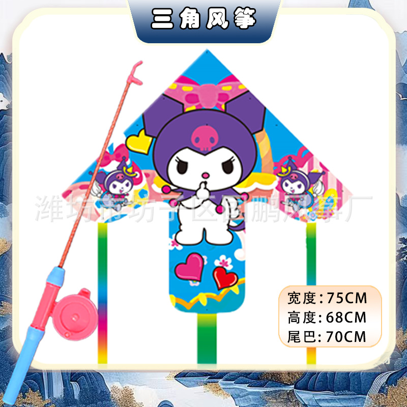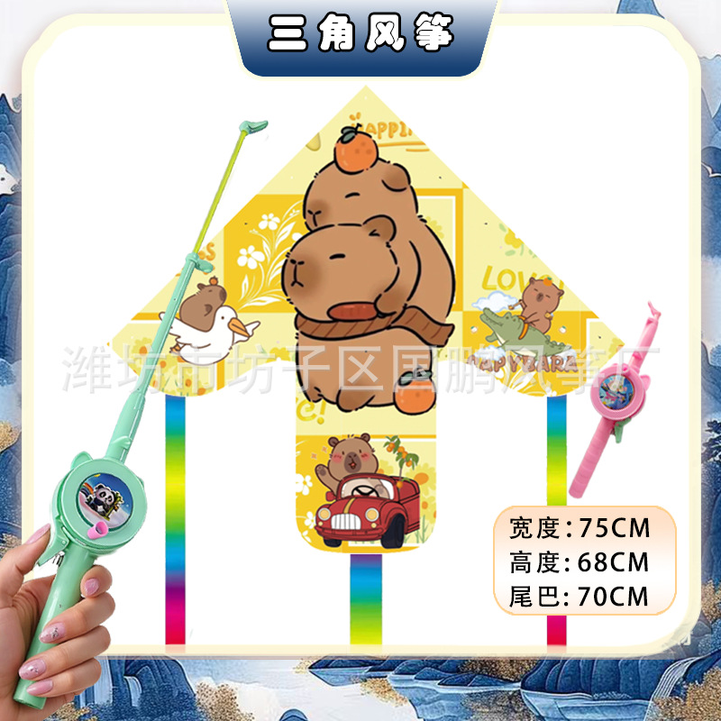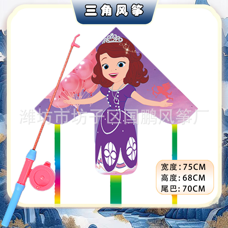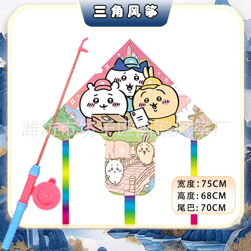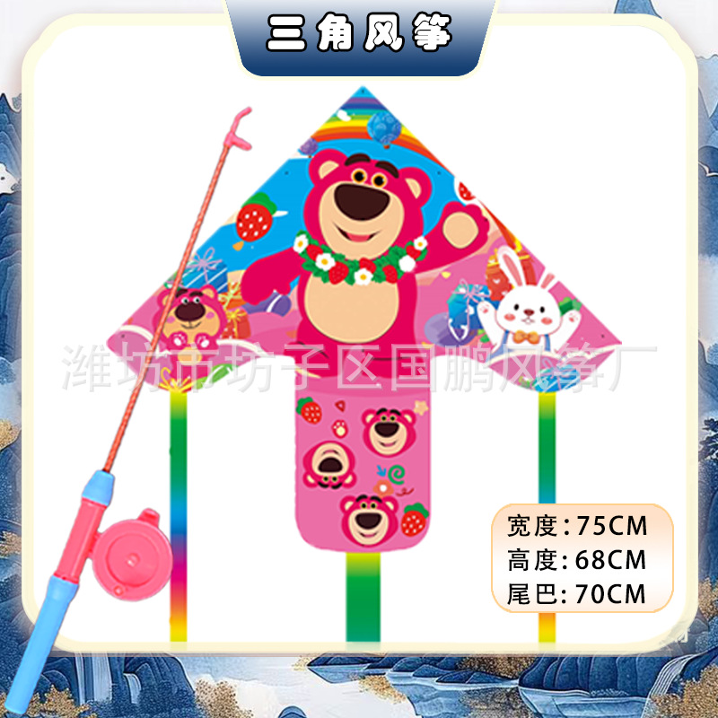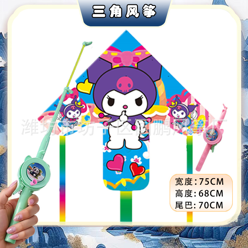 潍坊大三角塑料风筝批发新款儿童手持鱼竿风筝钓鱼竿易飞地摊玩具