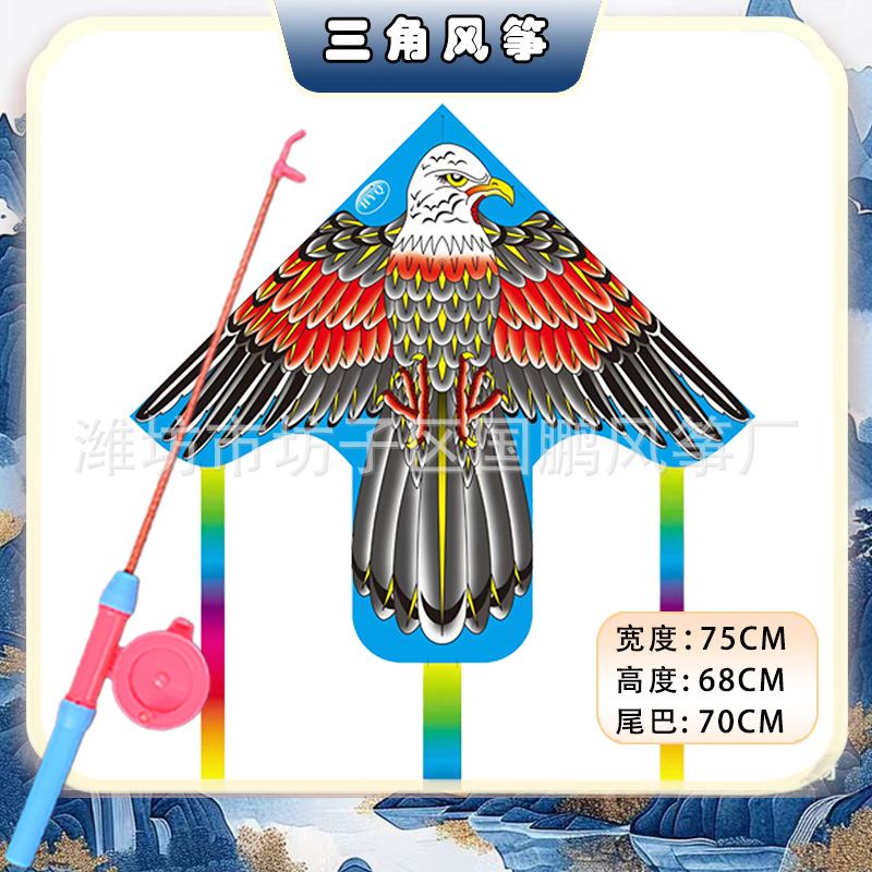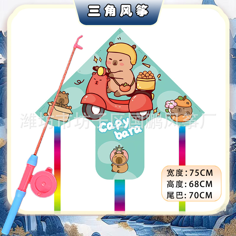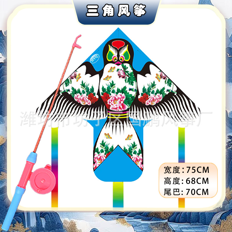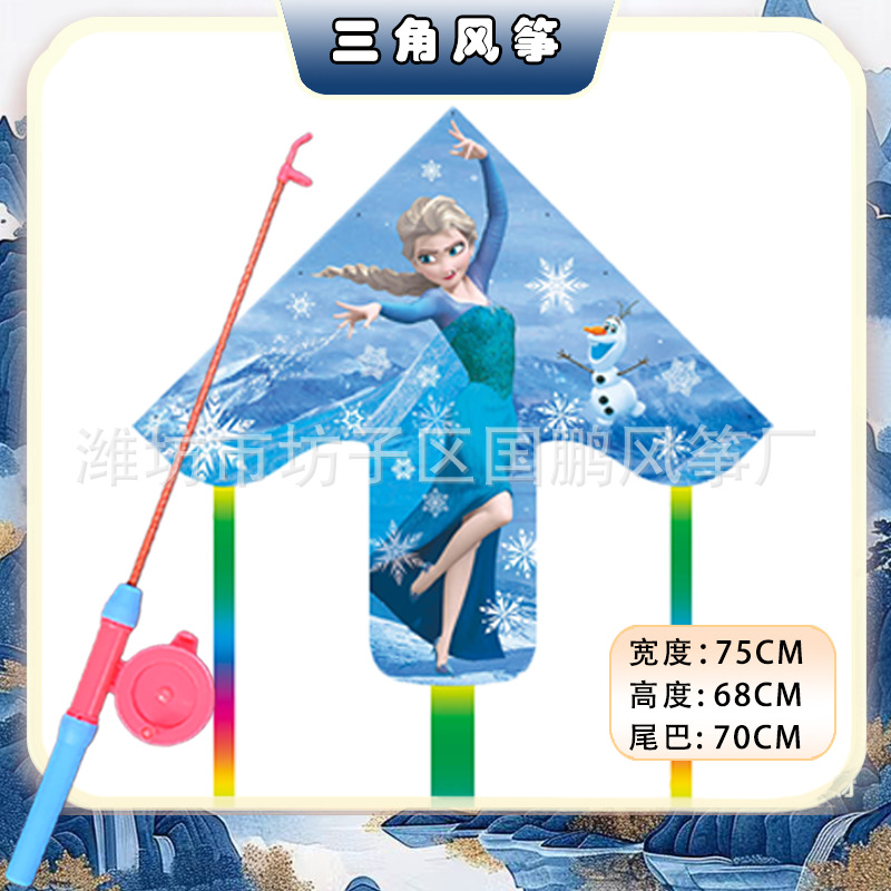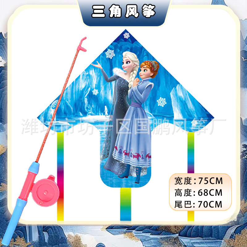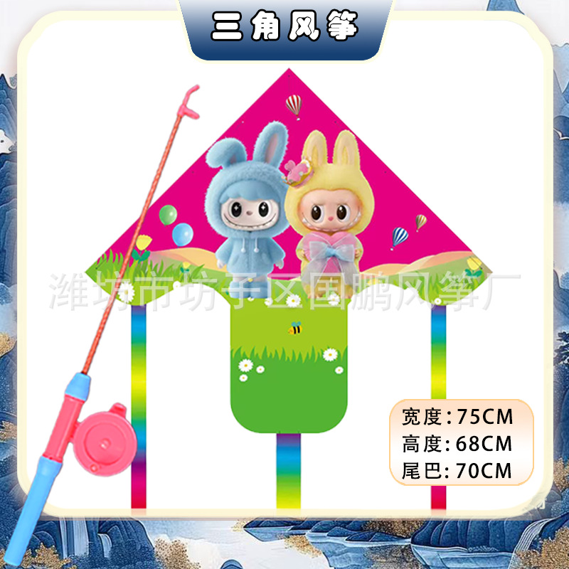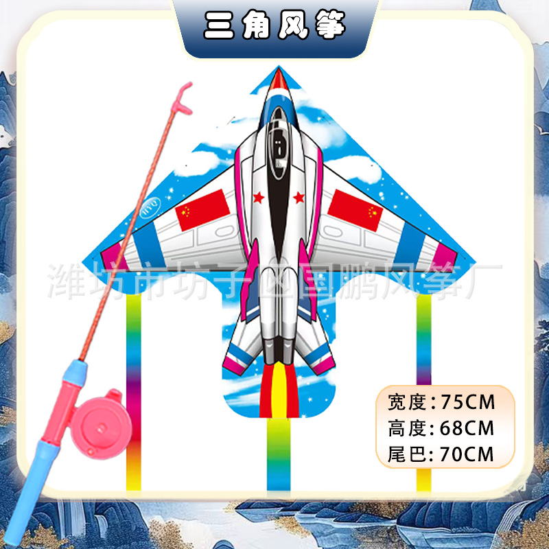潍坊大三角塑料风筝批发新款儿童手持鱼竿风筝钓鱼竿易飞地摊玩具