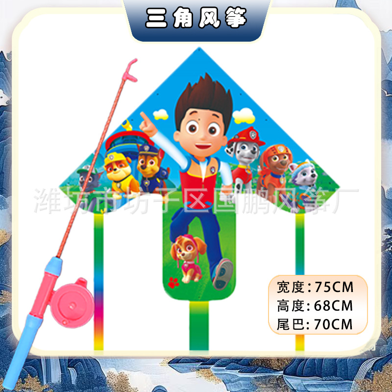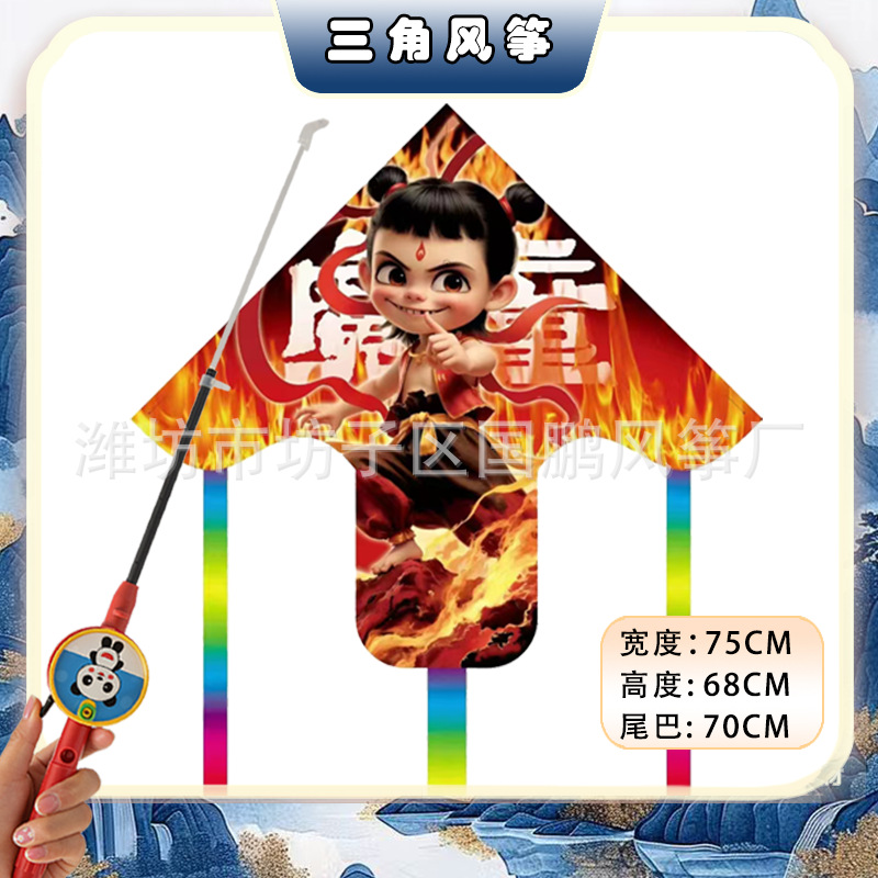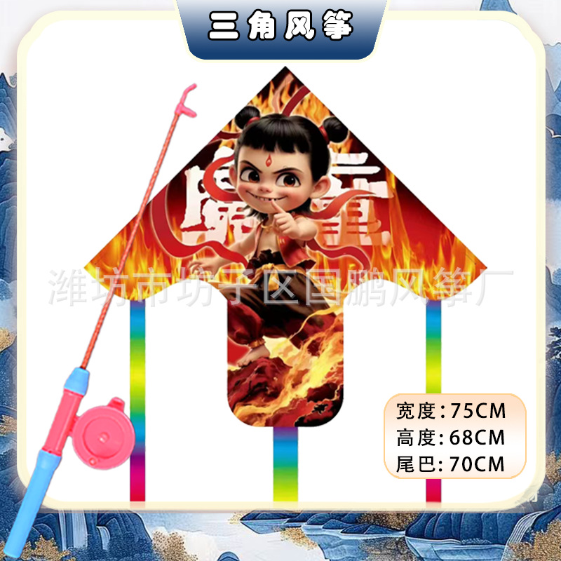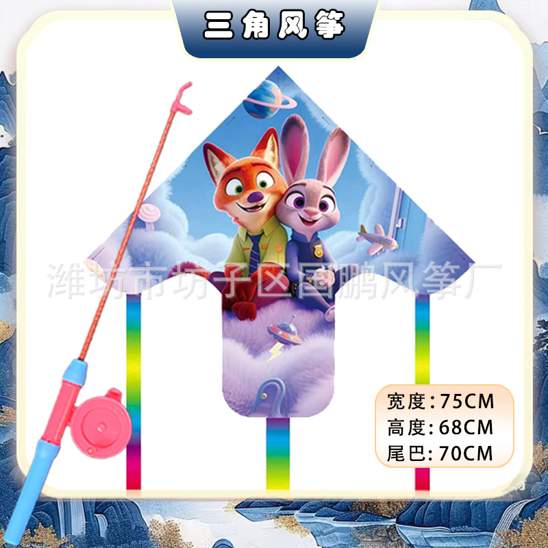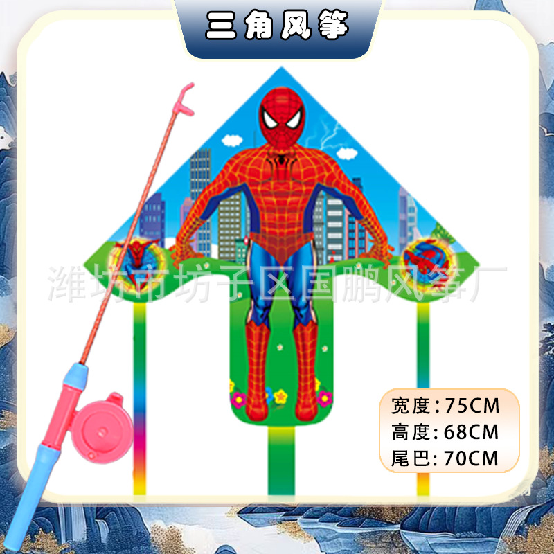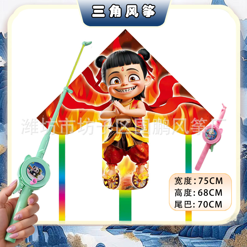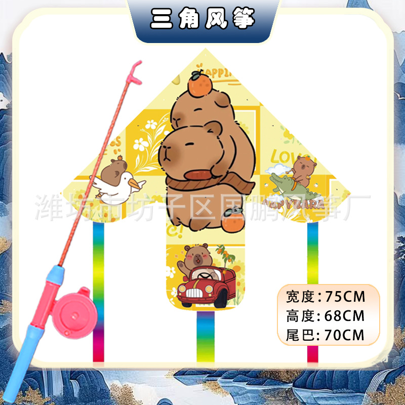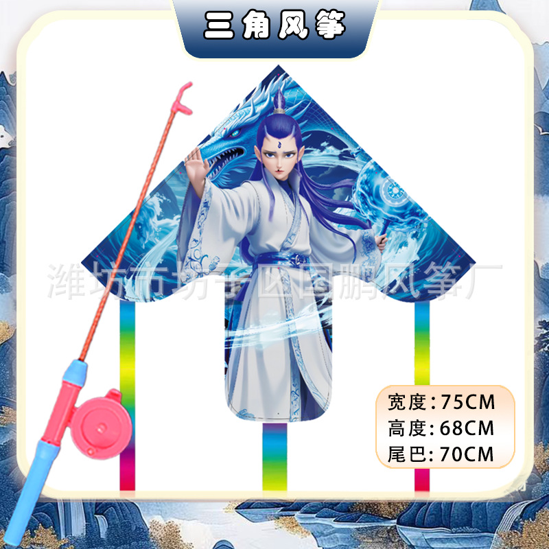 潍坊大三角塑料风筝批发新款儿童手持鱼竿风筝钓鱼竿易飞地摊玩具