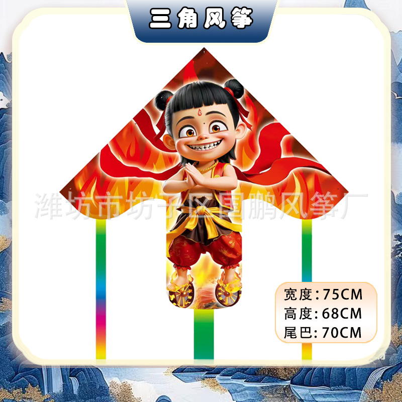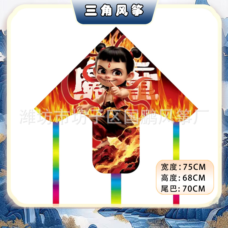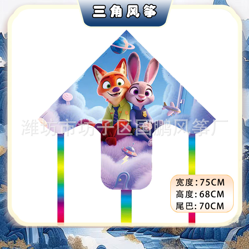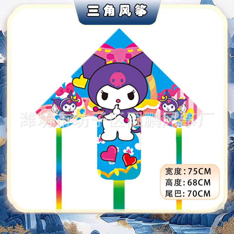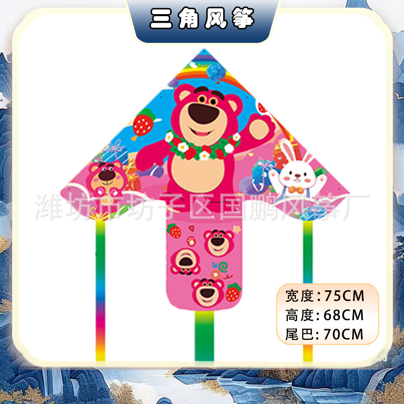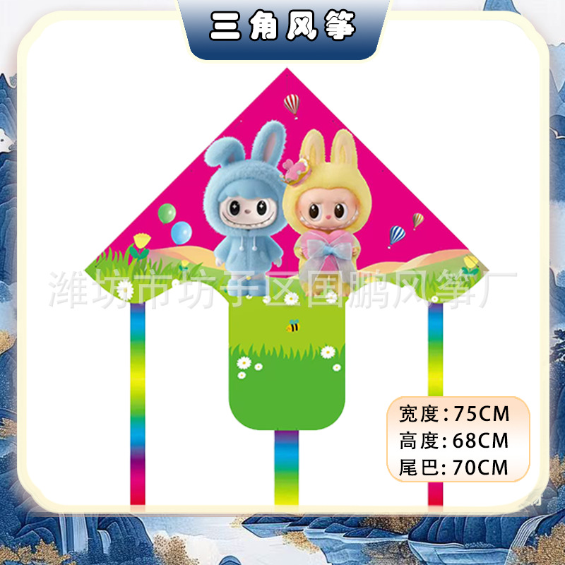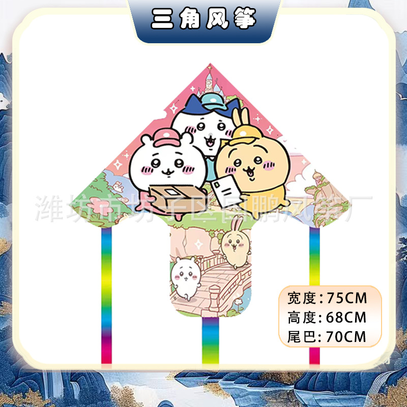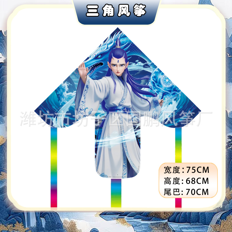 潍坊大三角塑料风筝批发新款儿童手持鱼竿风筝钓鱼竿易飞地摊玩具