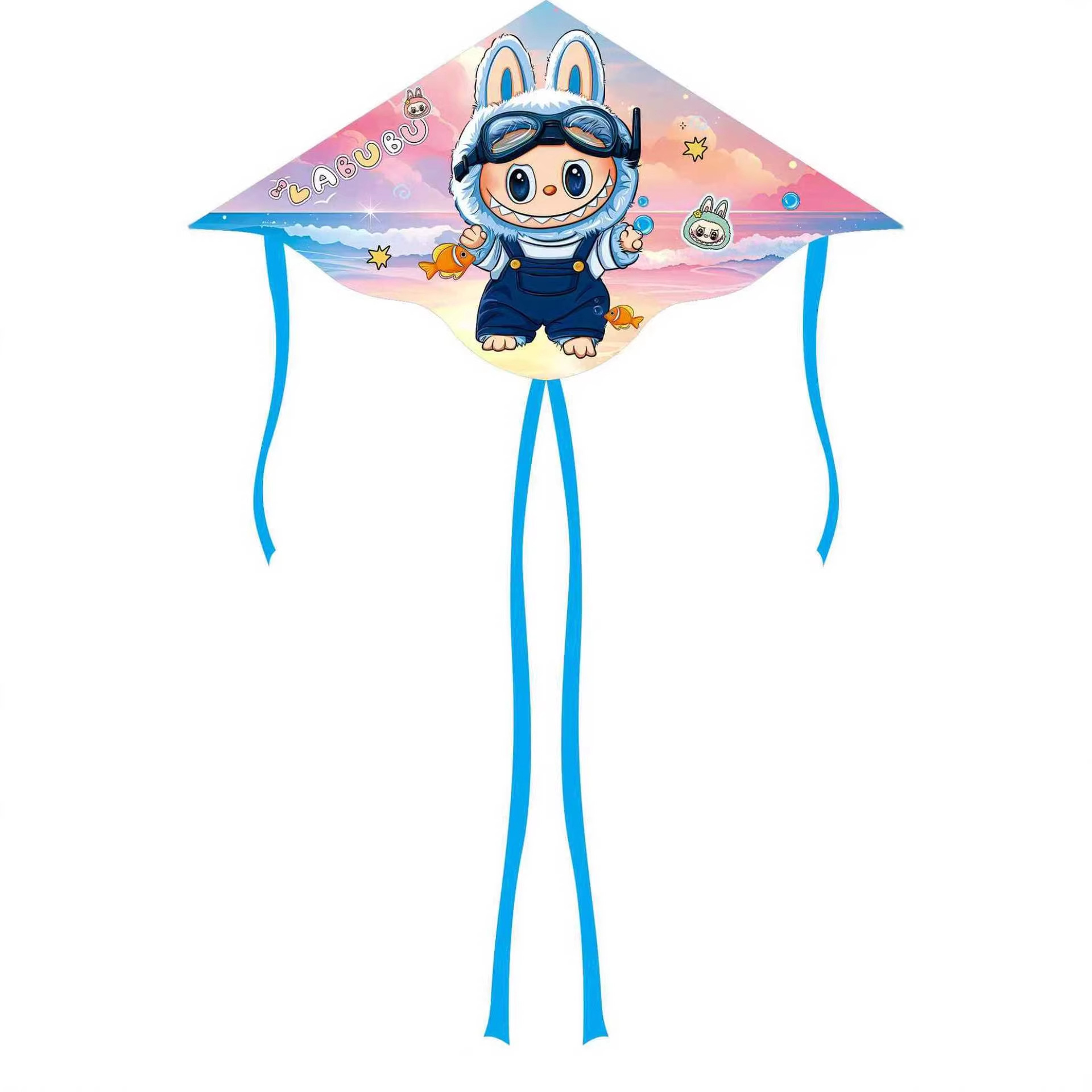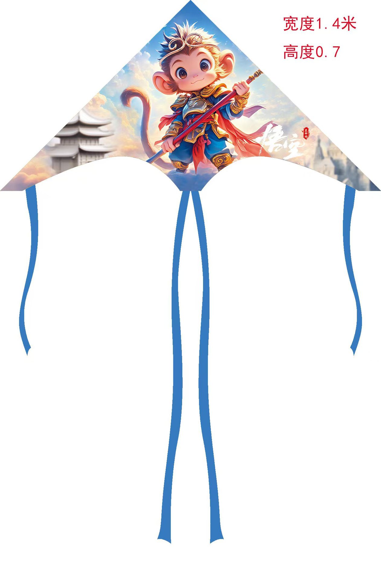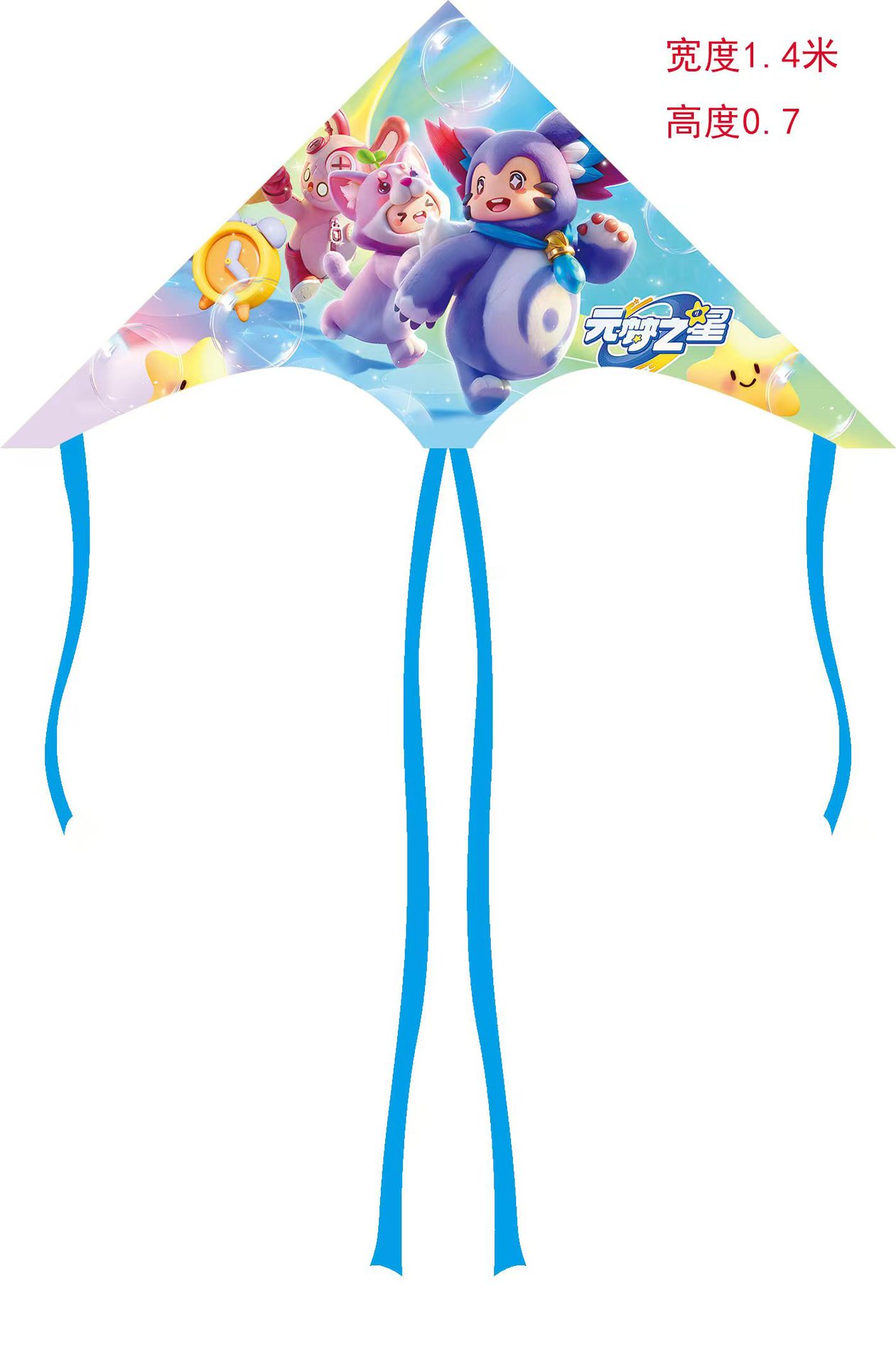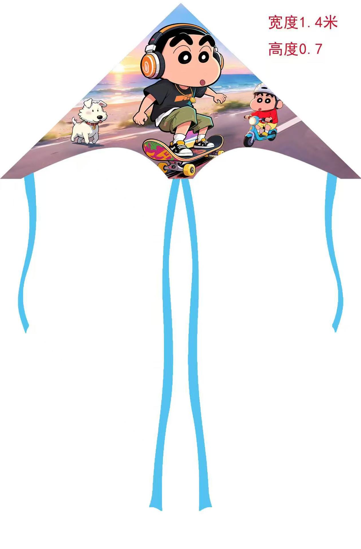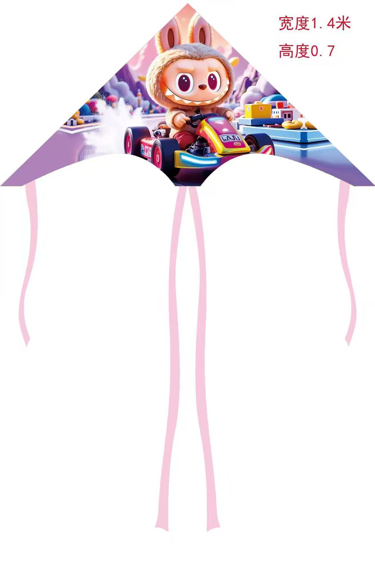 儿童风筝格子布料户外易起飞1.4米长尾卡通风筝批发广场摆摊线轮