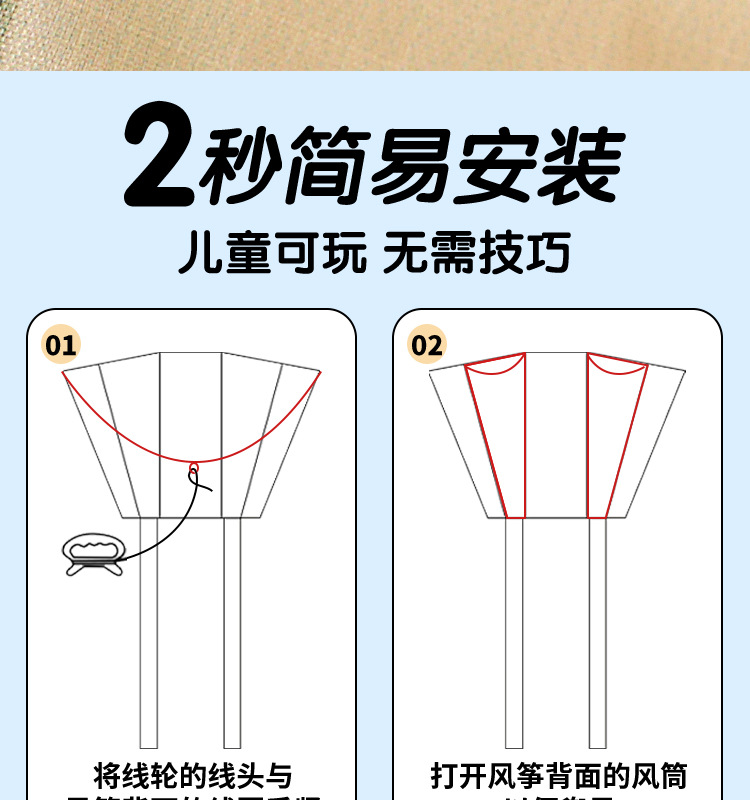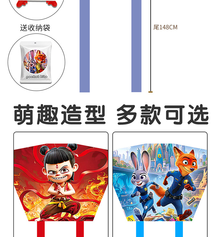 口袋风筝儿童手持新款无骨架便携迷你潍坊微风易飞批发卡通小风筝