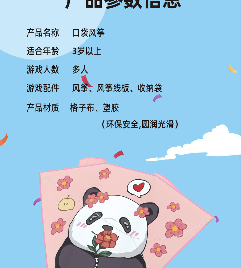 新款儿童户外口袋风筝玩具便携卡通公园郊游易飞风筝地摊夜市批发