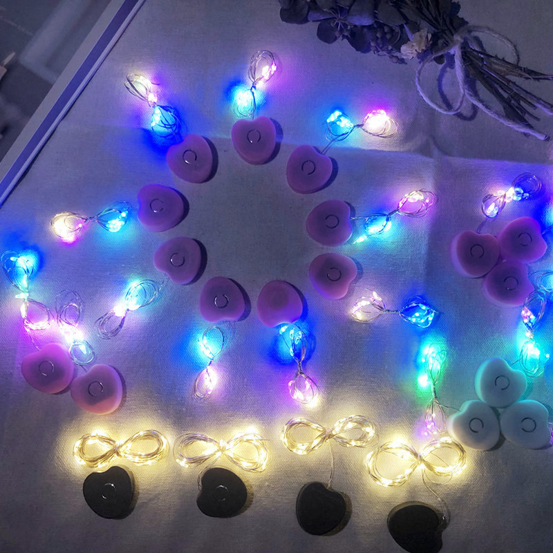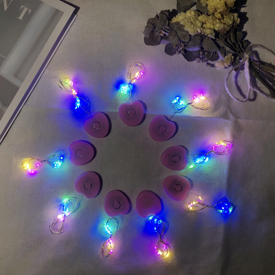 桃心七彩暖光圣诞节鲜花灯头饰 LED装饰灯发光花环配件 鲜花灯