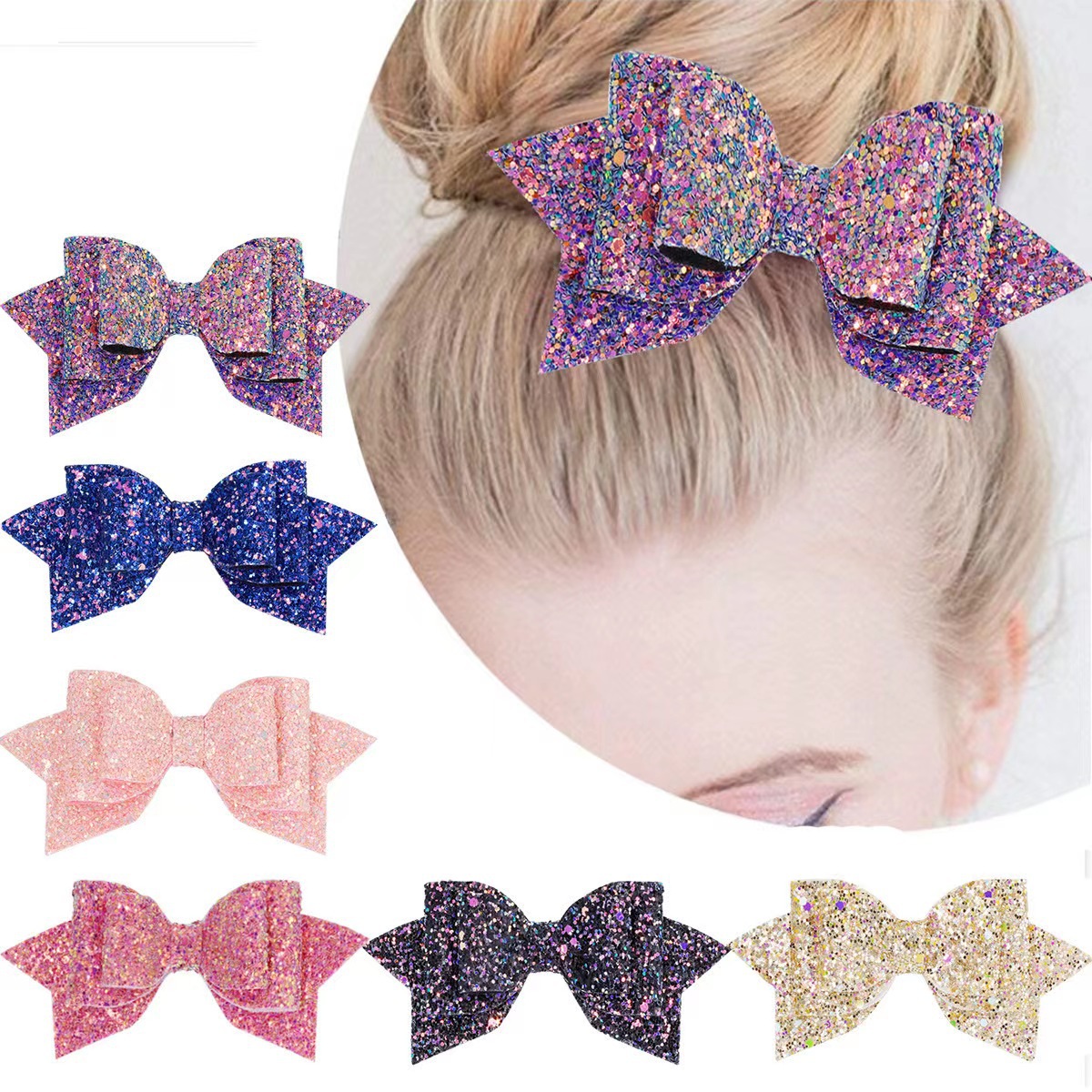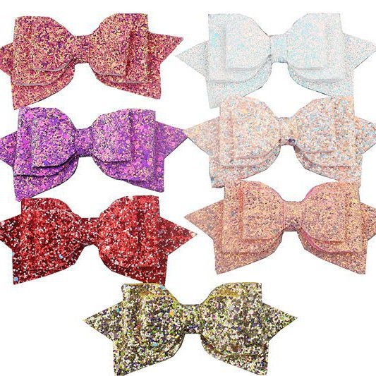 闪亮金葱粉glitter格利特蝴蝶结夹子Y夹弹簧夹扎马尾发夹丸子头夹