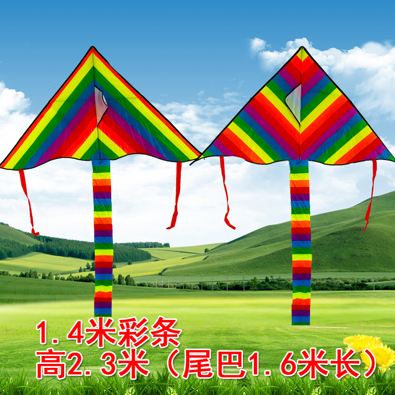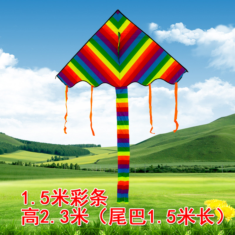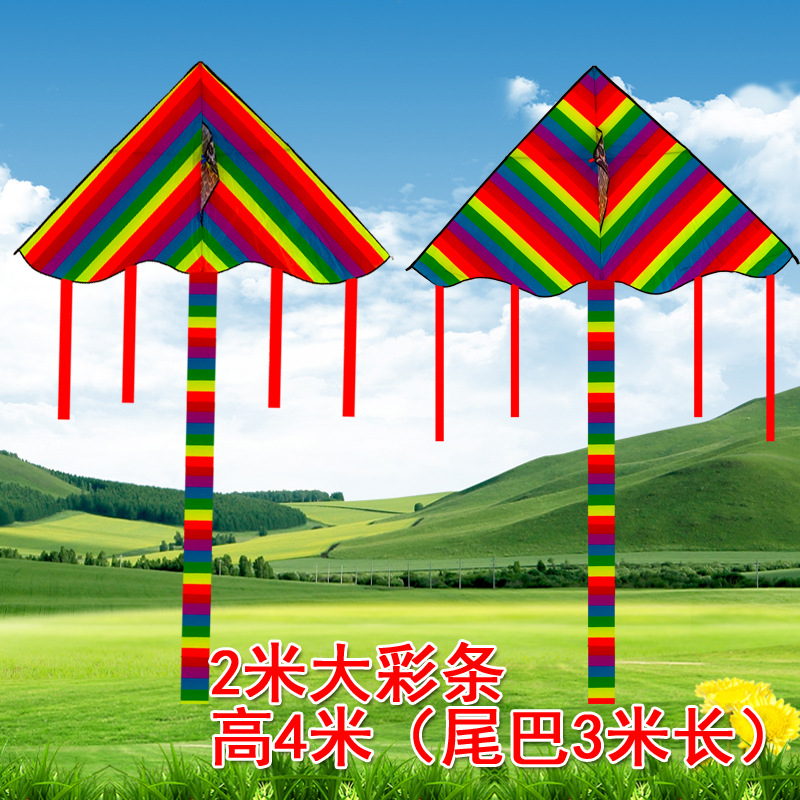 大黑彩头拼接风筝大炫彩风筝大彩条长尾风筝大型成人儿童风筝易飞