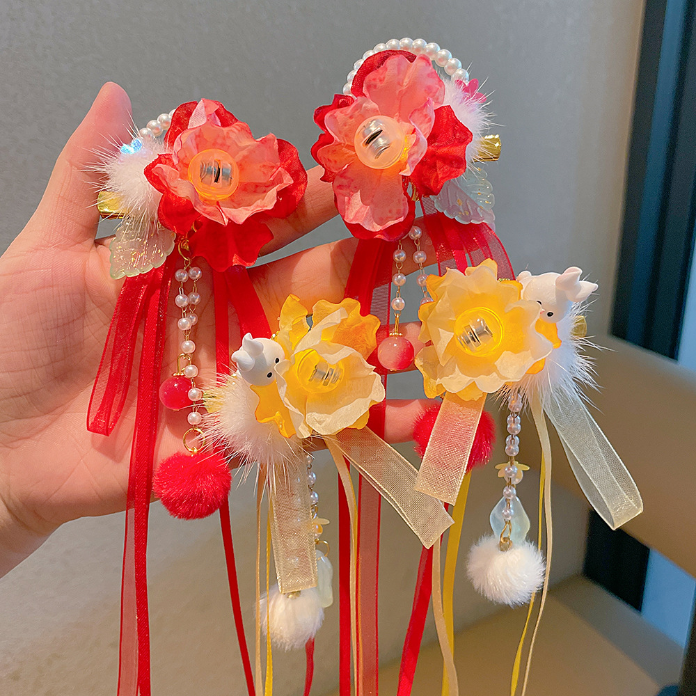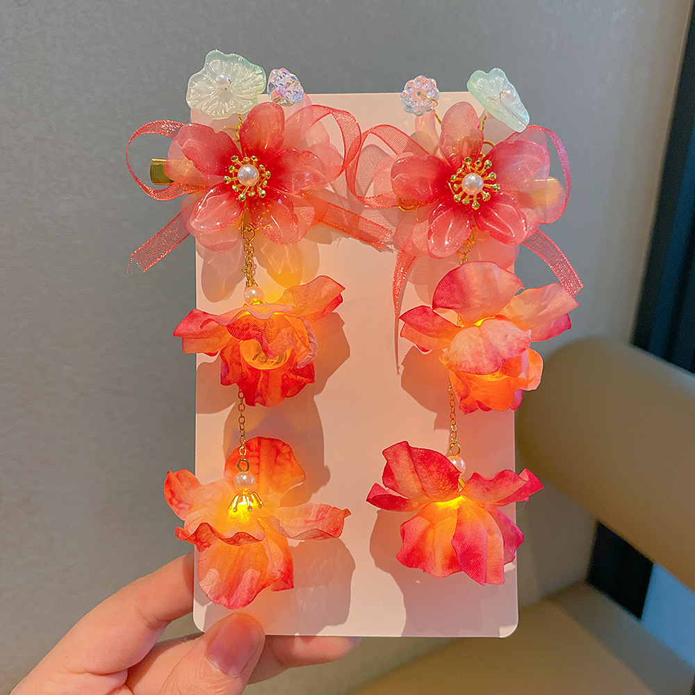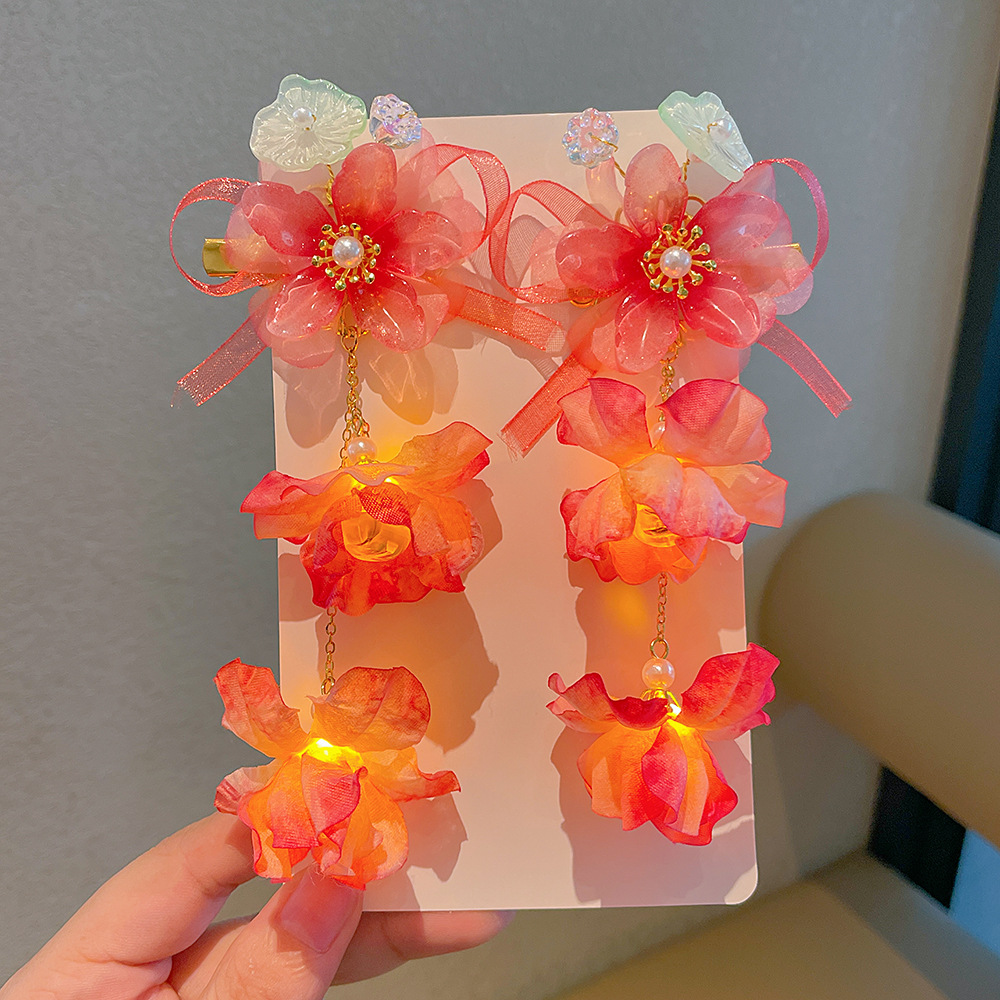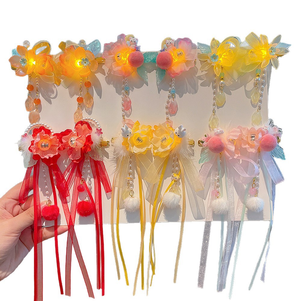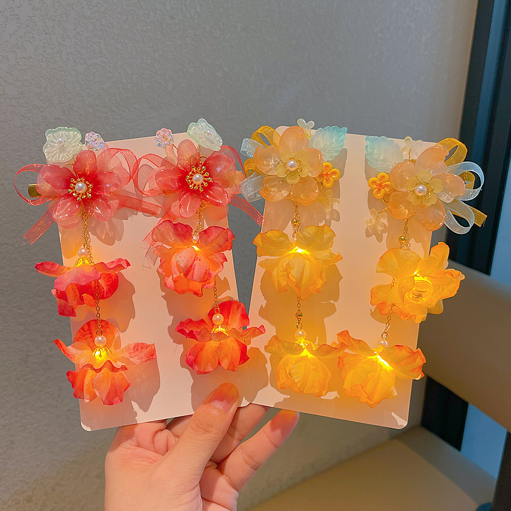 可发光花朵发夹女儿童圣诞节新款古风汉服头饰女童侧边碎发夹头饰