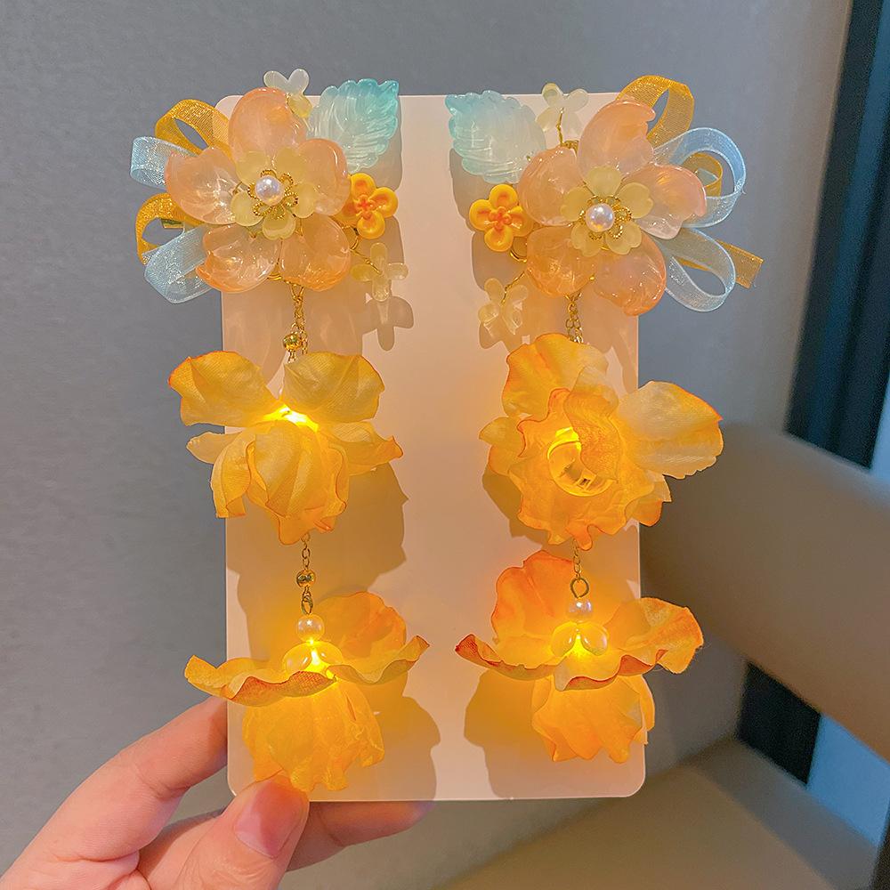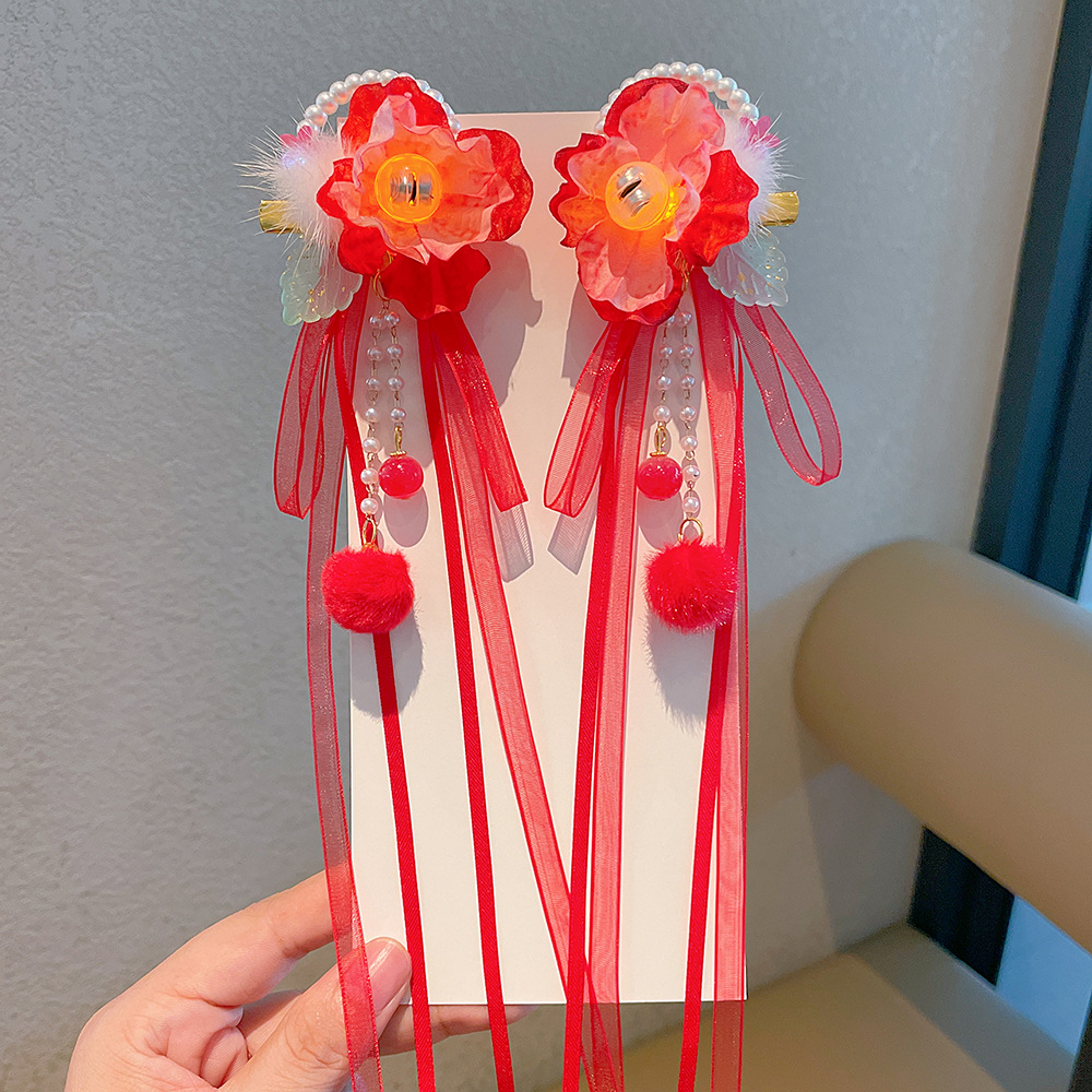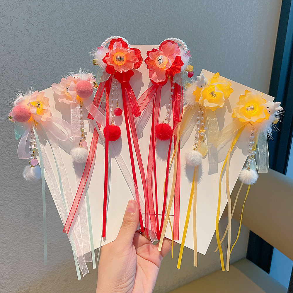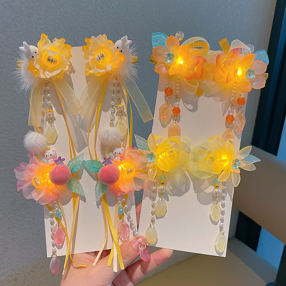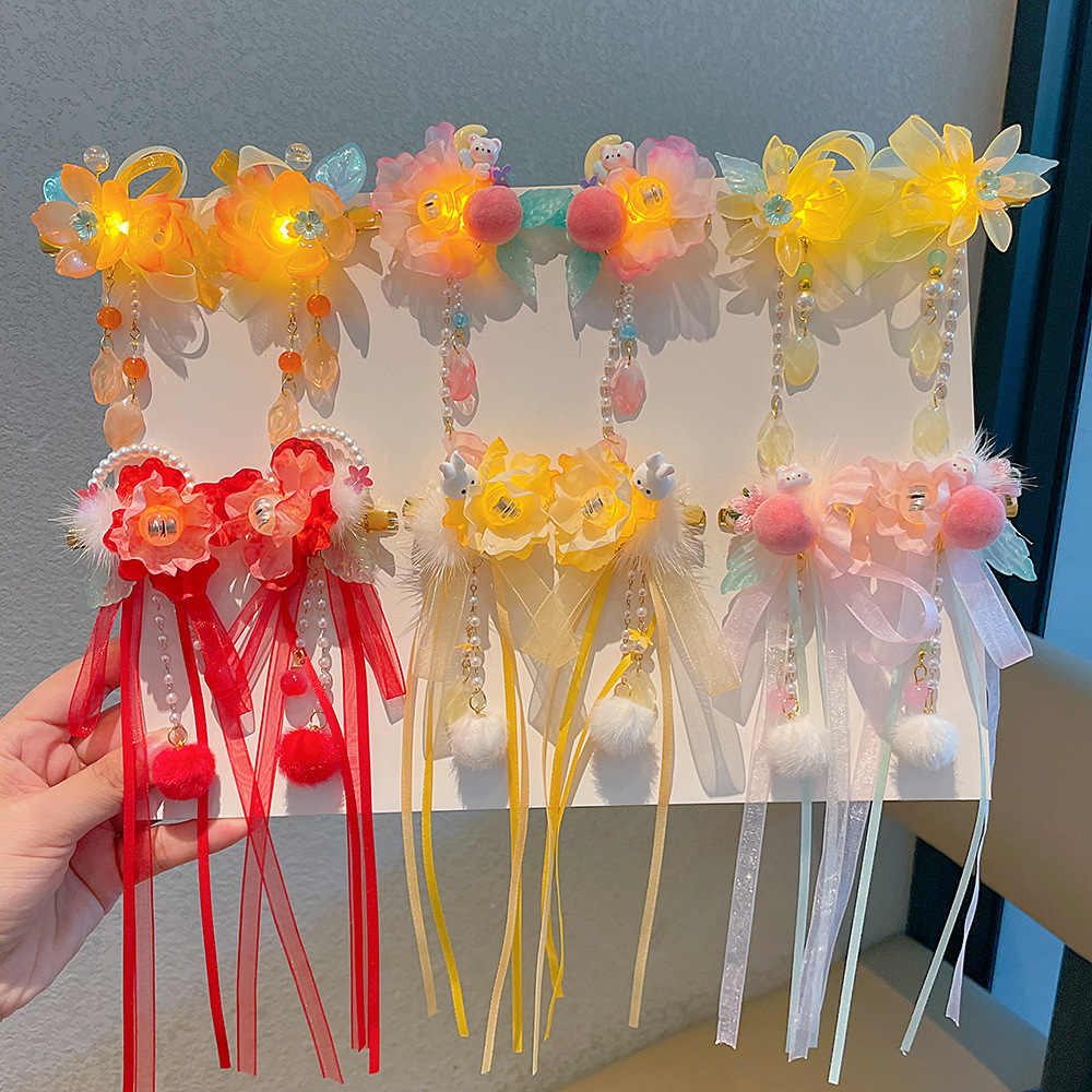 可发光花朵发夹女儿童圣诞节新款古风汉服头饰女童侧边碎发夹头饰