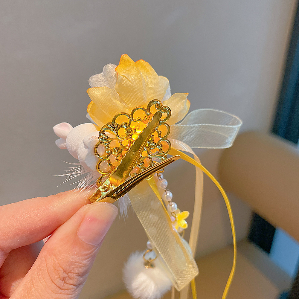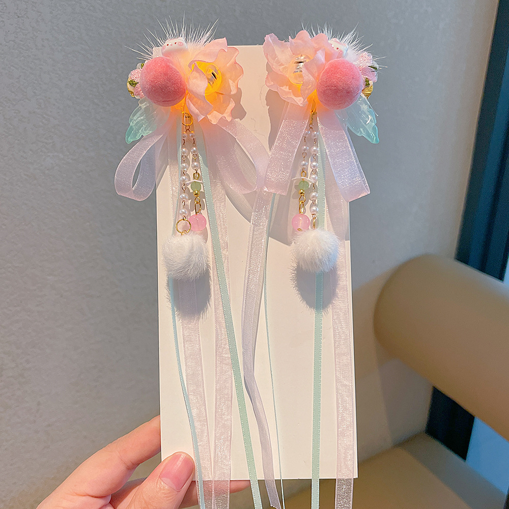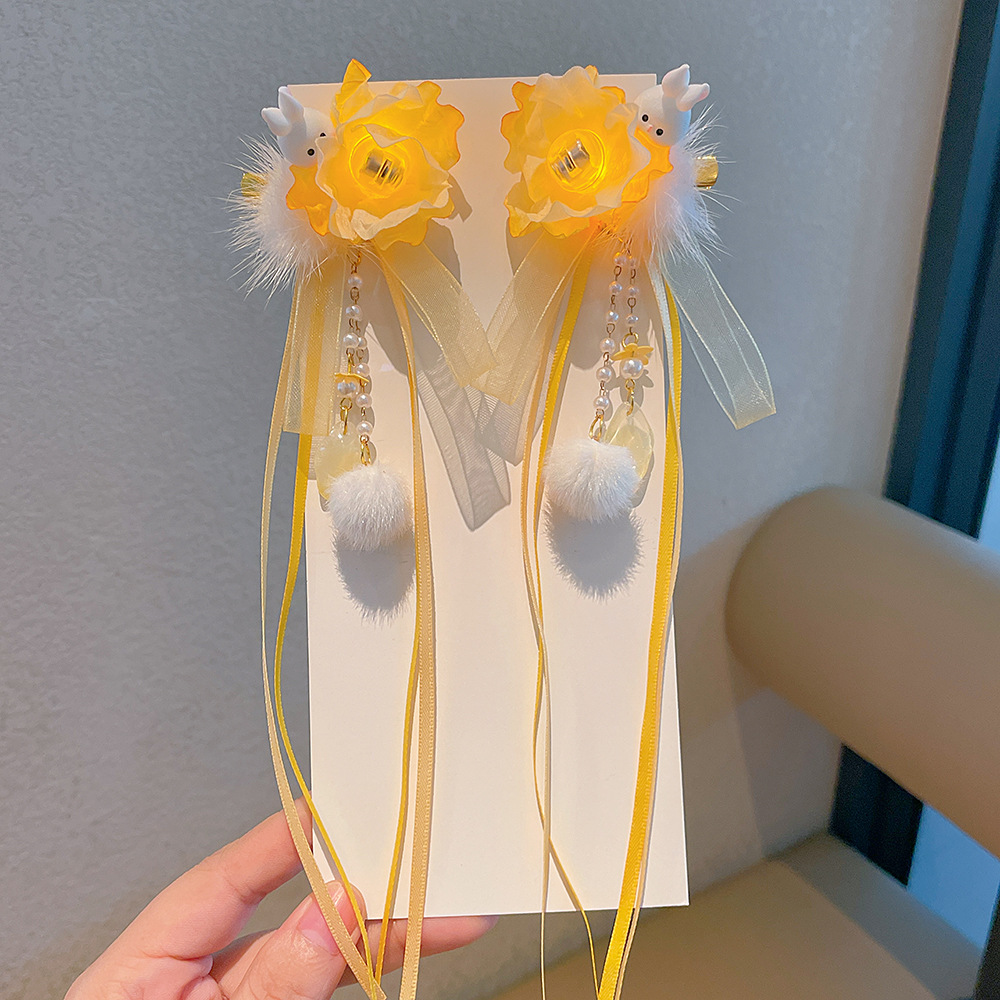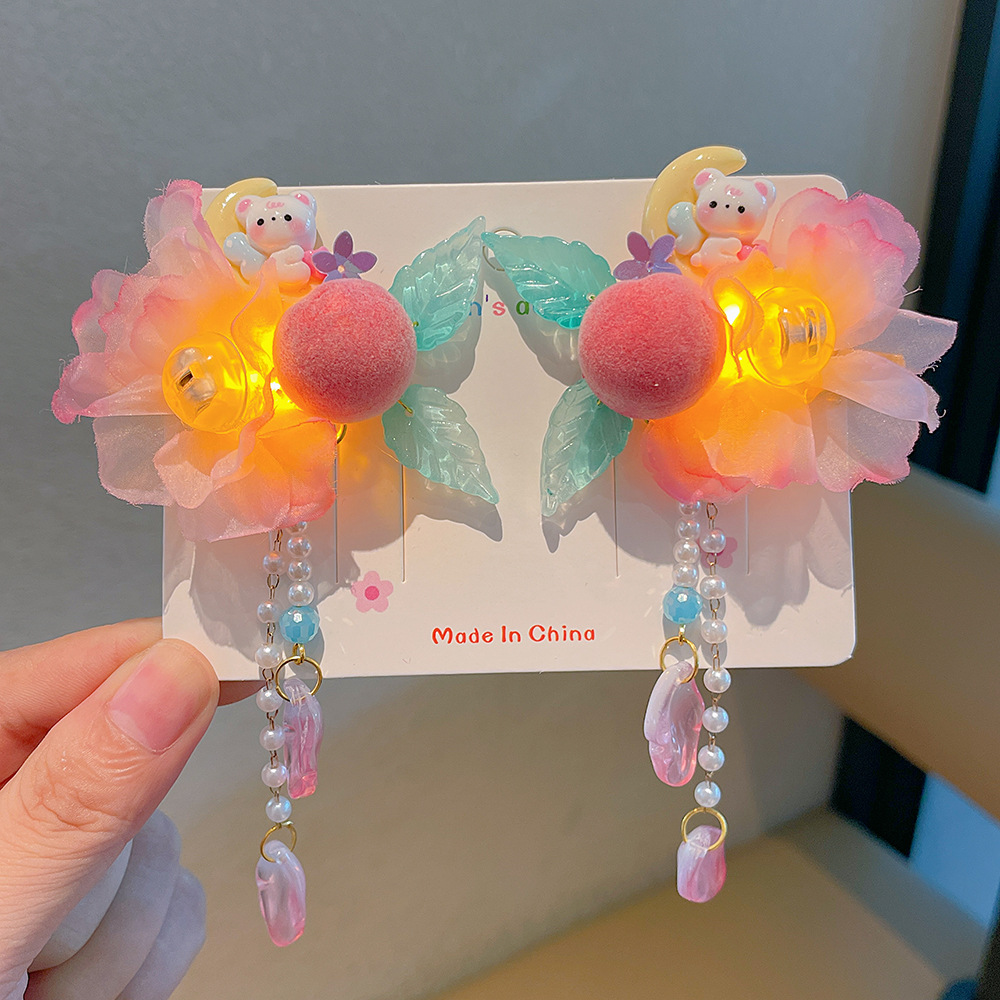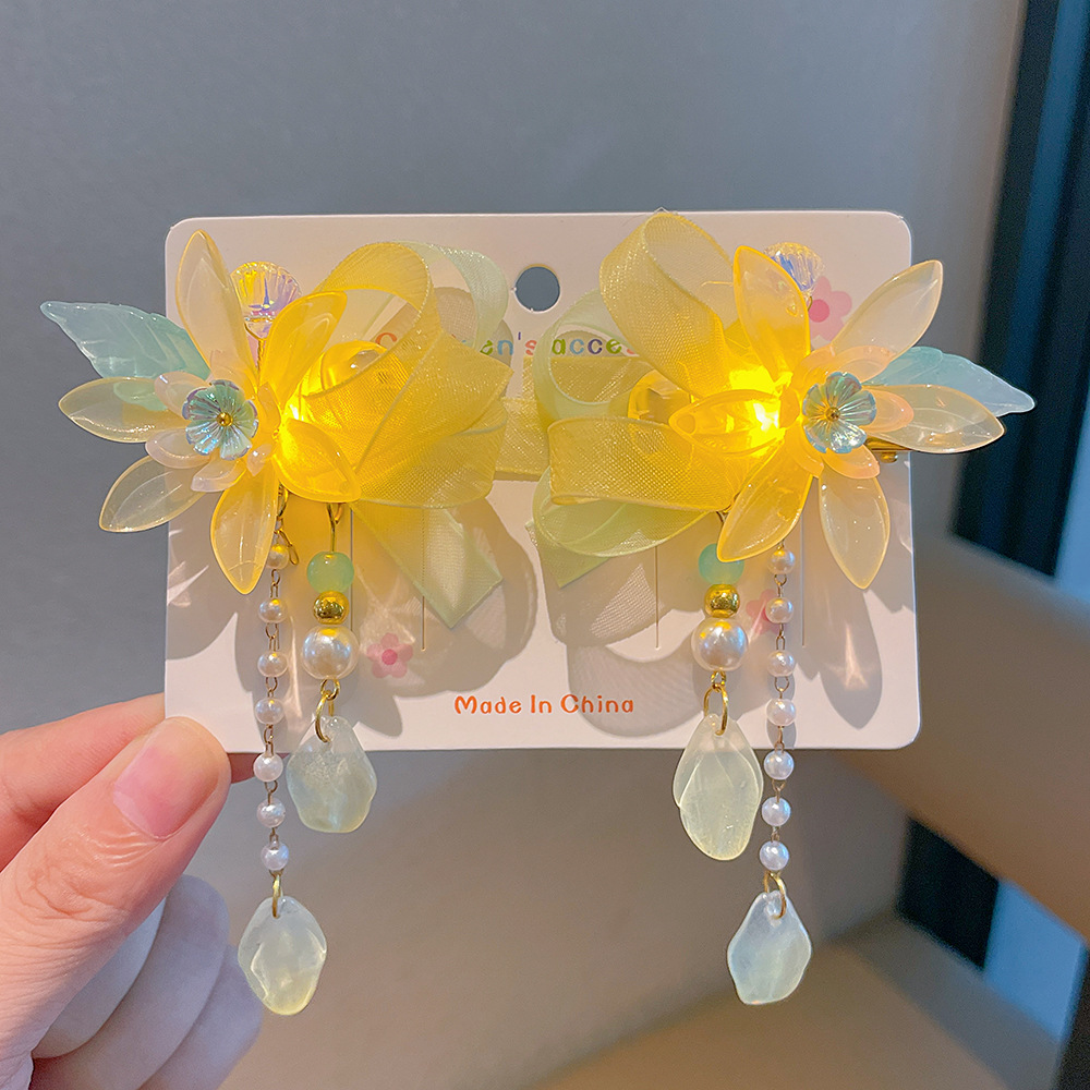 可发光花朵发夹女儿童圣诞节新款古风汉服头饰女童侧边碎发夹头饰