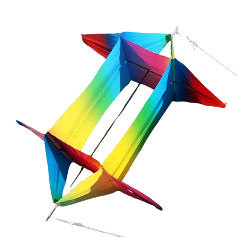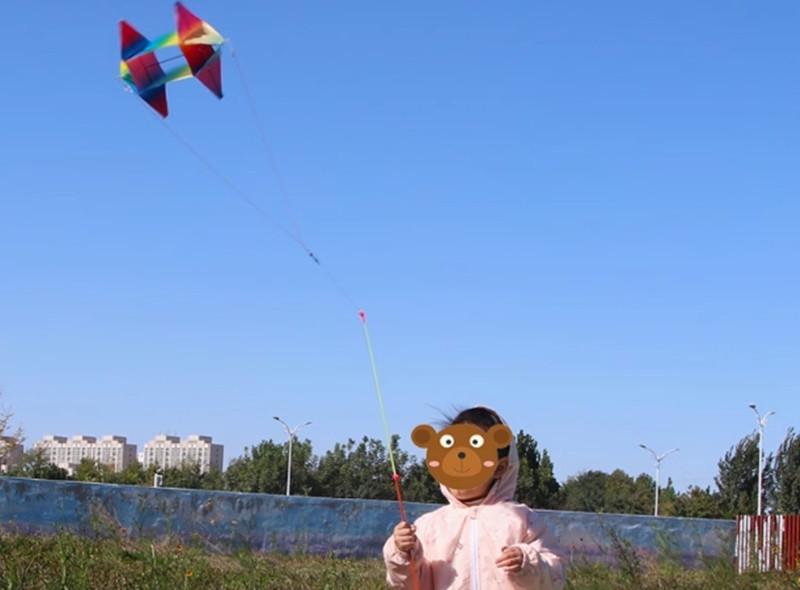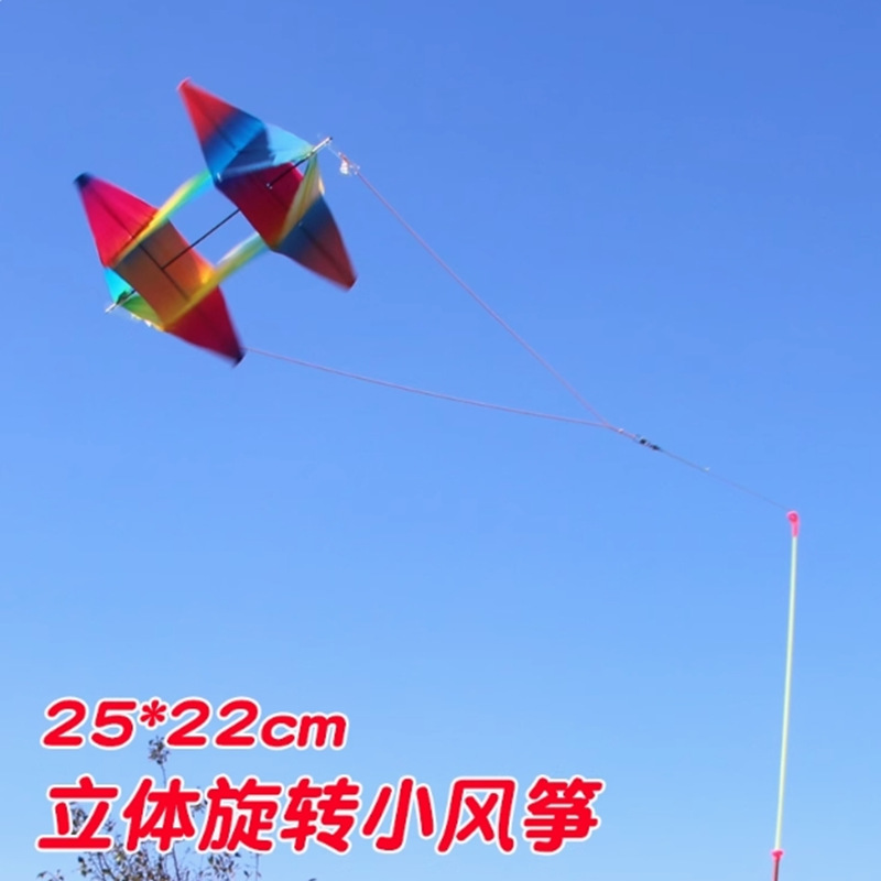 潍坊动态鱼竿风筝立体彩虹转风筝外贸跨境儿童卡通手持鱼竿风筝