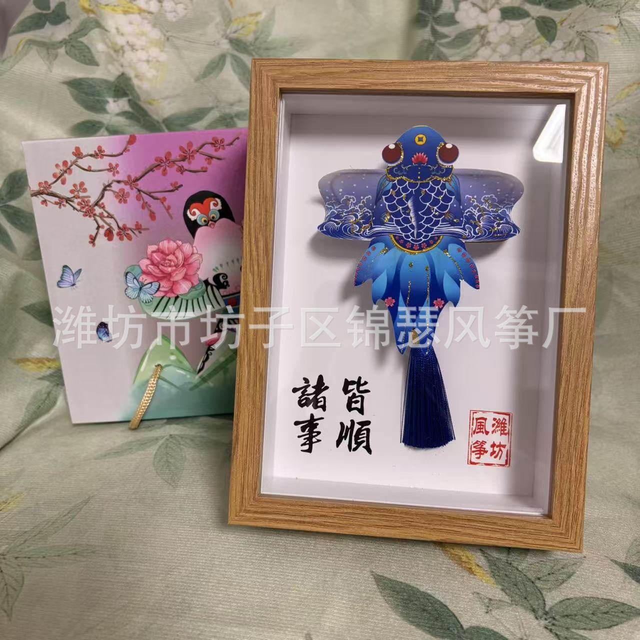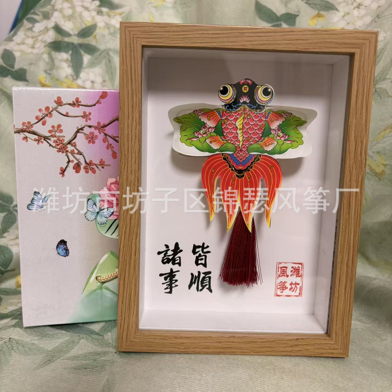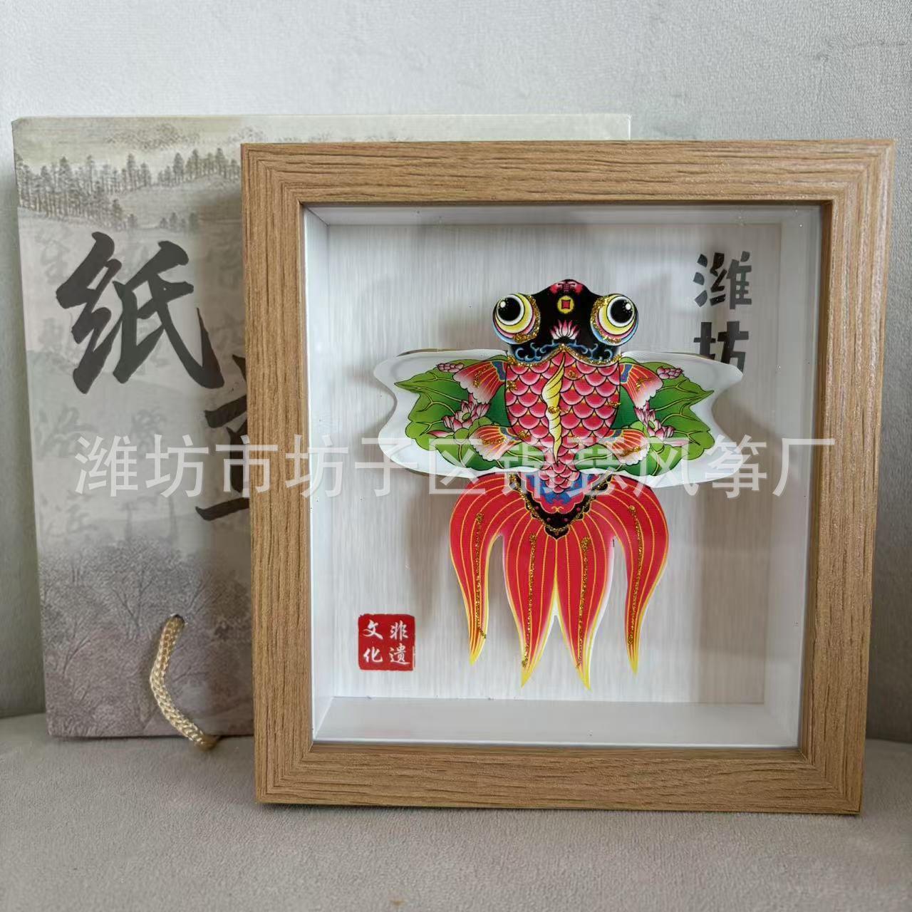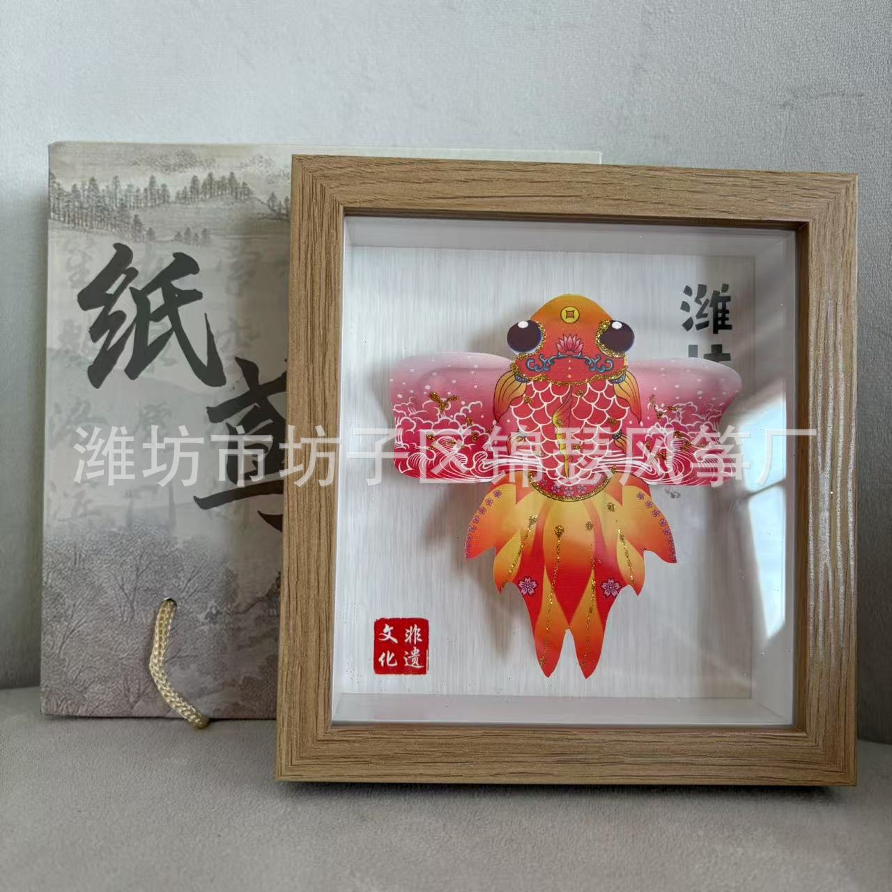 潍坊风筝纪念品礼盒传统纸鸢沙燕观赏相框高档精致摆件礼品金鱼