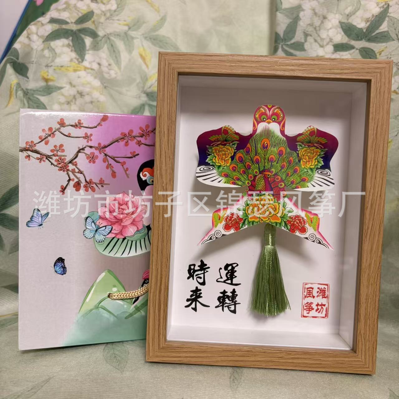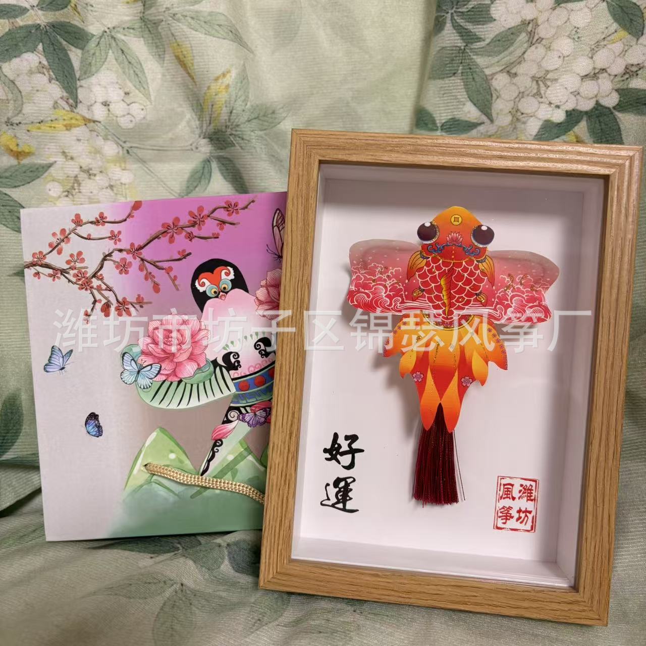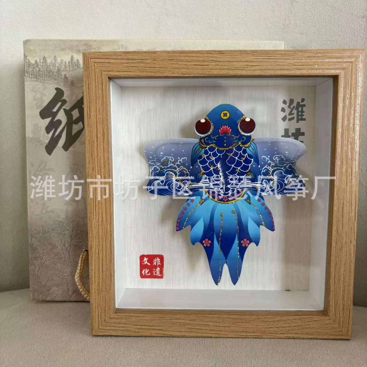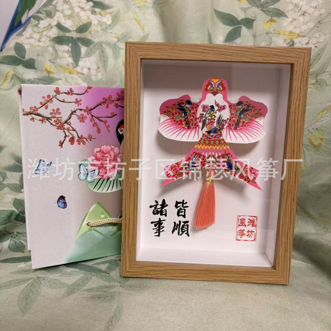 潍坊风筝纪念品礼盒传统纸鸢沙燕观赏相框高档精致摆件礼品金鱼