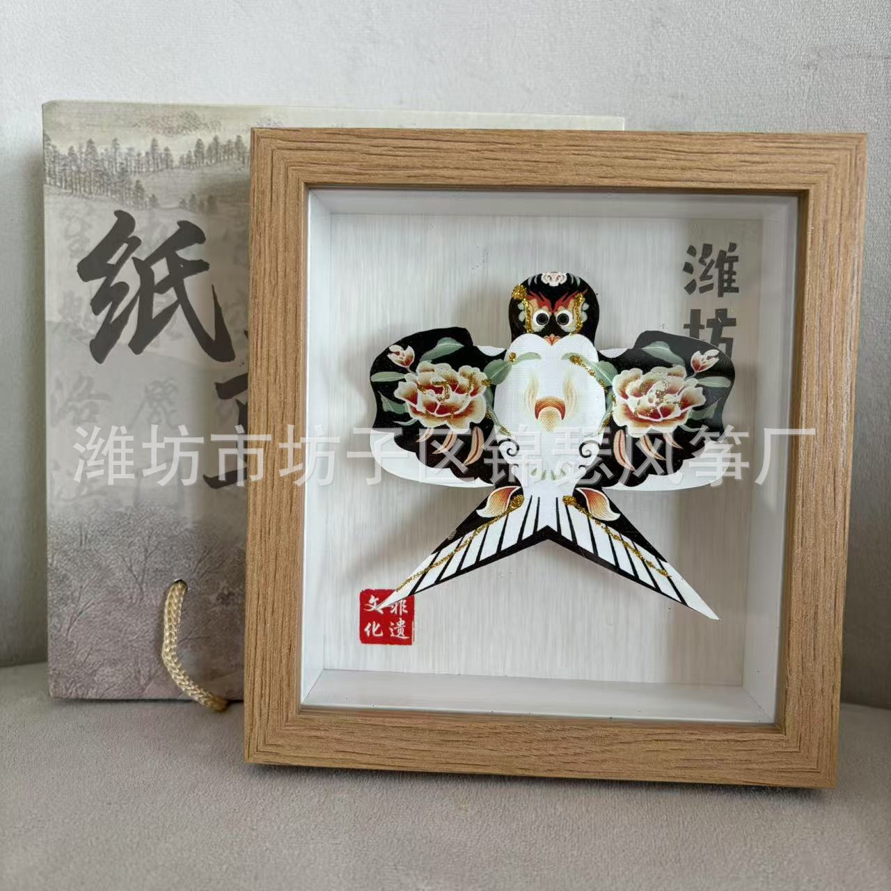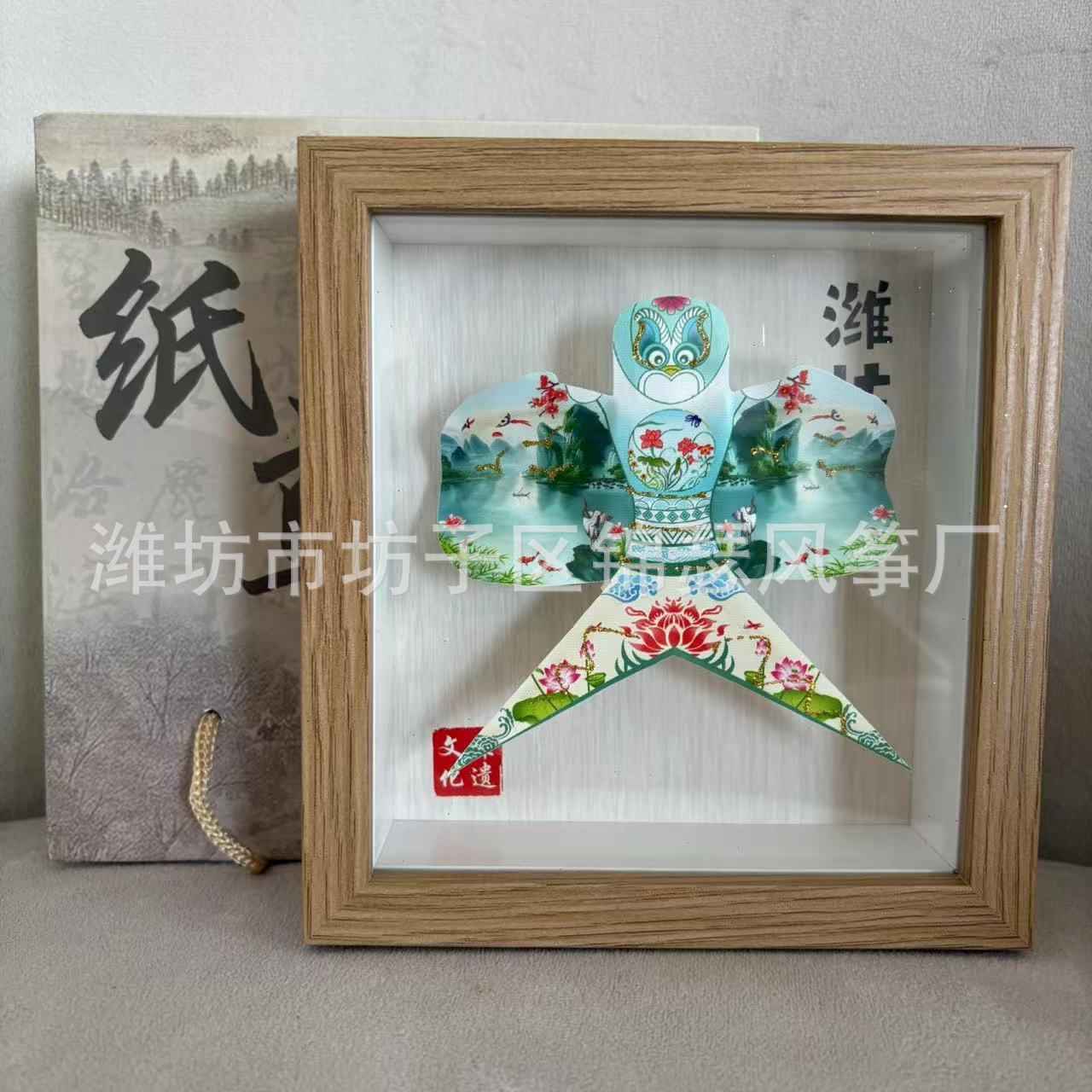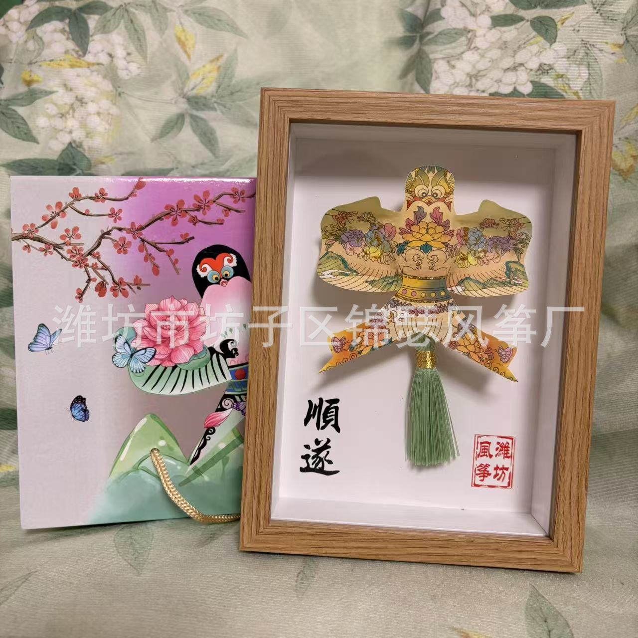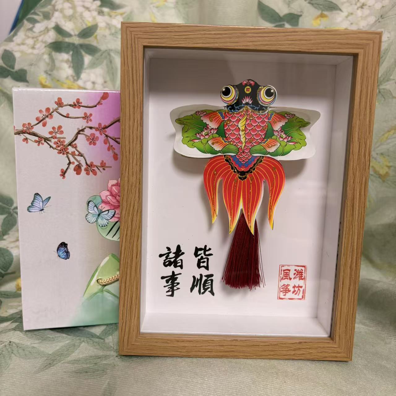 潍坊风筝纪念品礼盒传统纸鸢沙燕观赏相框高档精致摆件礼品金鱼