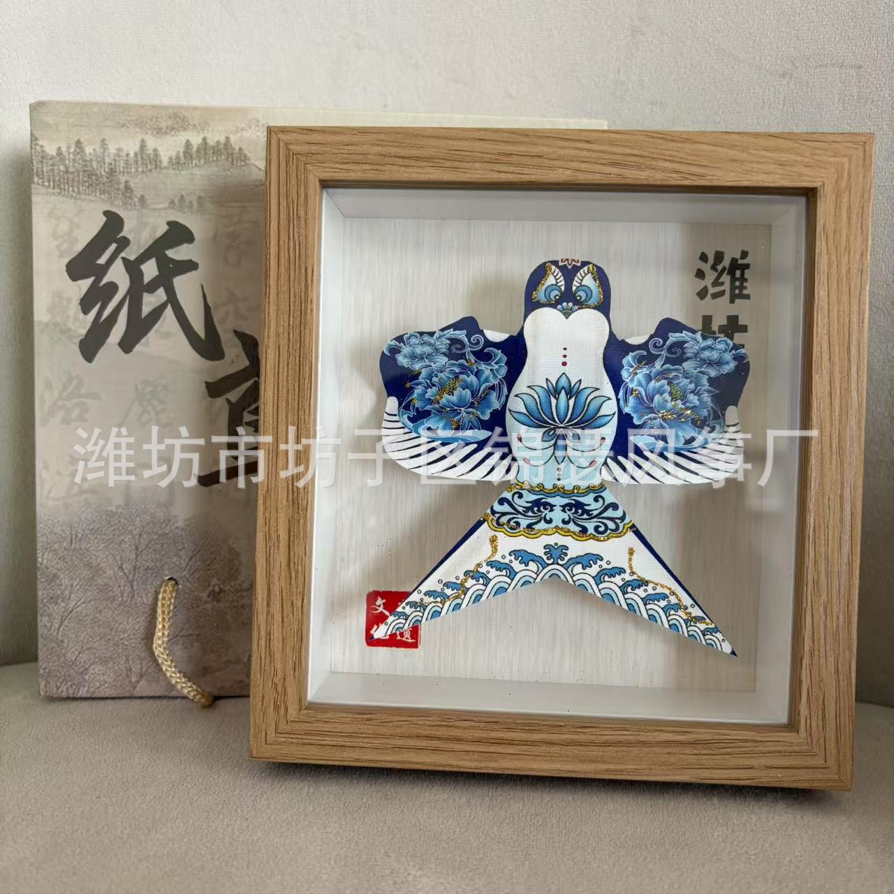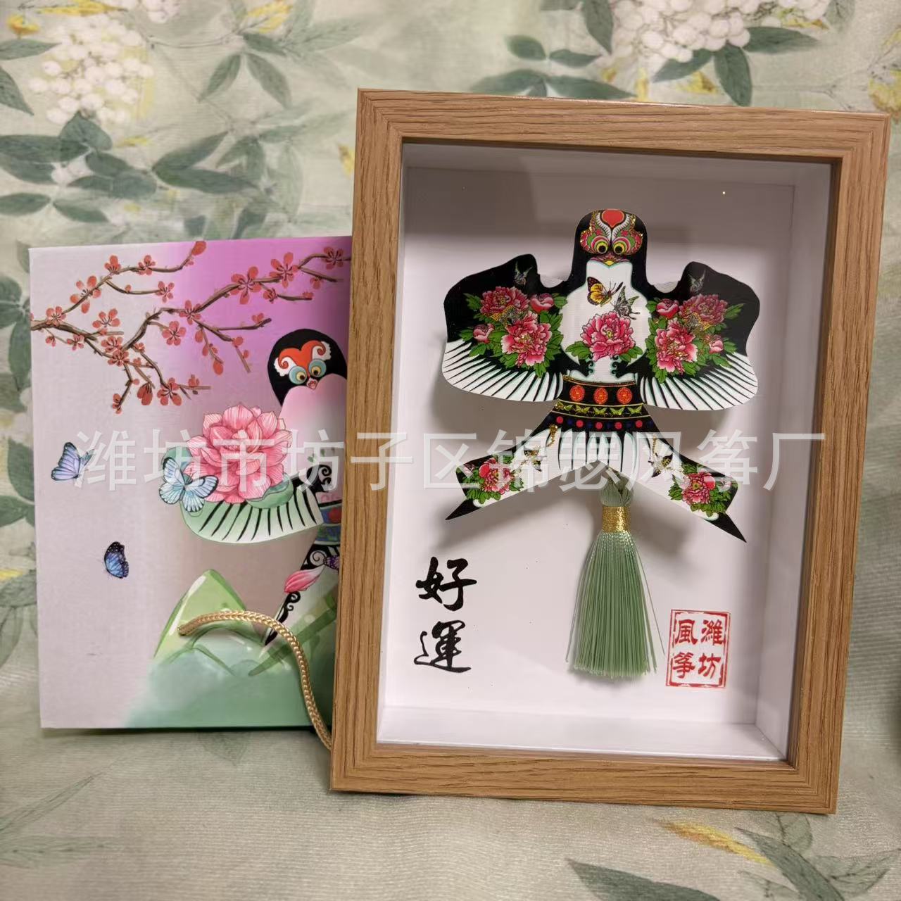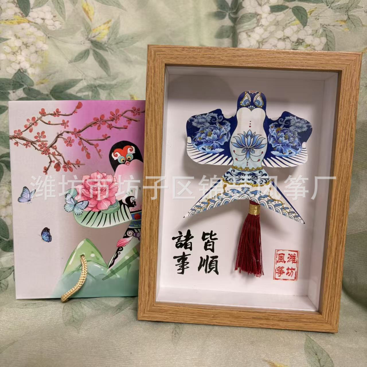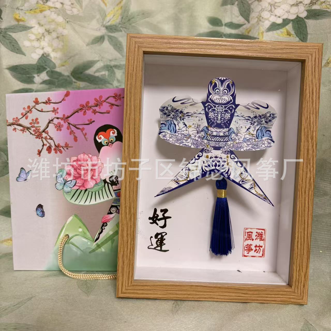 潍坊风筝纪念品礼盒传统纸鸢沙燕观赏相框高档精致摆件礼品金鱼