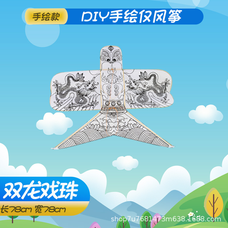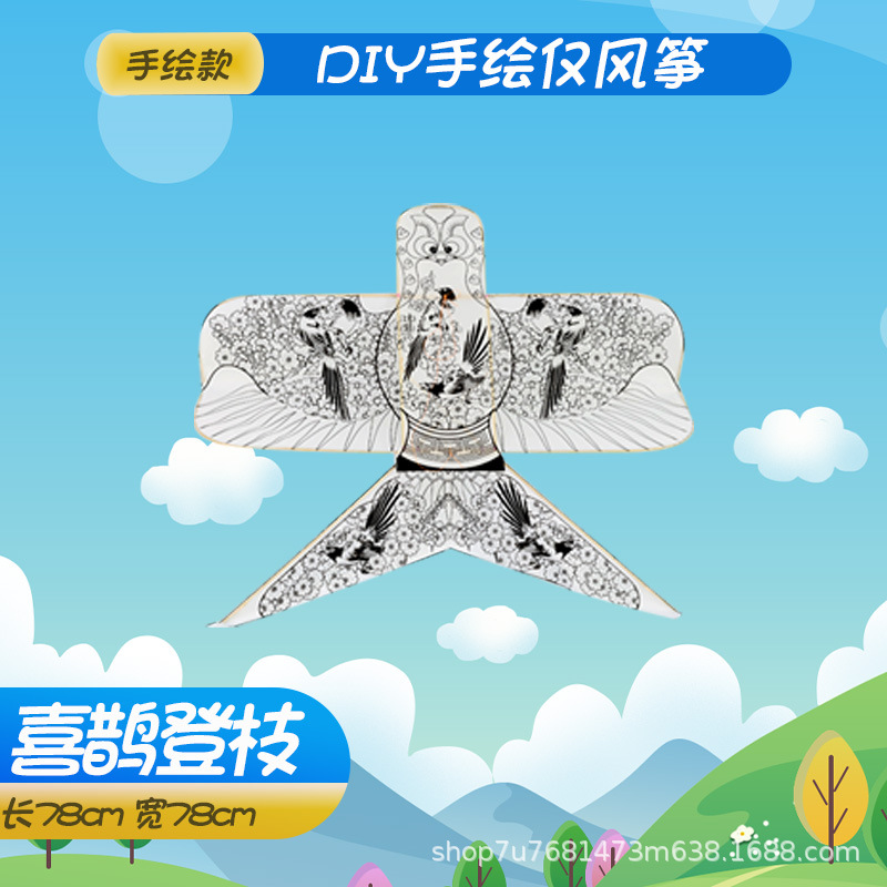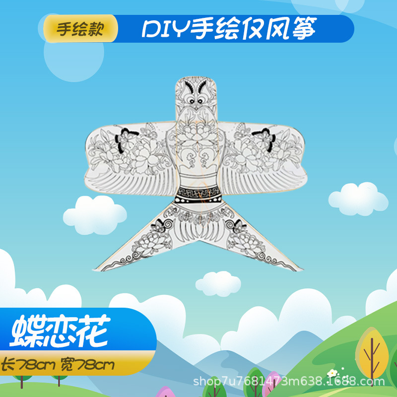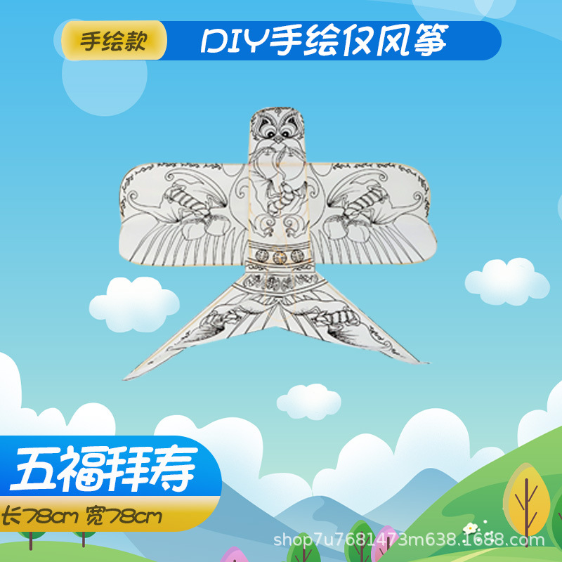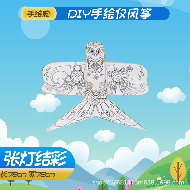 手持线轮手绘diy填色风筝批发源头厂家儿童玩具易飞空白填色风筝