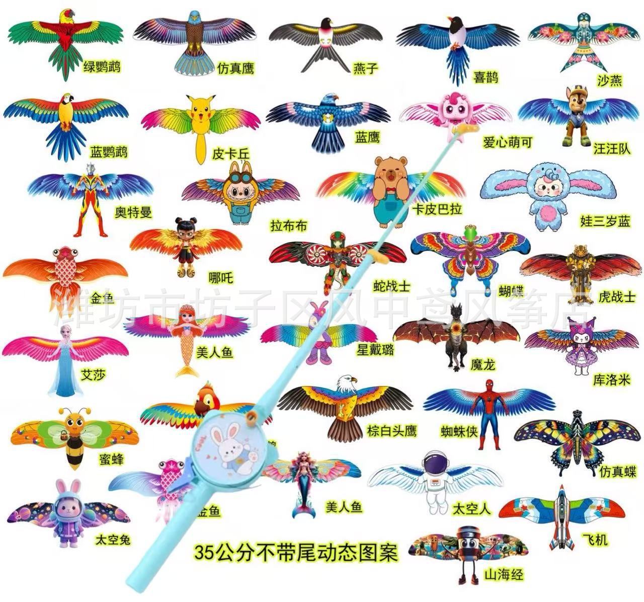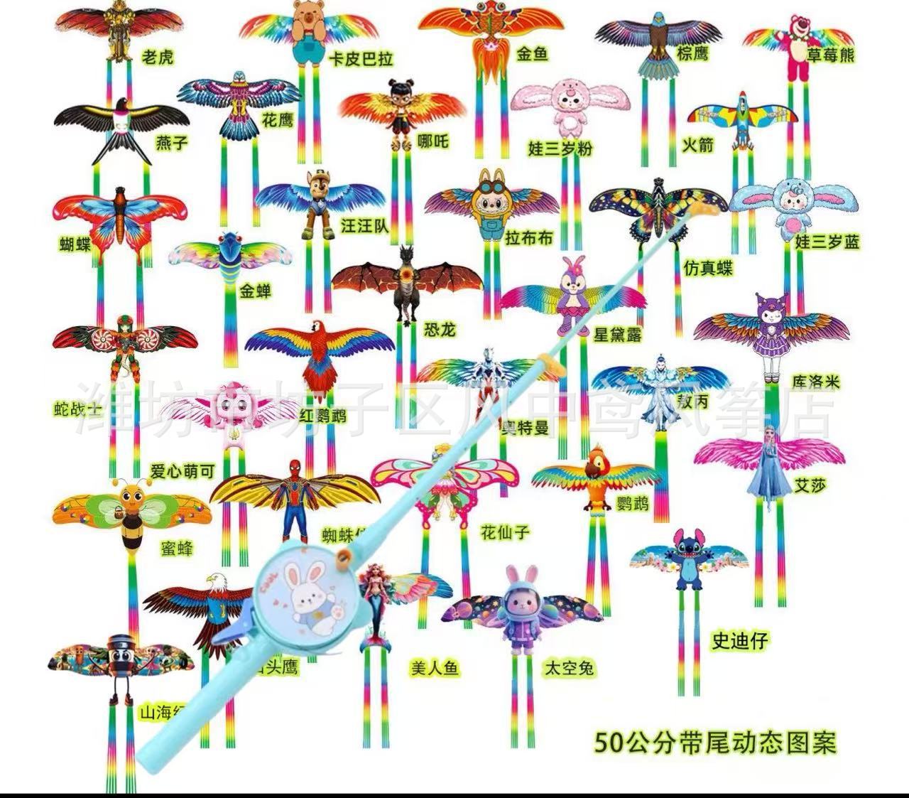 锦鲤动态风筝 儿童手持鱼杆风筝仿真燕子老鹰小鸟翅膀随抖动风筝