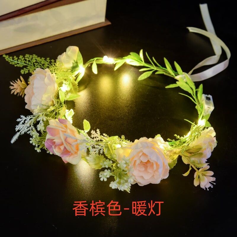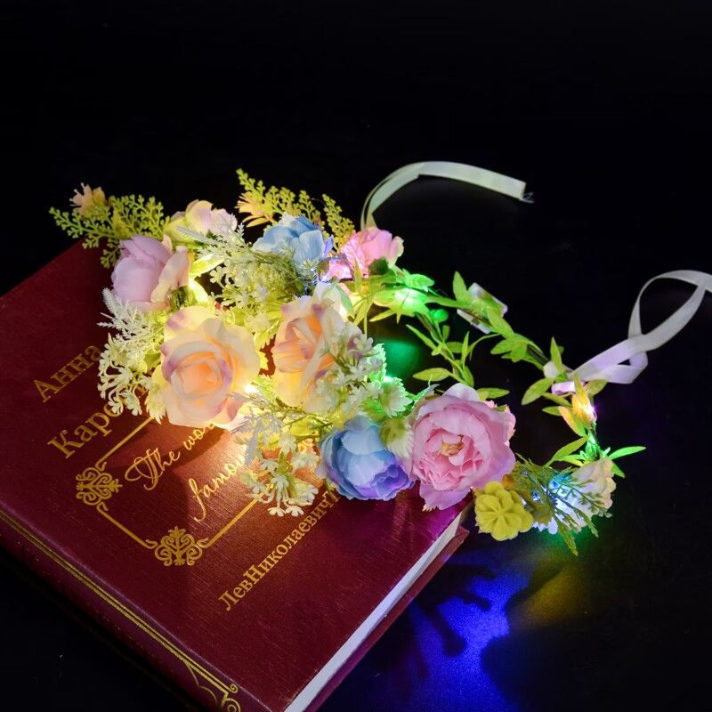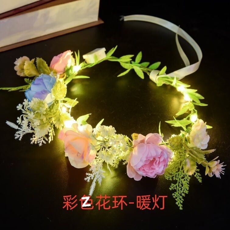 新款发光花环儿童成人公主璀璨头饰景区节日拍照仙女炫彩花环头箍
