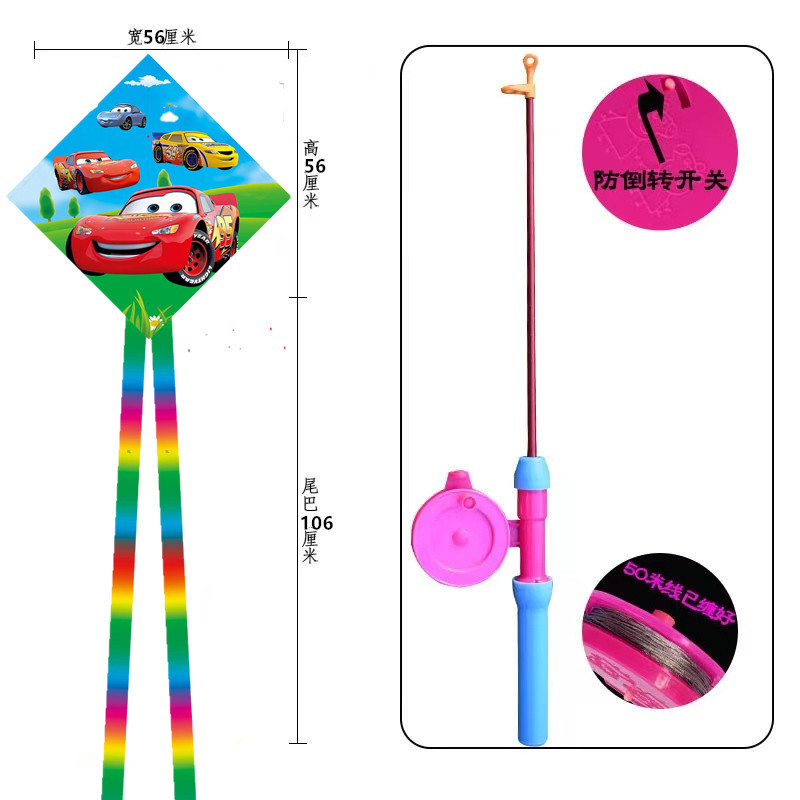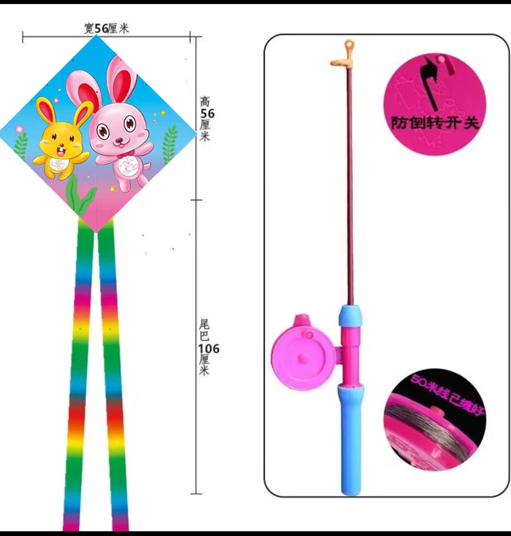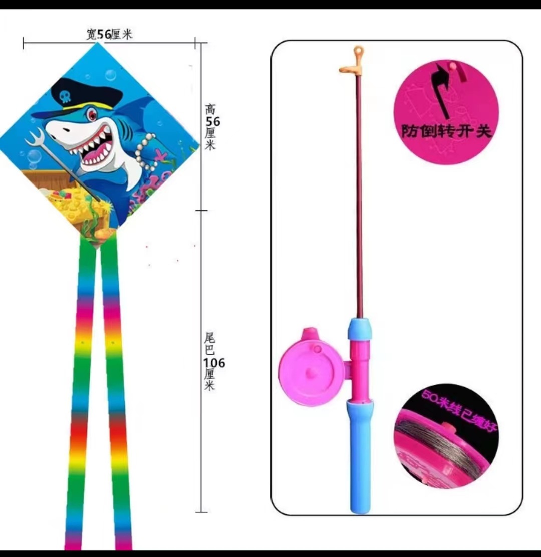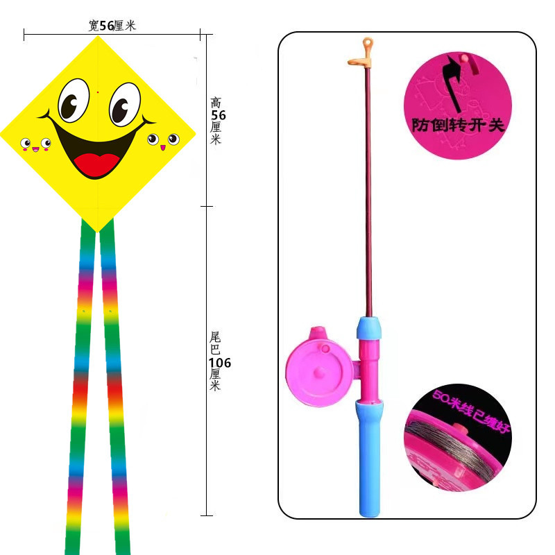 菱形鱼竿风筝批发儿童手持钓鱼竿风筝小风筝塑料鱼竿风筝摆摊批发