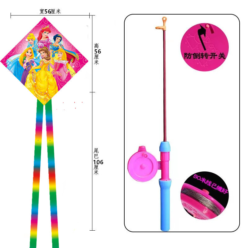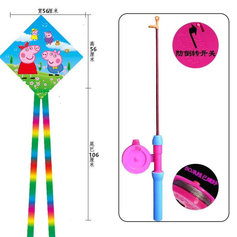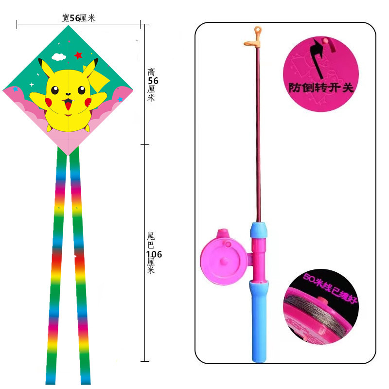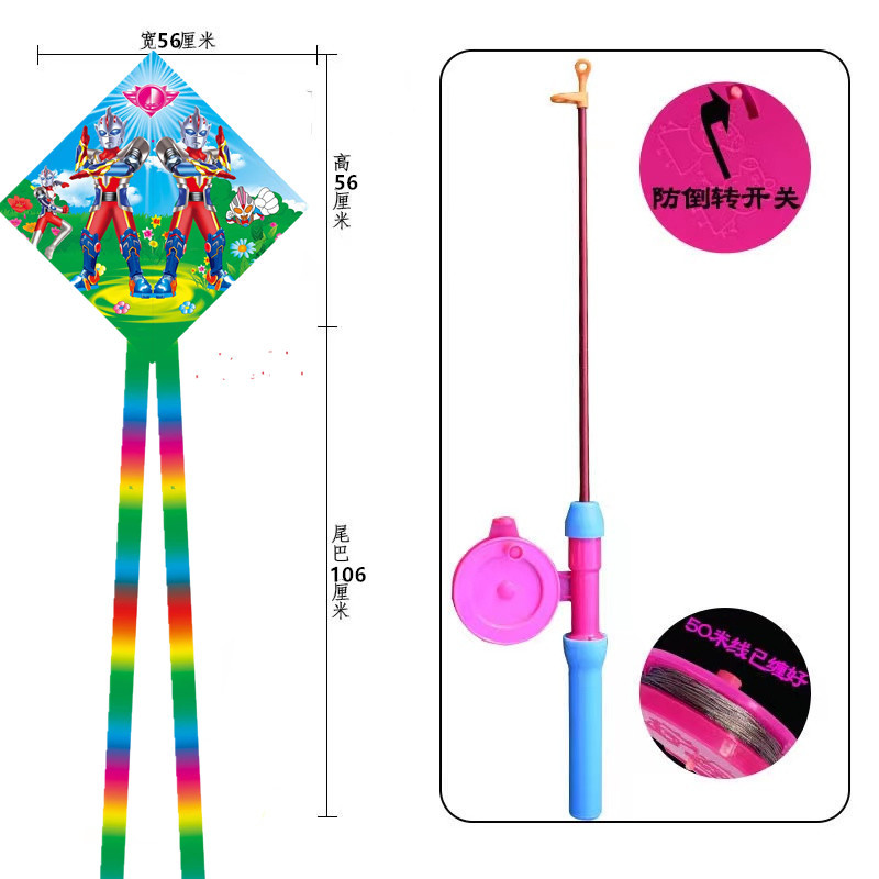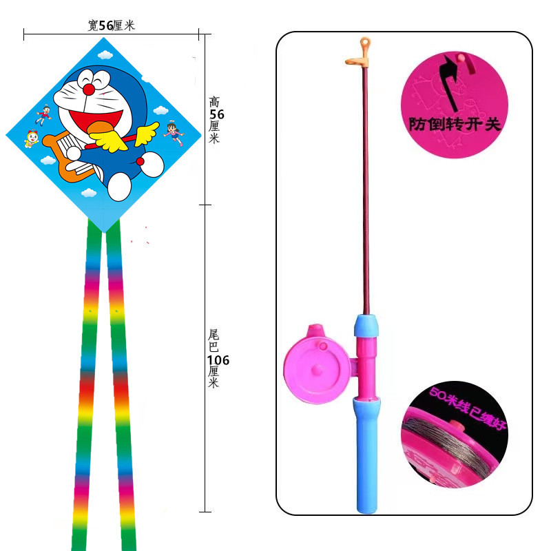 菱形鱼竿风筝批发儿童手持钓鱼竿风筝小风筝塑料鱼竿风筝摆摊批发