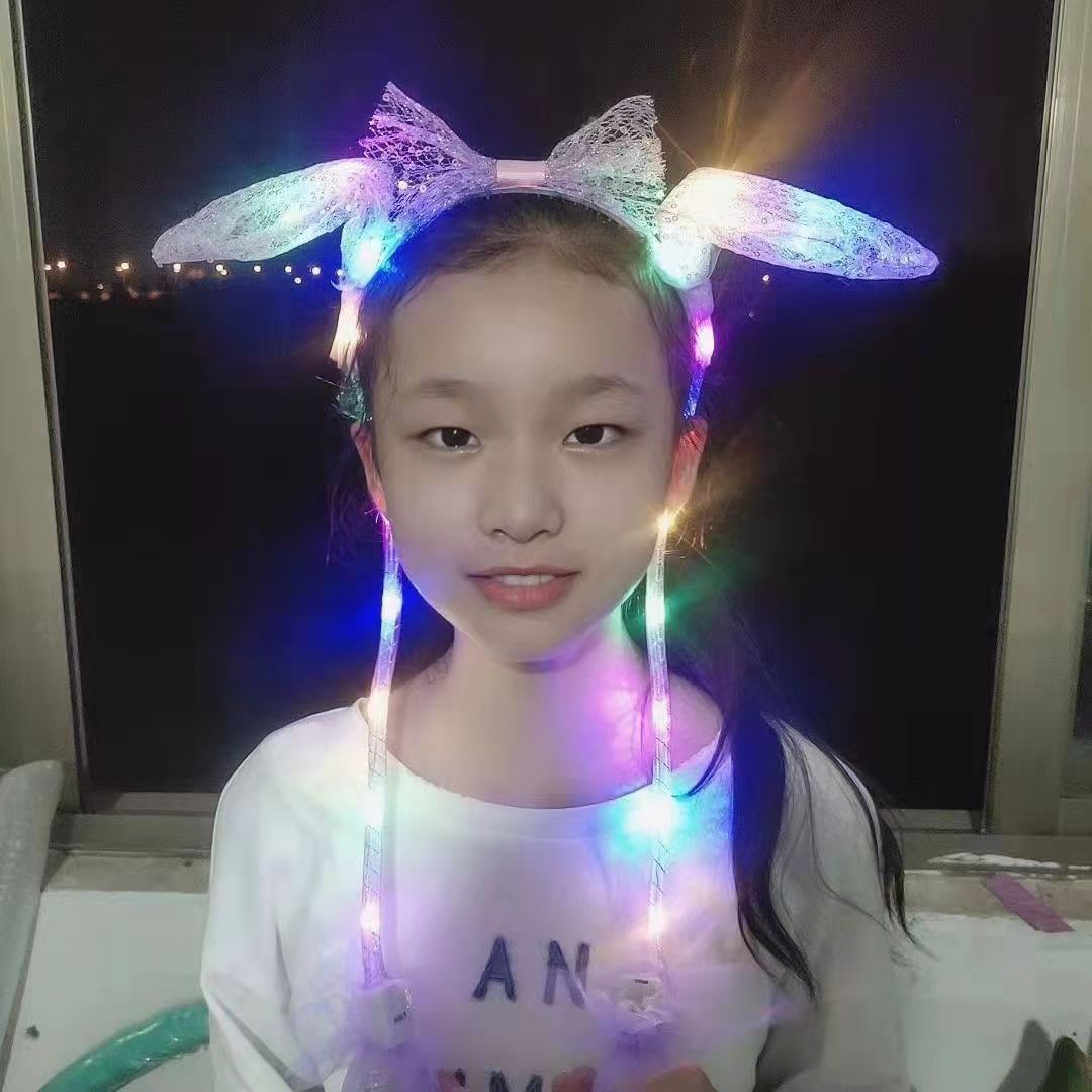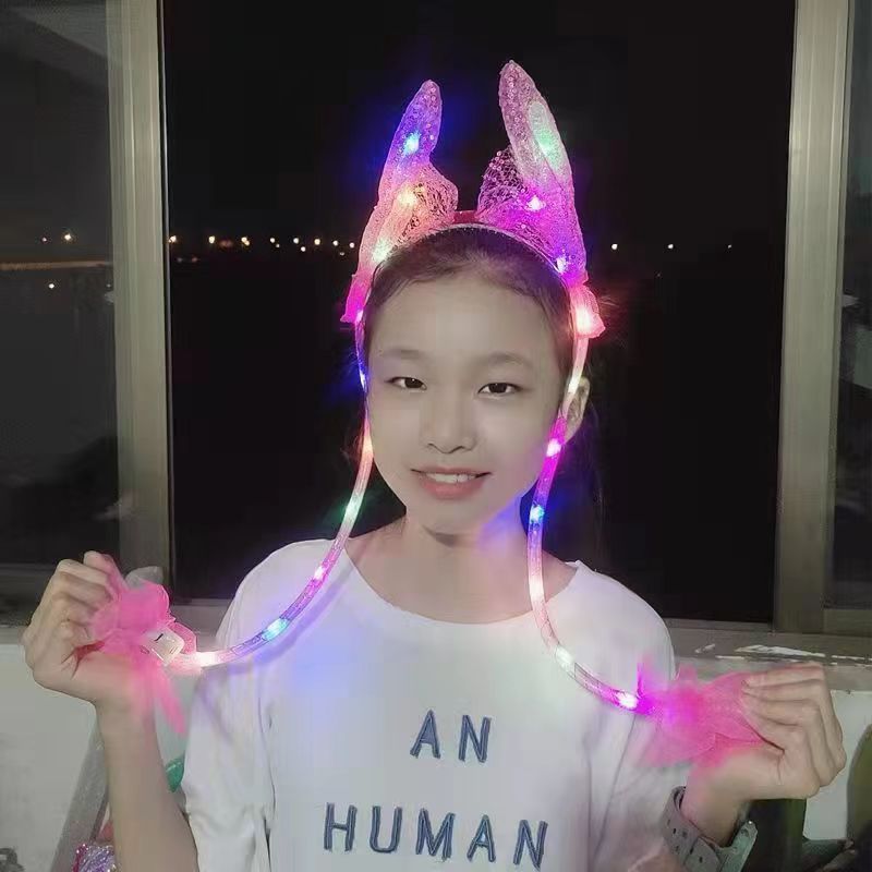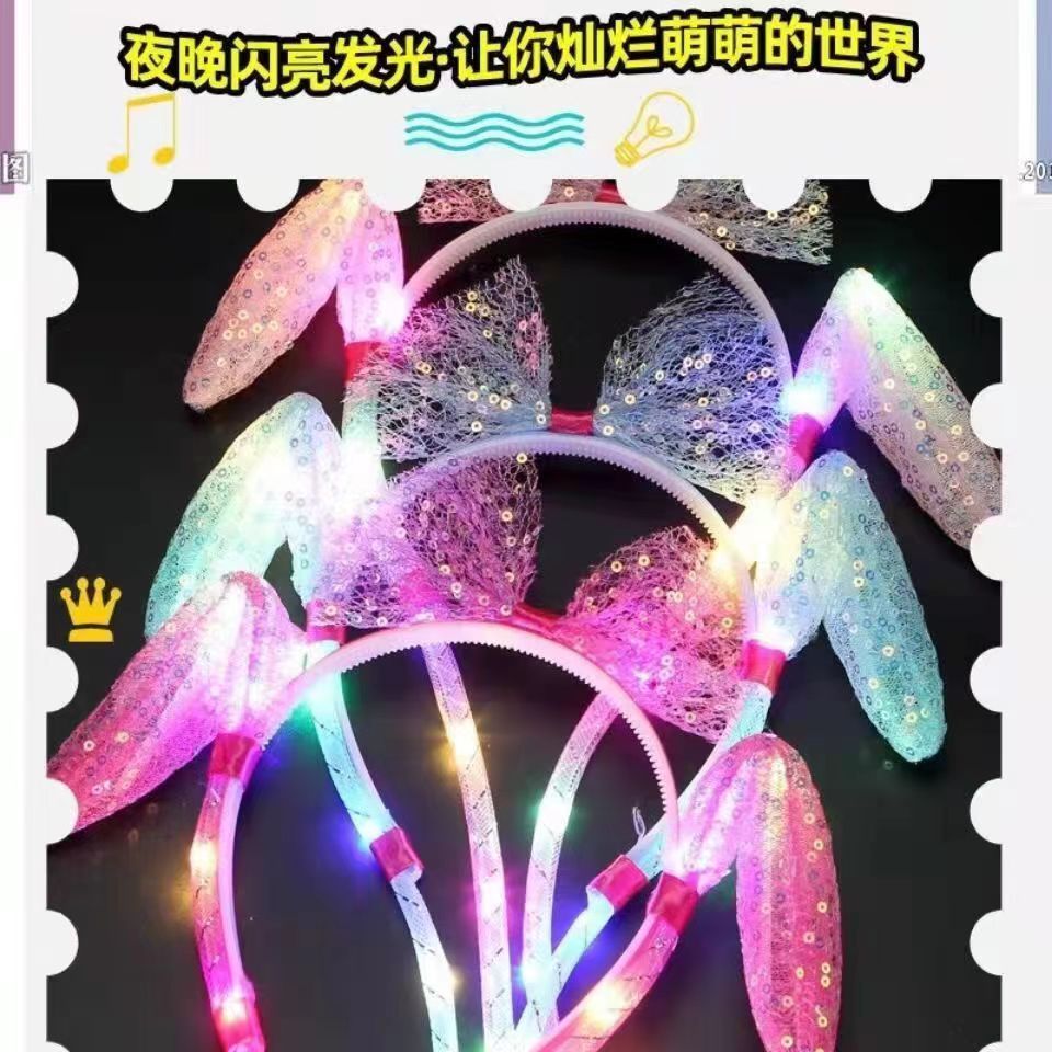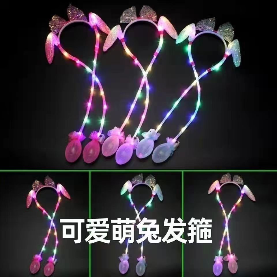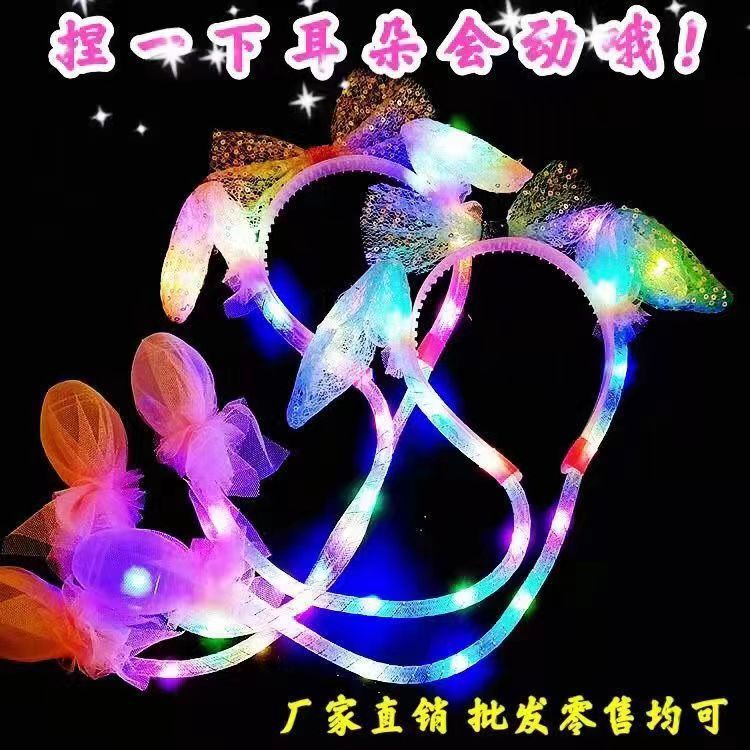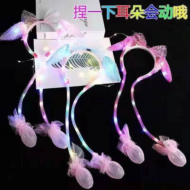 发光兔耳朵头饰可动一捏气囊耳朵会动的发箍毛绒头饰儿童发光发箍