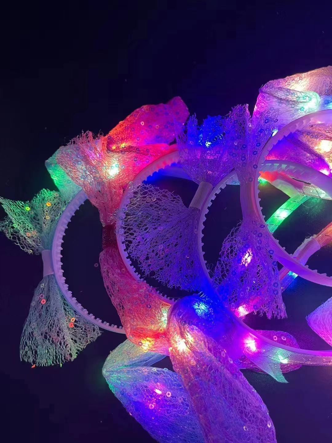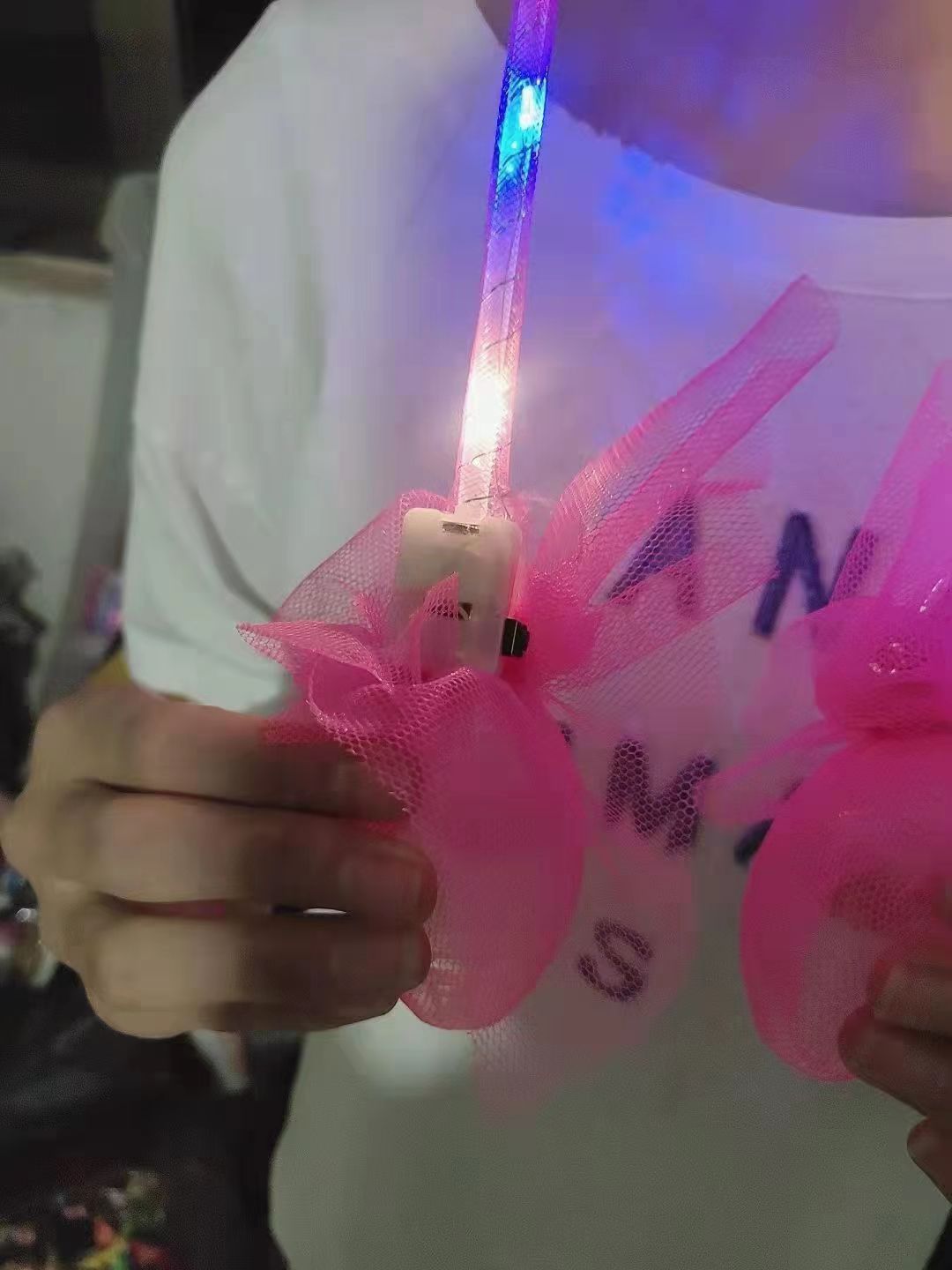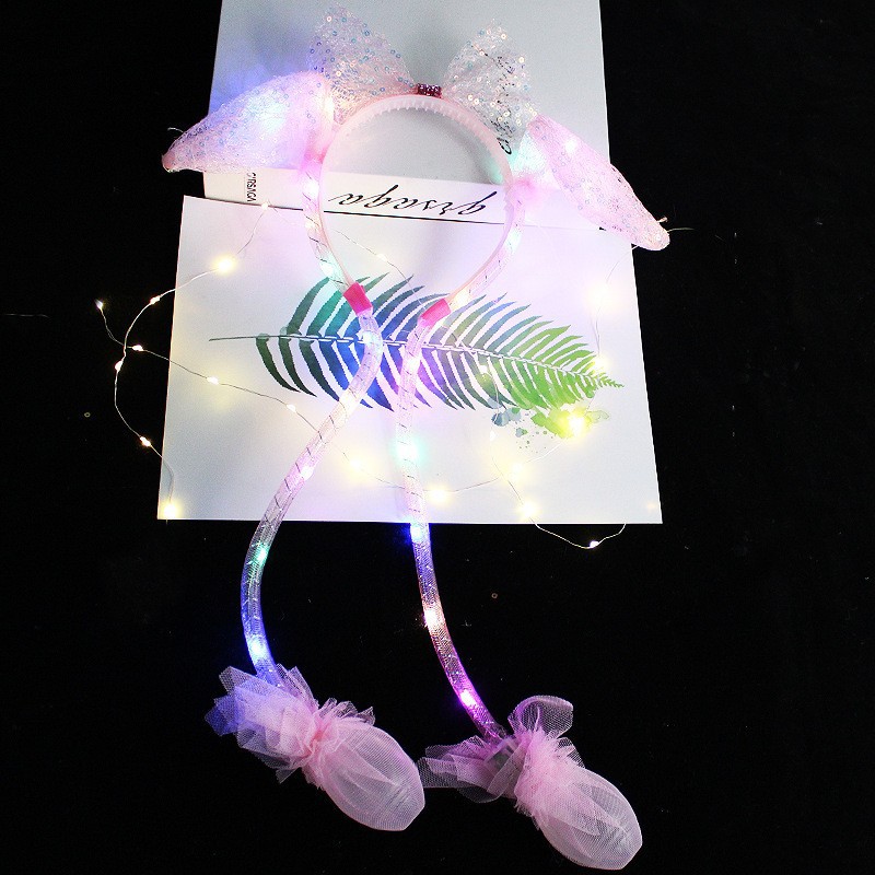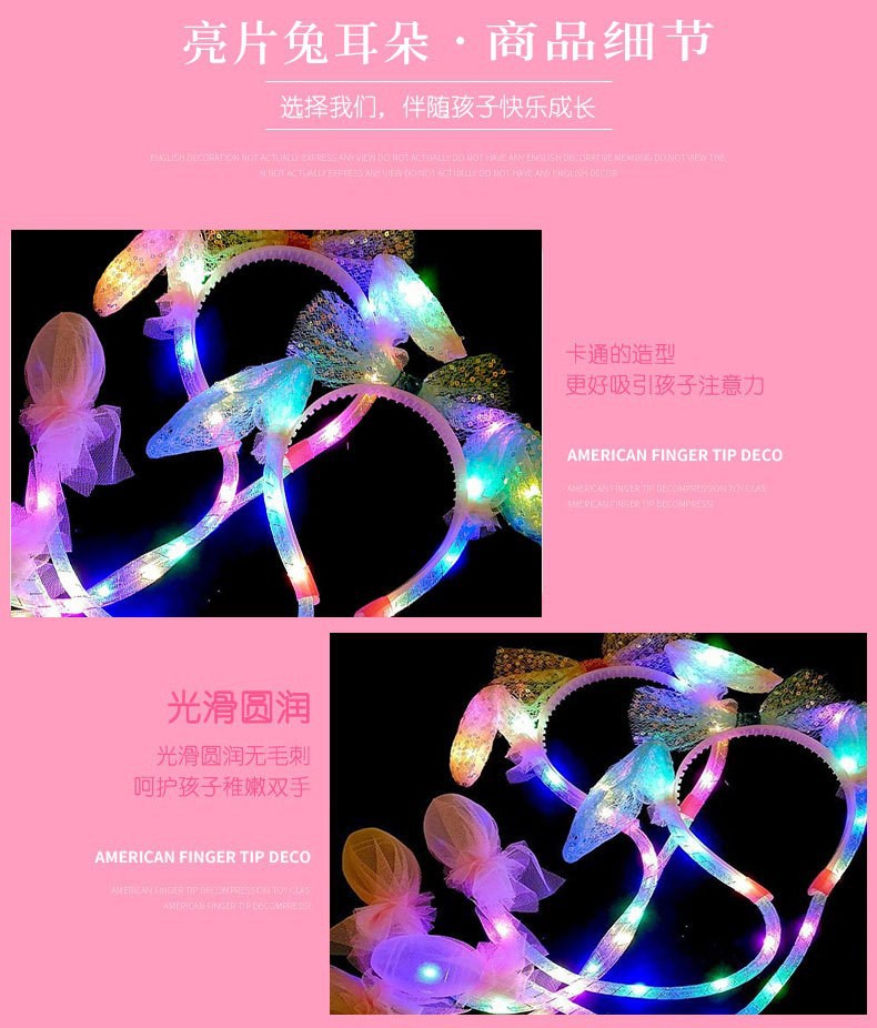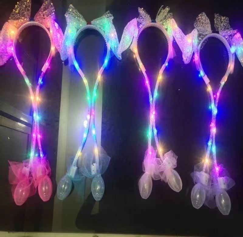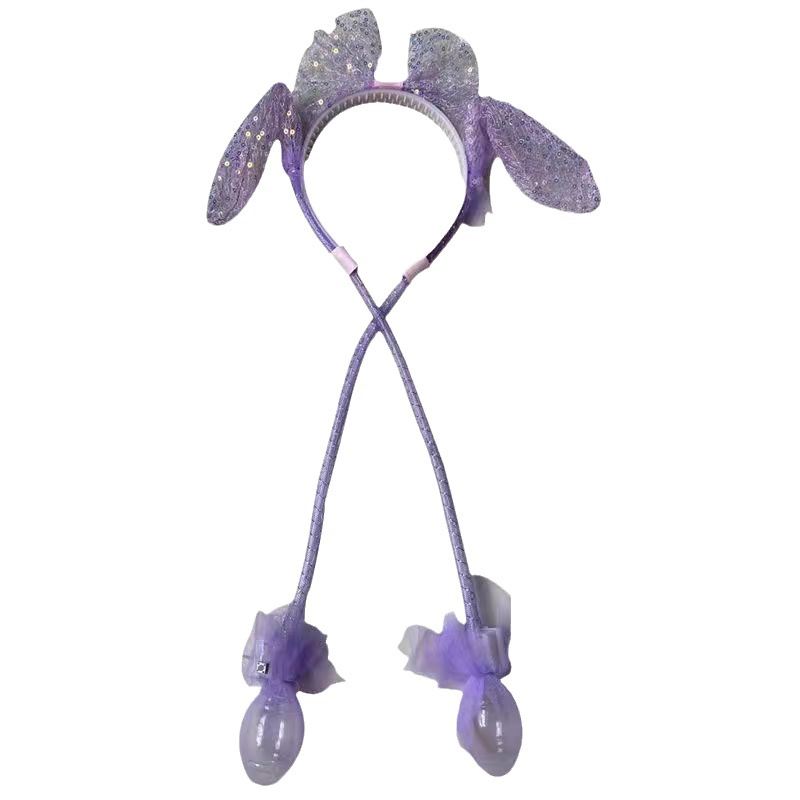 发光兔耳朵头饰可动一捏气囊耳朵会动的发箍毛绒头饰儿童发光发箍