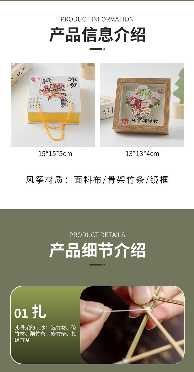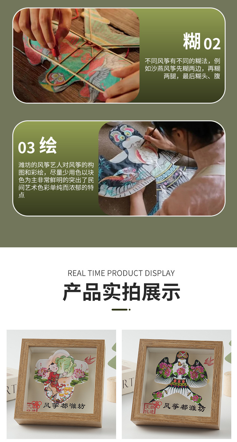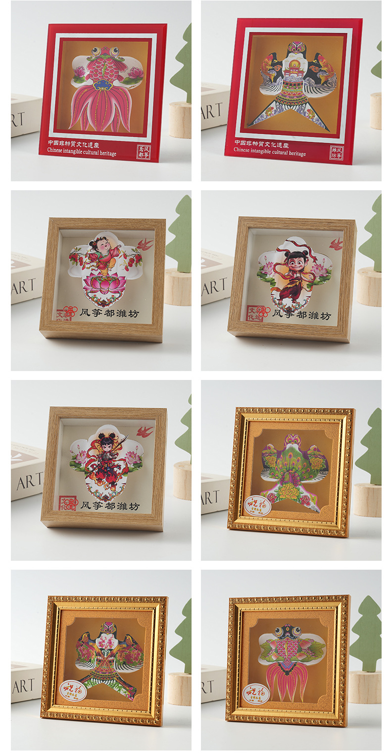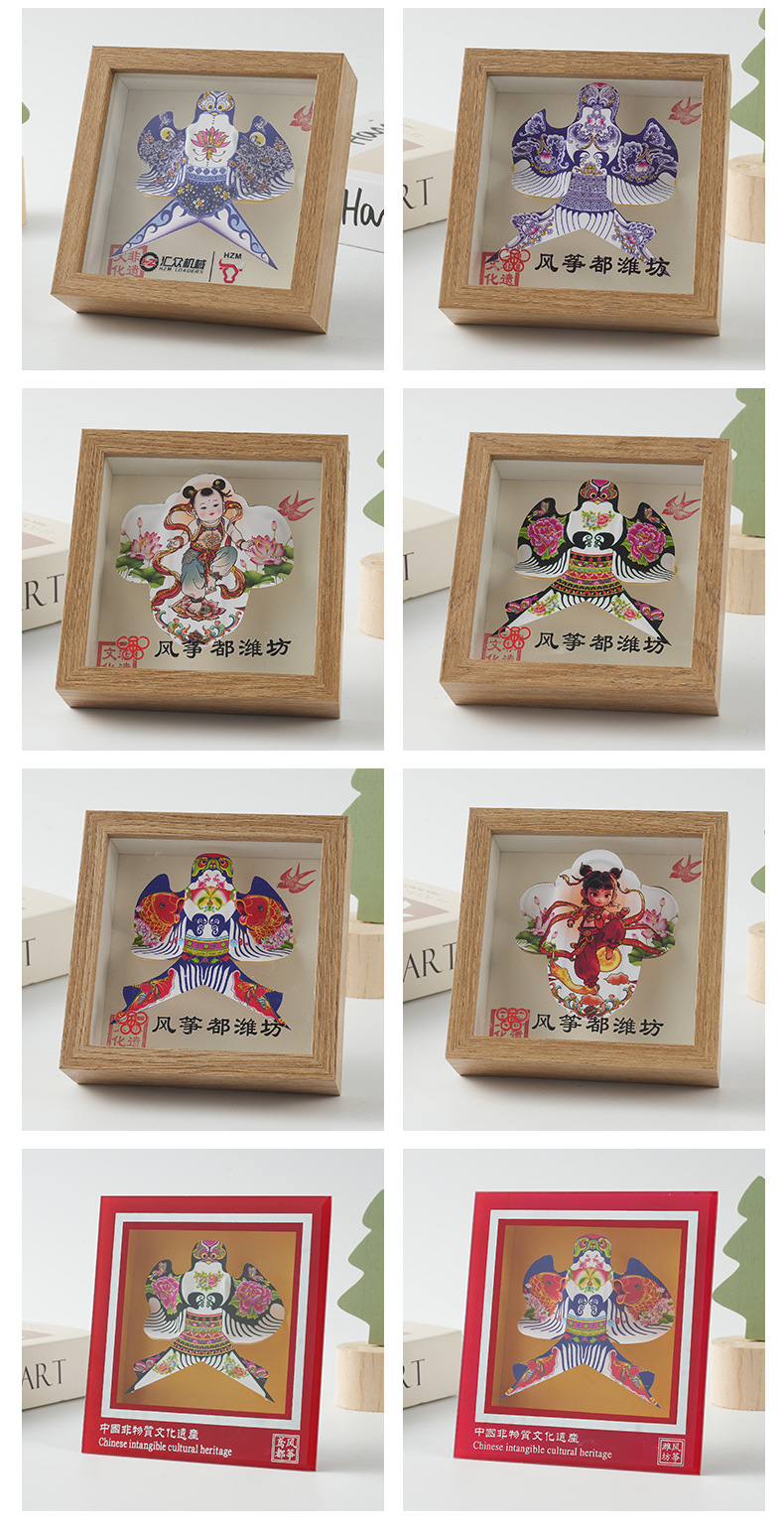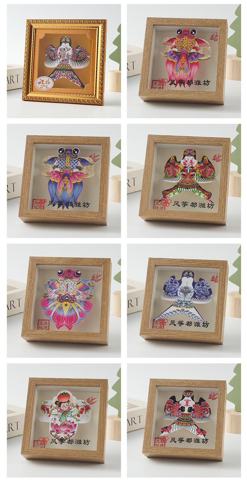 色彩鲜明潍坊手工风筝传统风筝相框摆件旅游出行伴手礼一件代发