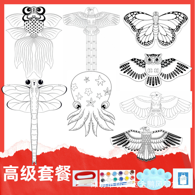 绘画儿童涂鸦风筝平板竹子风筝diy填色 亲子互动教学空白板子风筝