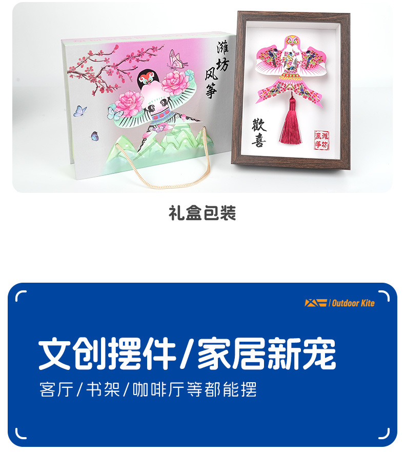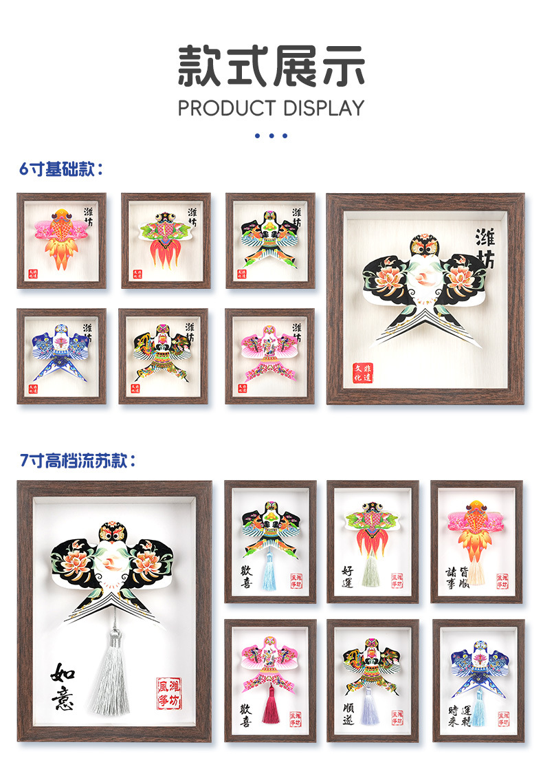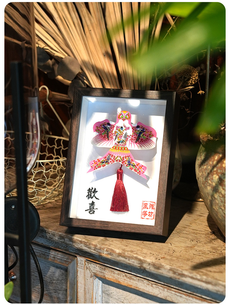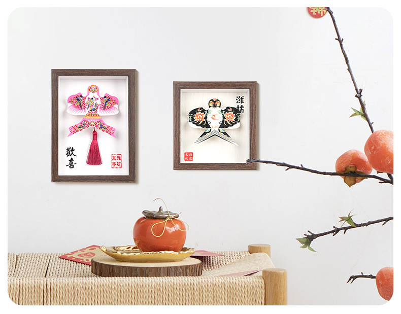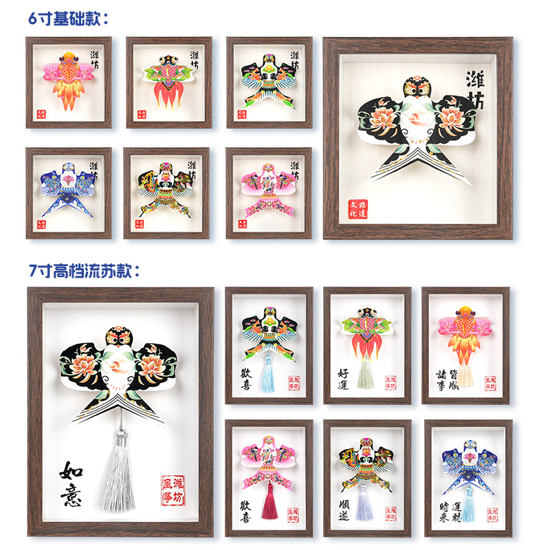 潍坊风筝工艺品礼盒传统纸鸢沙燕观赏镜框高档摆件中国风工艺品