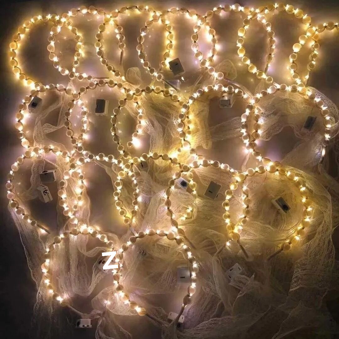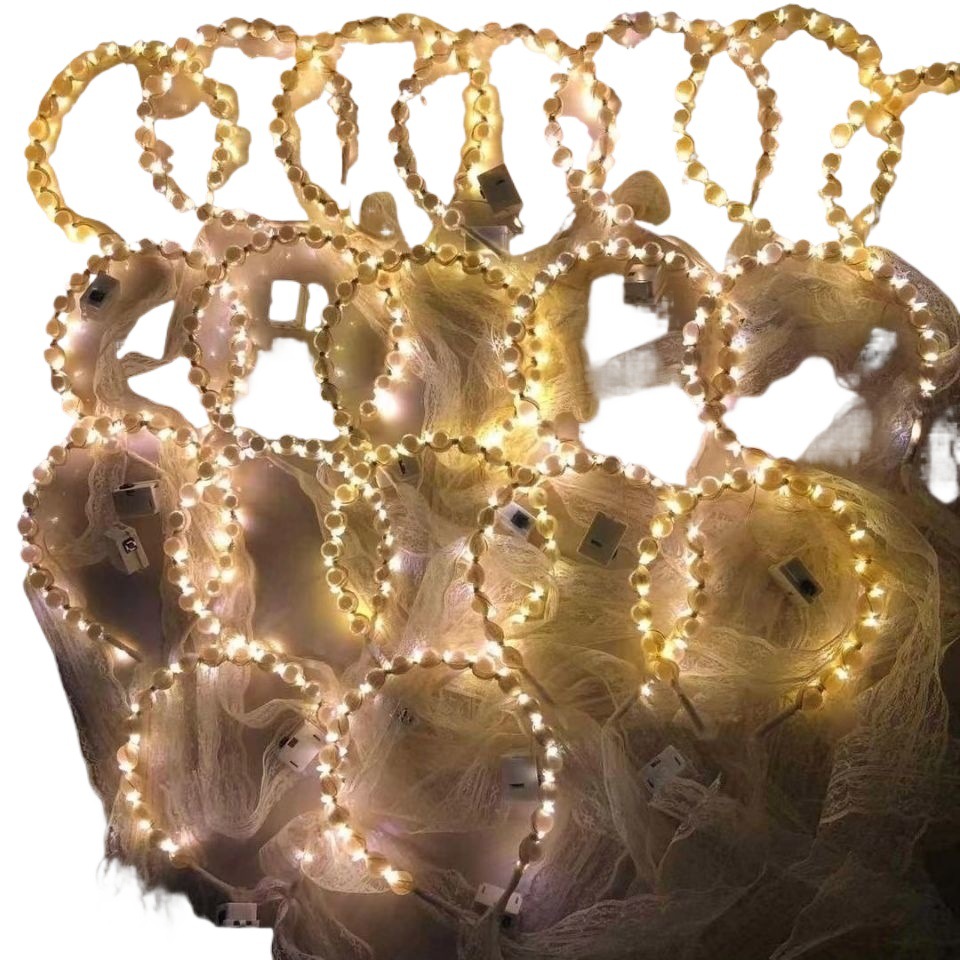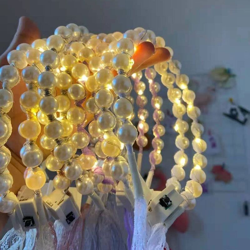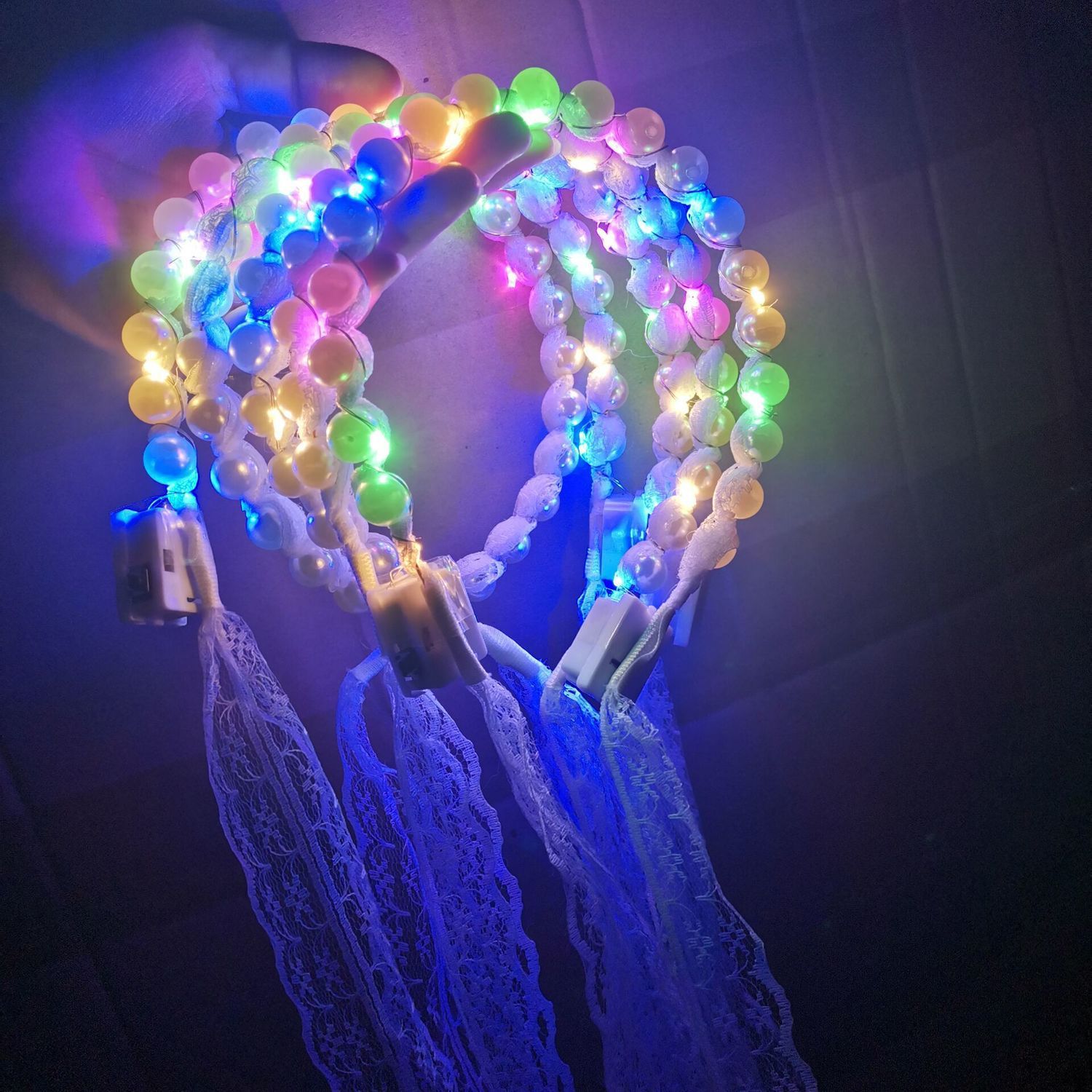 网红发光珍珠发箍彩灯发夹发带一体系带女绑发蕾丝闪光头纱仙气