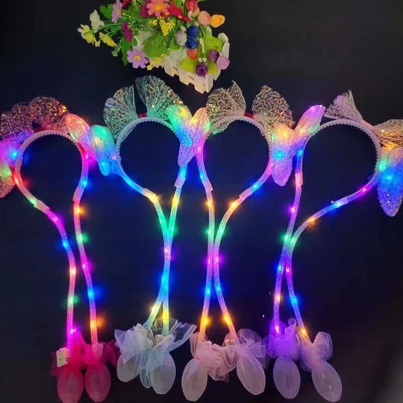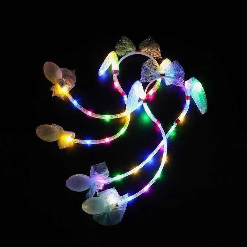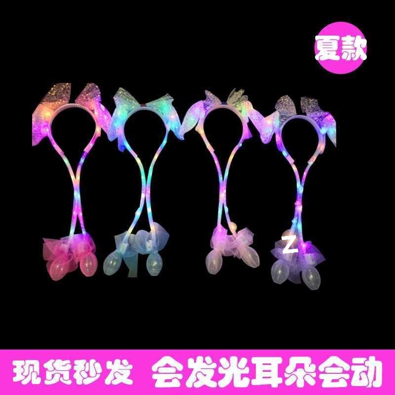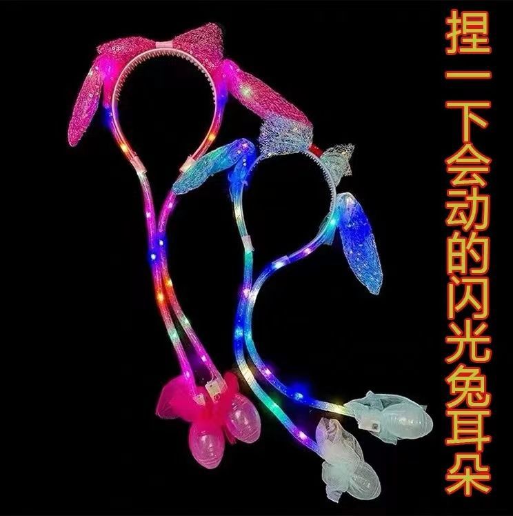 亮片发光会动的兔耳朵发箍一捏气囊玩具网红头饰夜市摆地摊小商品