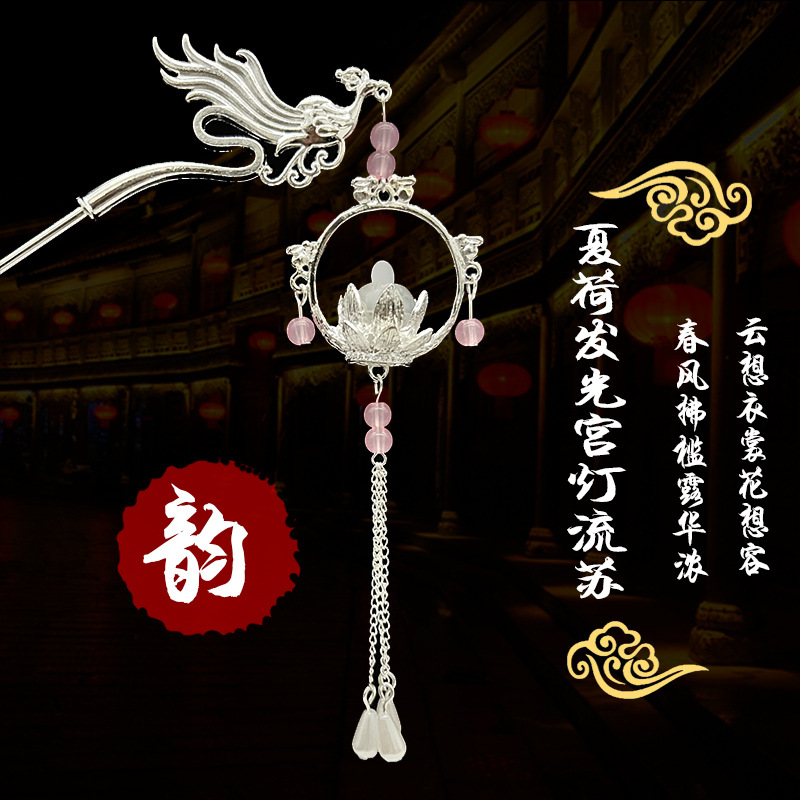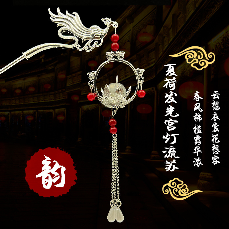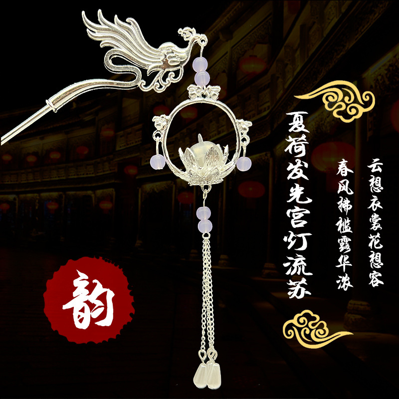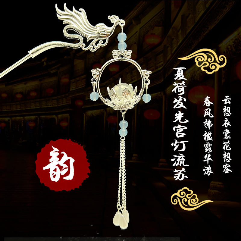 新年水滴流苏发光发簪古风高级感汉服盘发发钗宫灯簪子步摇批发