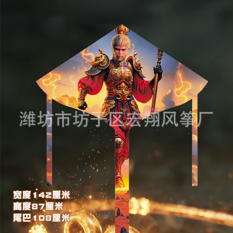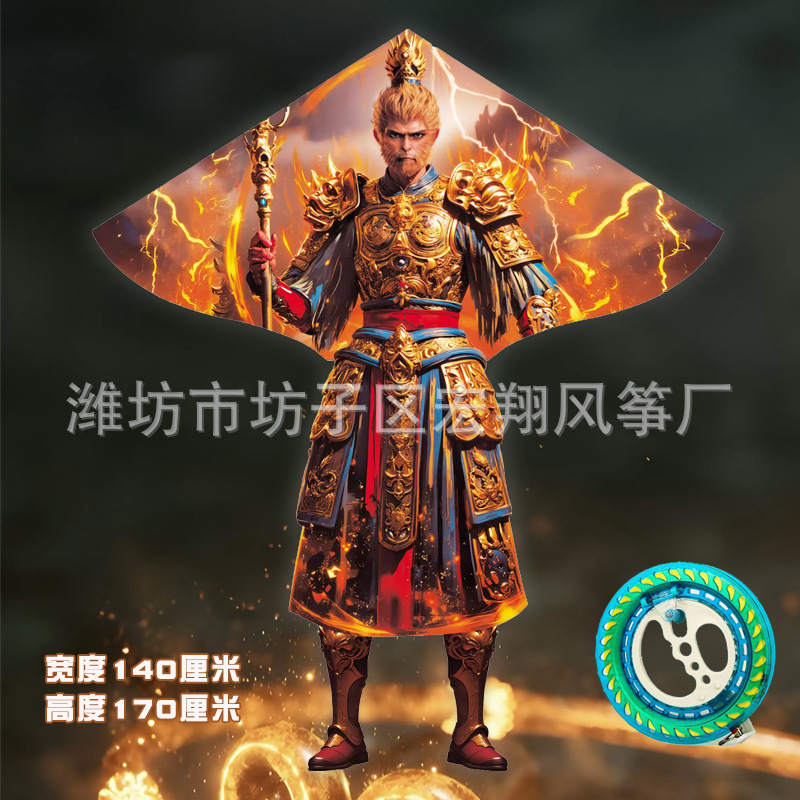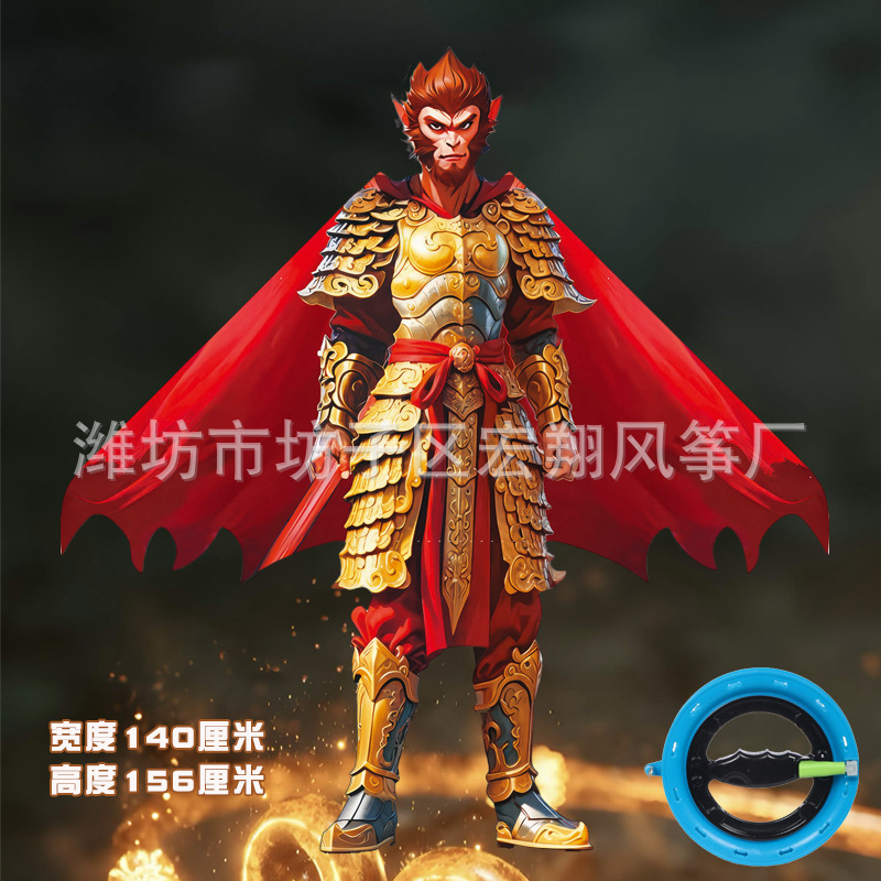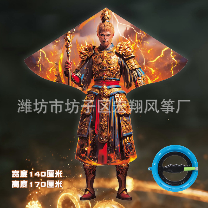 潍坊风筝新款国潮战袍悟空风筝厂家批发网红新款微风易飞风筝带线