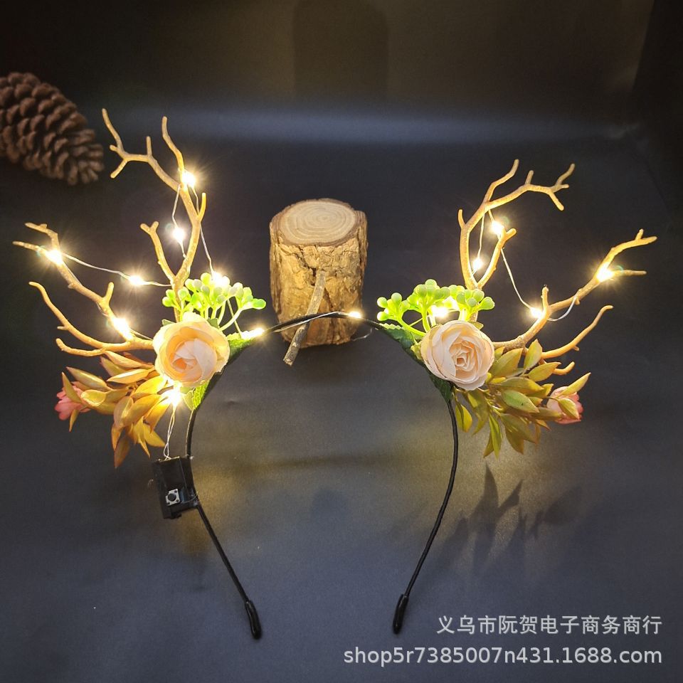 2024跨境鹿角发光头饰新款发光鹿角头箍麋鹿发箍花仙子圣诞节发饰