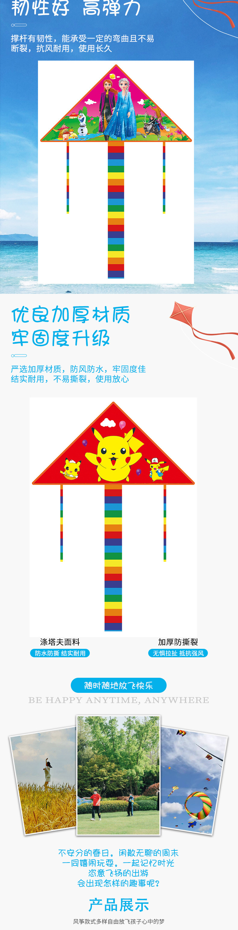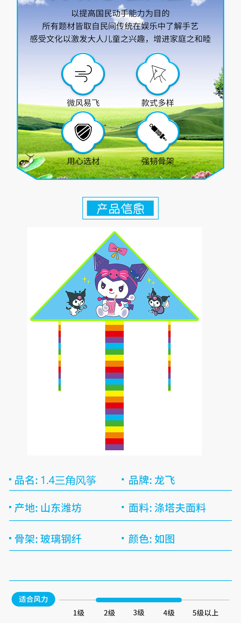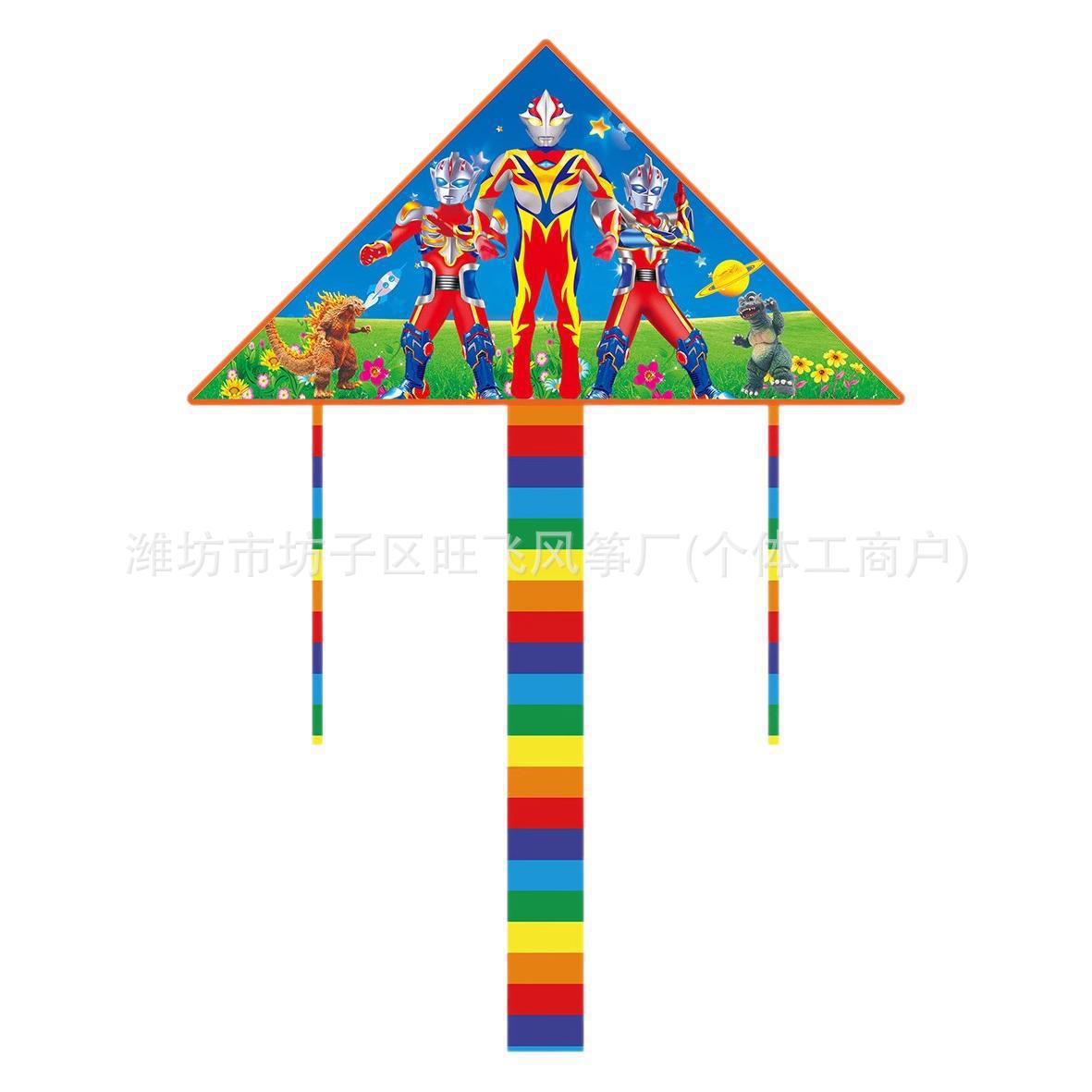 1.4米儿童卡通三角风筝潍坊风筝厂家批发微风易飞彩尾风筝摆摊