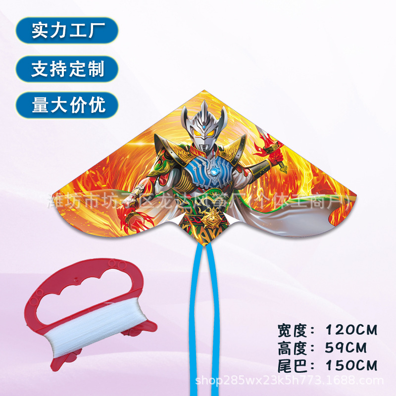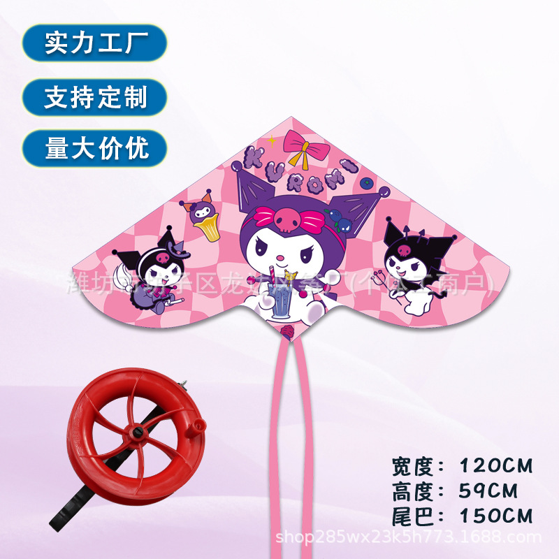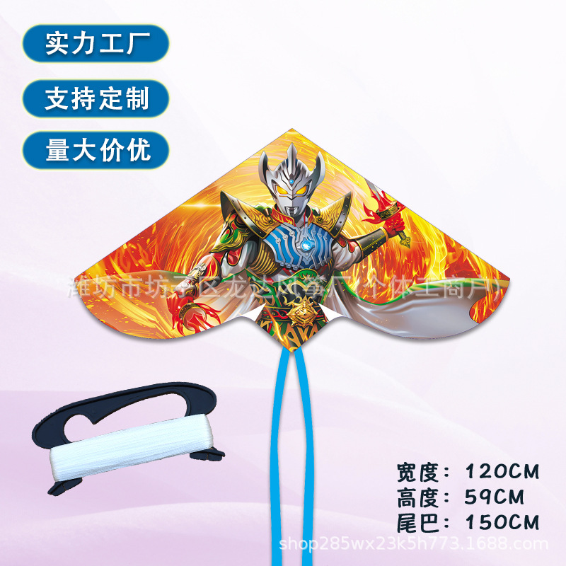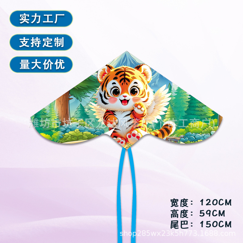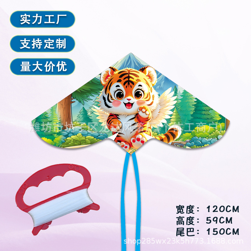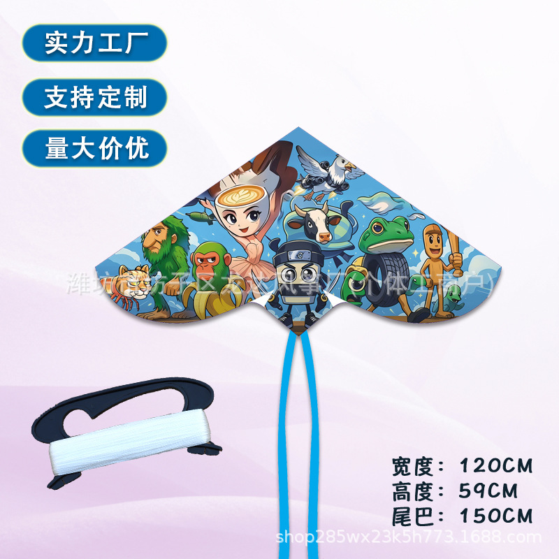 潍坊风筝1.2米双尾巴卡通风筝批发微风易飞儿童格子长尾风筝户外