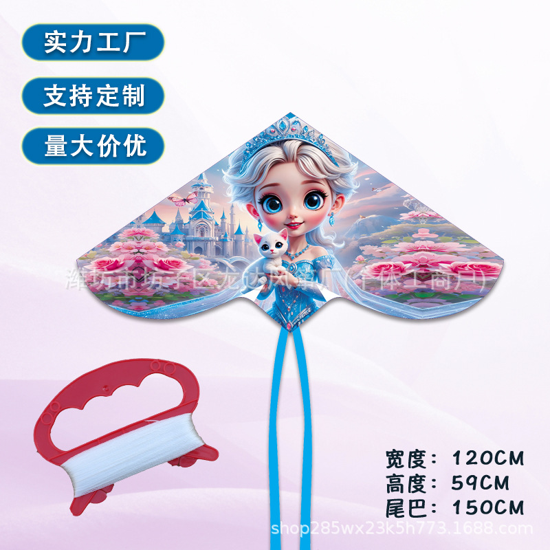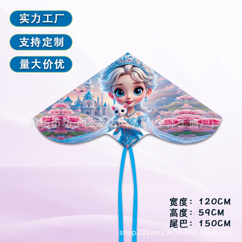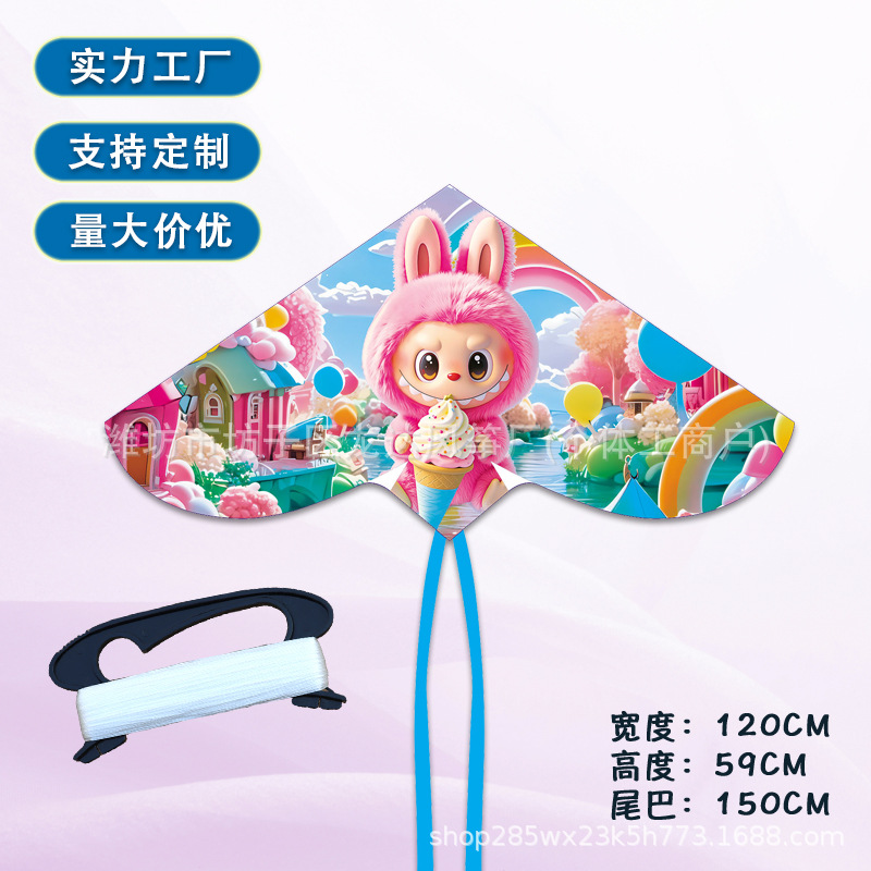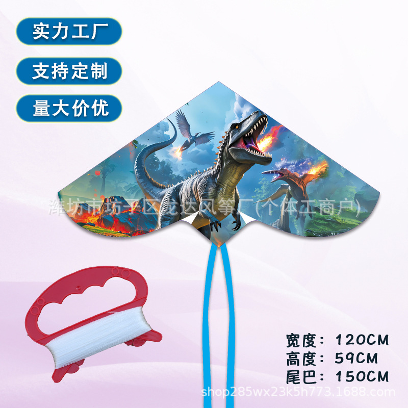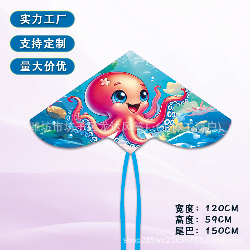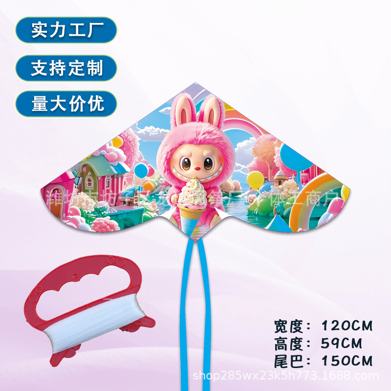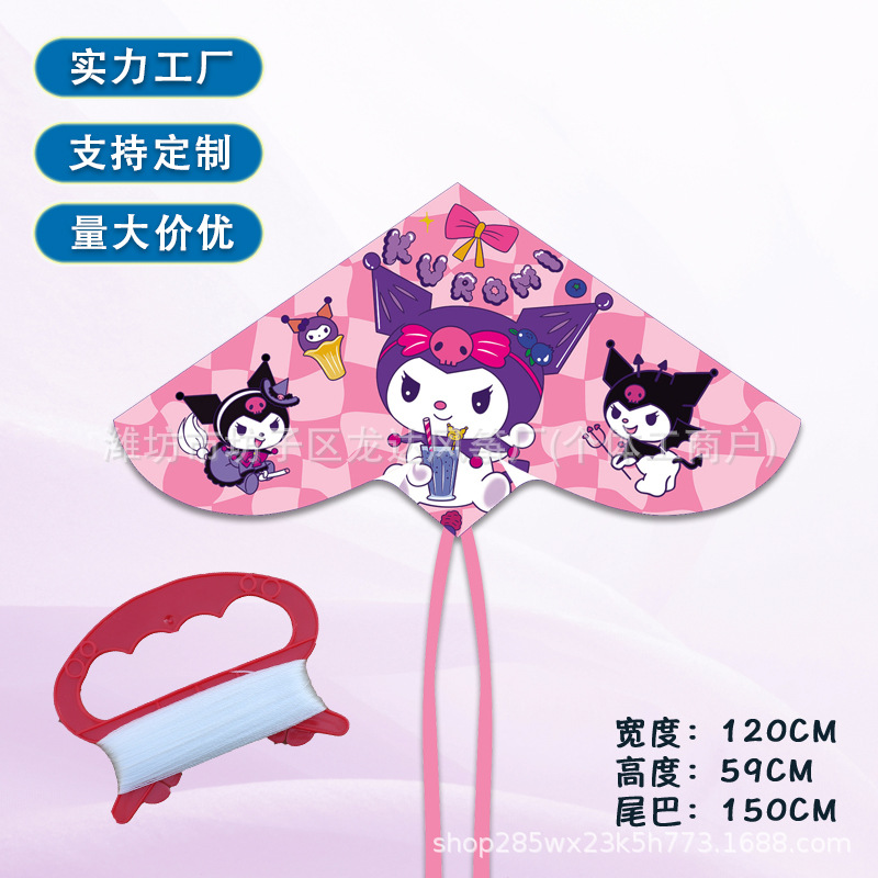 潍坊风筝1.2米双尾巴卡通风筝批发微风易飞儿童格子长尾风筝户外