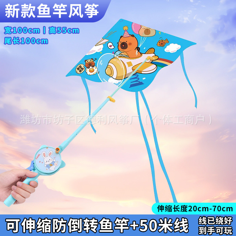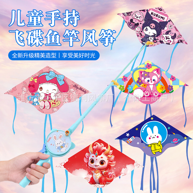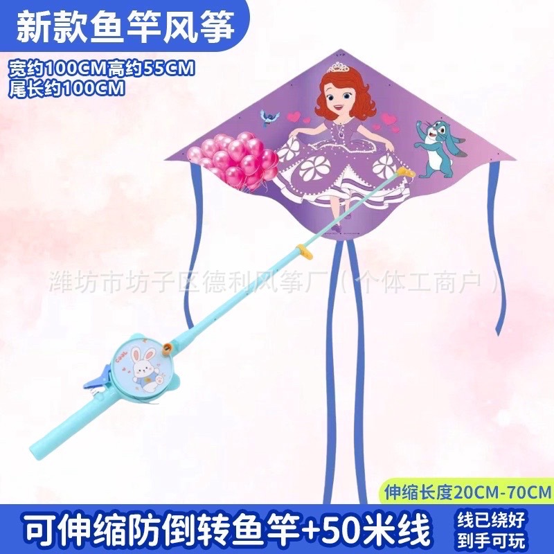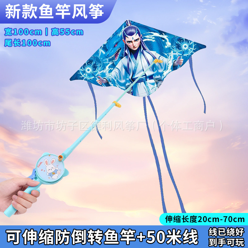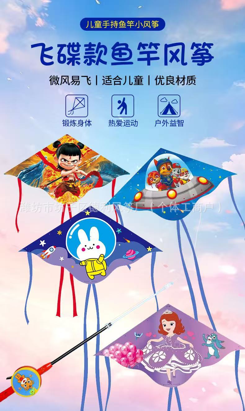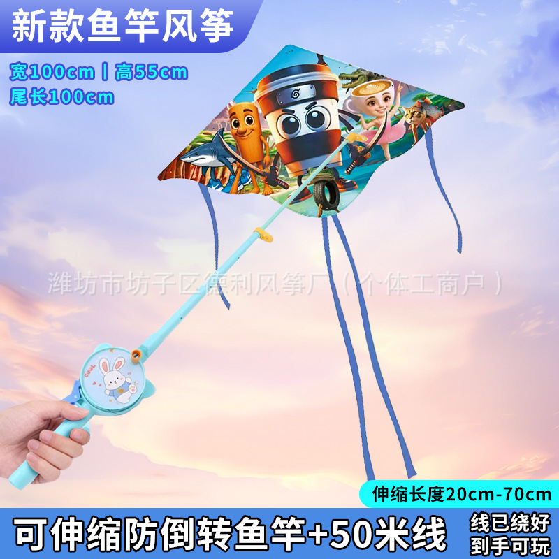钓鱼竿风筝批发新款儿童手持鱼竿风筝塑料小风筝公园户外地摊批发