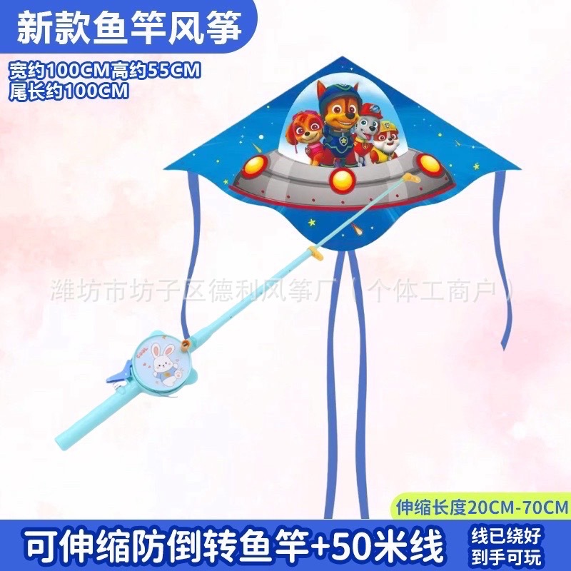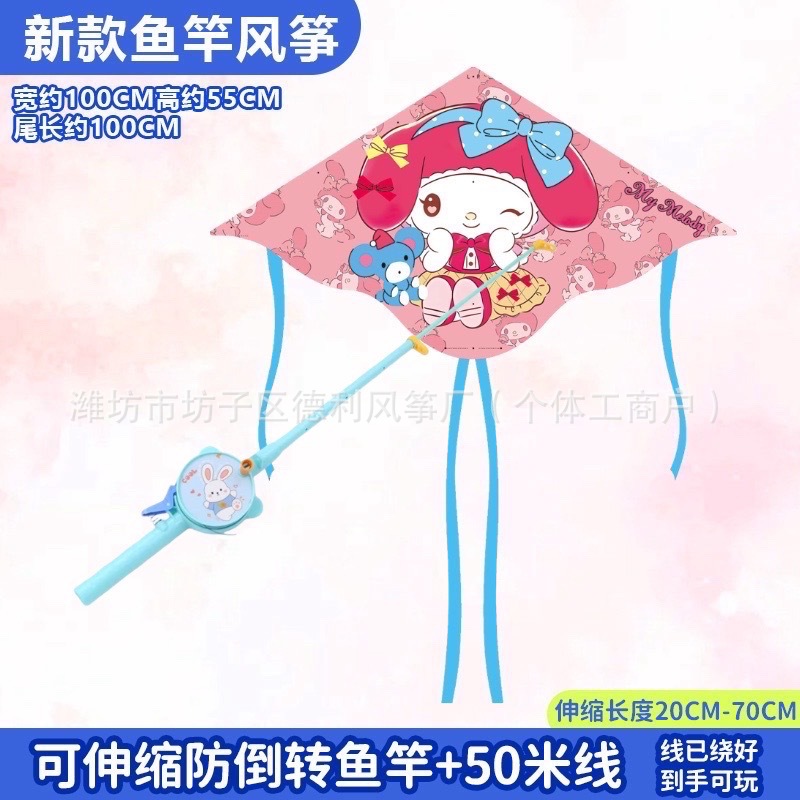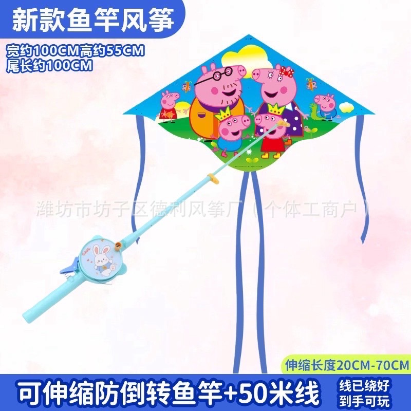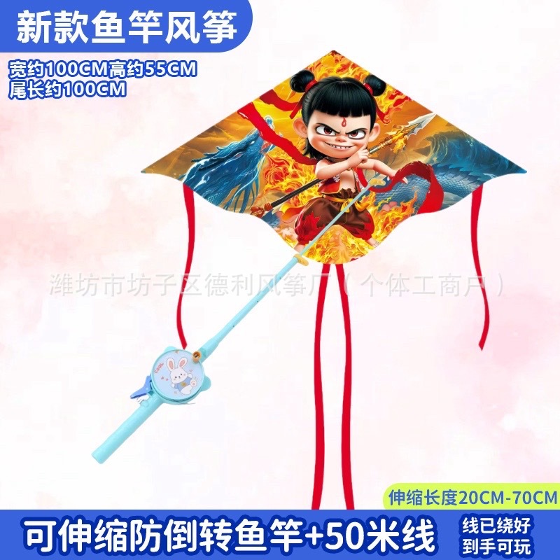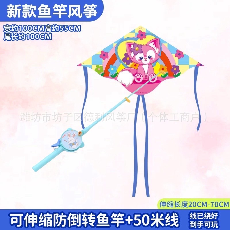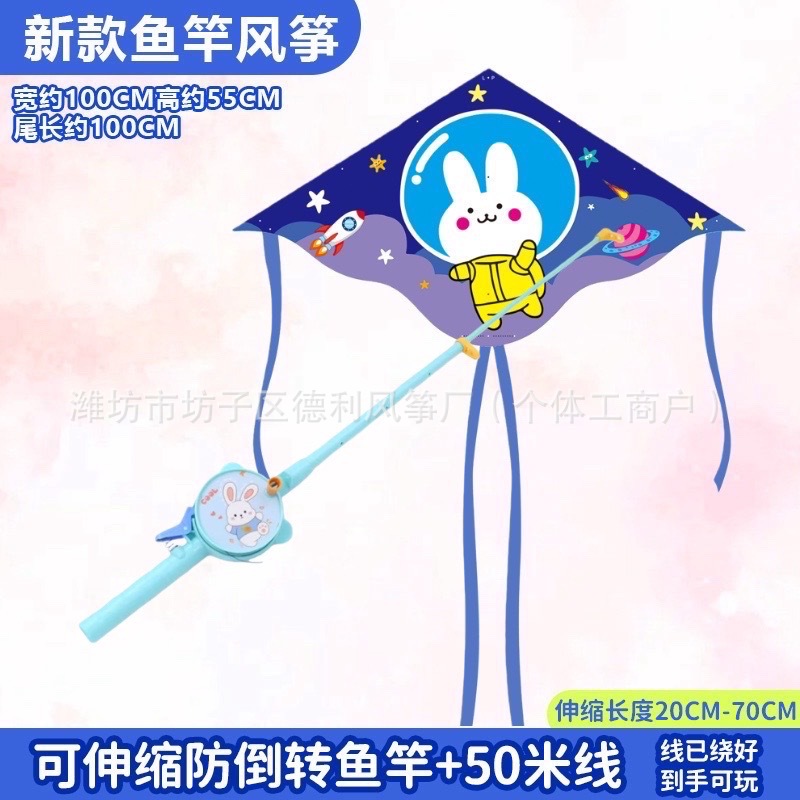 钓鱼竿风筝批发新款儿童手持鱼竿风筝塑料小风筝公园户外地摊批发