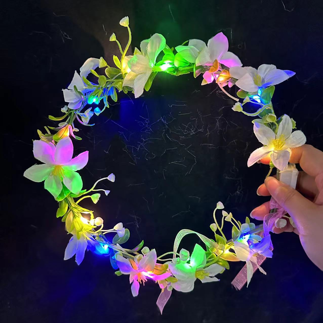 新款发光森系花环儿童公主发箍头饰夜市景区摆摊节日仙女闪光花环