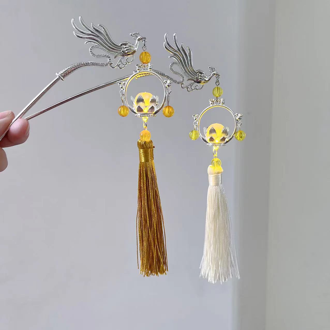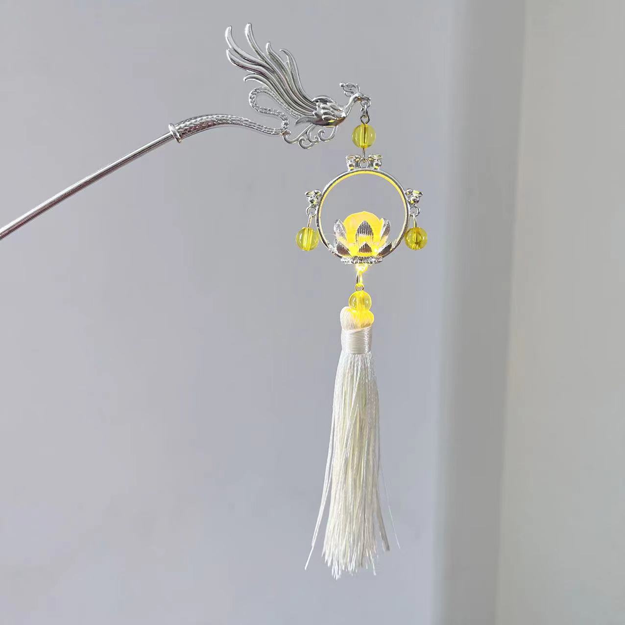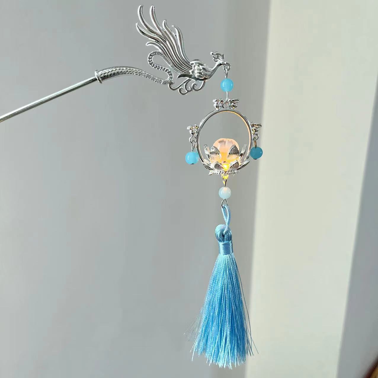 古装饰品发光宫灯凤凰莲花流苏发簪女生饰品宝莲灯旗袍配饰头饰