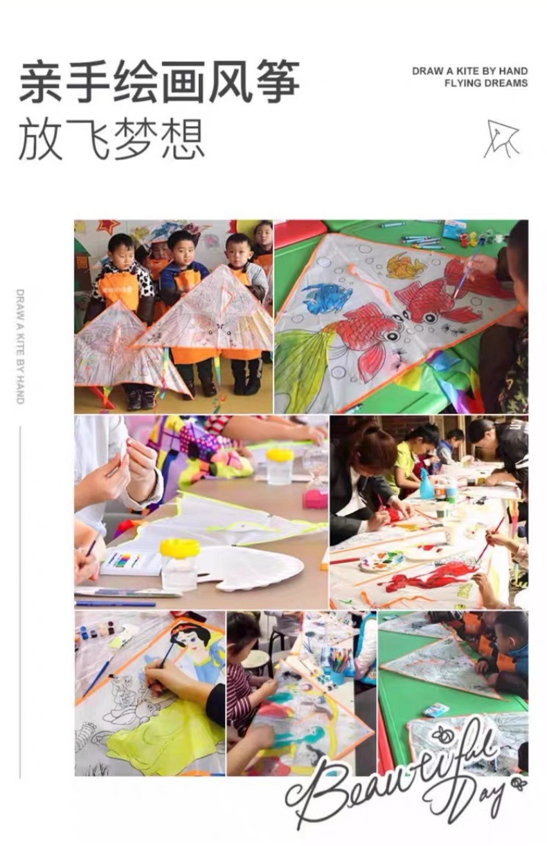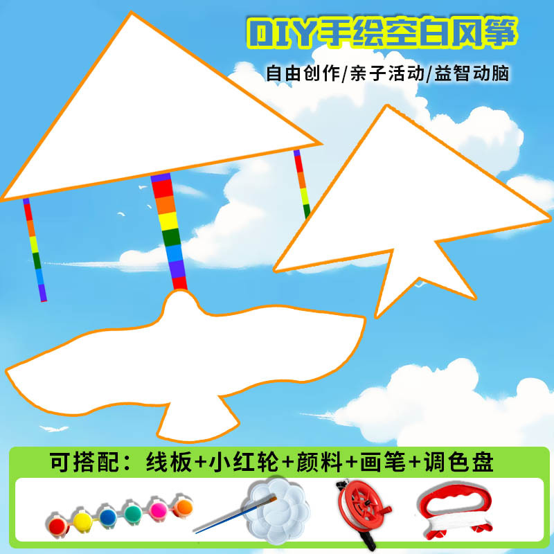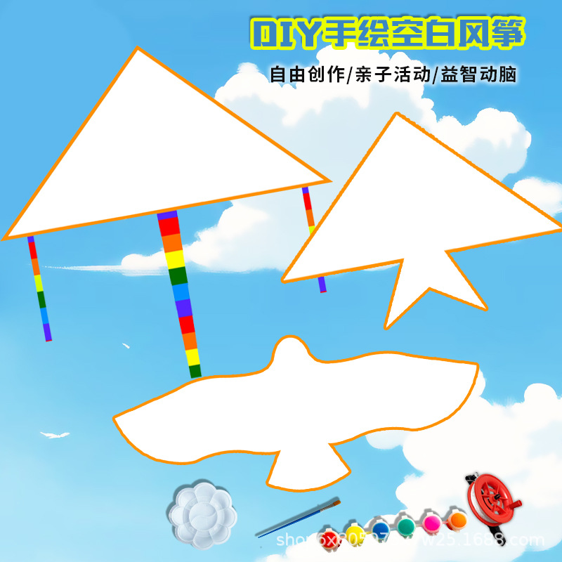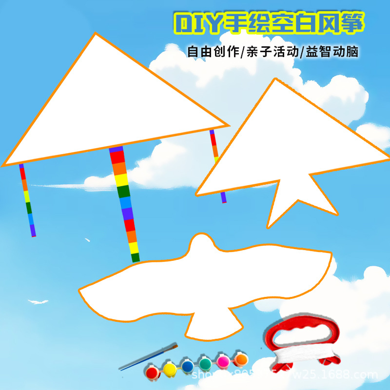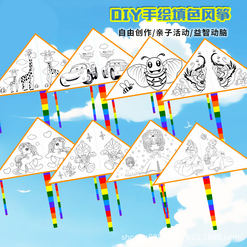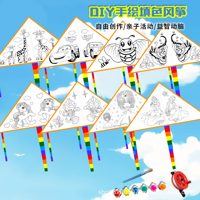 手绘风筝diy儿童手工绘画卡通填色空白教学自制风筝涂鸦材料包