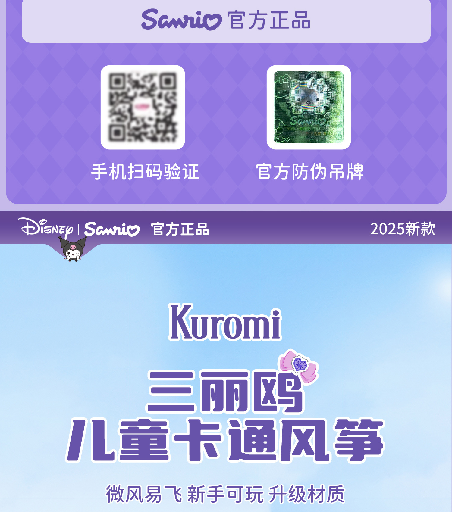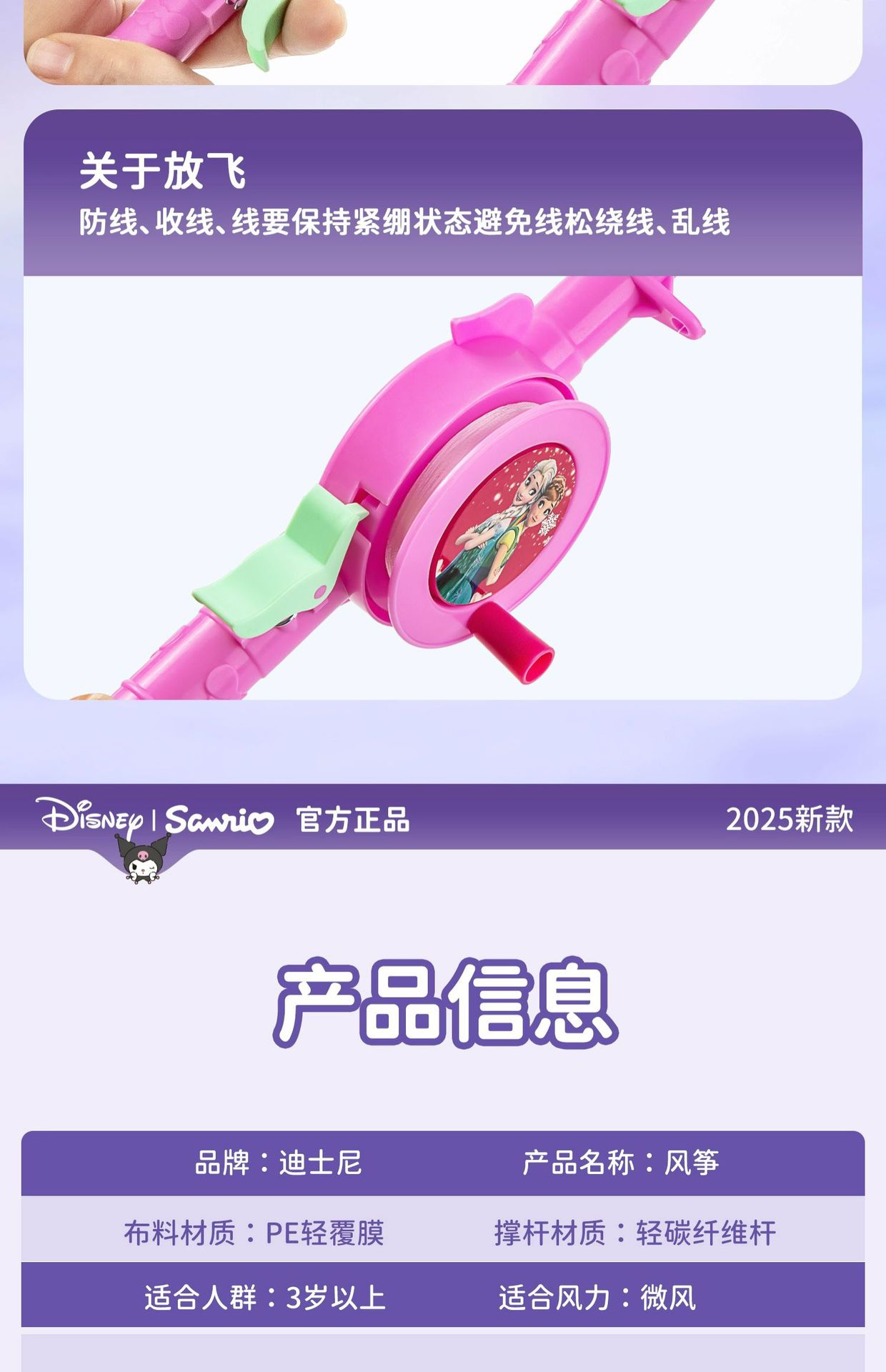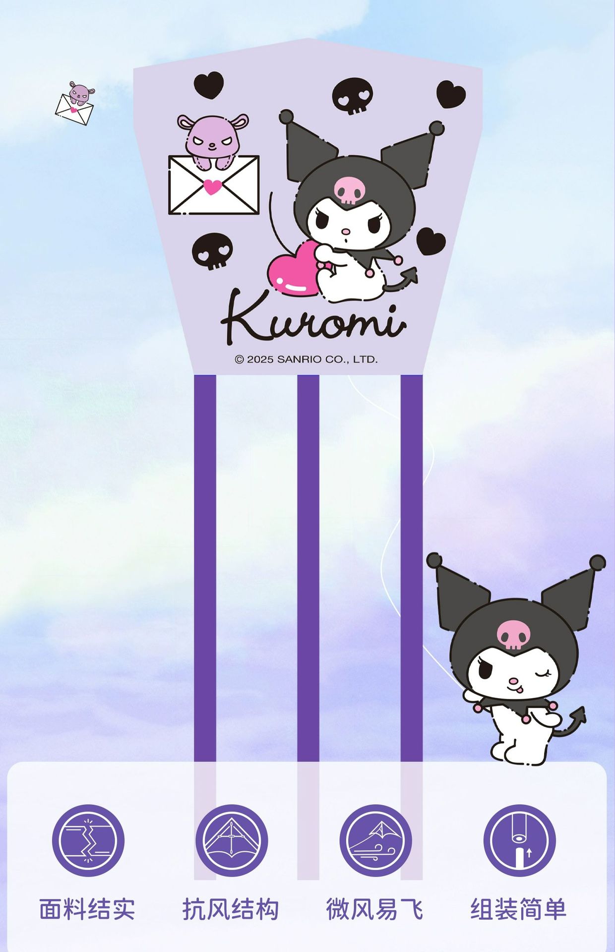 方片风筝儿童库洛米2026新款手持大人专用微风易飞小号迷你潍坊