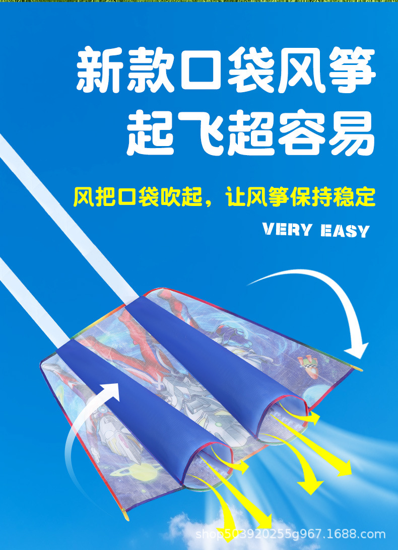 潍坊风筝新款2025卡通可爱口袋风筝无骨风筝 可随身携带 微风易飞