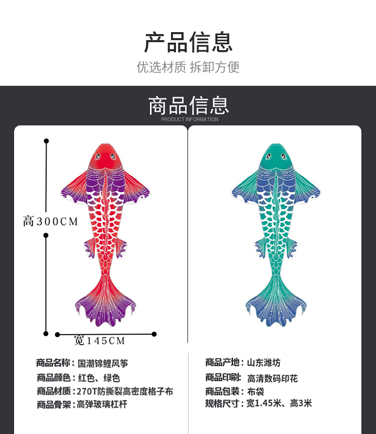 潍坊新款大锦鲤风筝 儿童成人大型国潮富贵鱼风筝 带线轮厂家批发