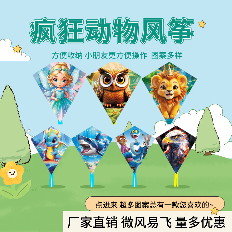 新款菱形风筝批发儿童卡通潍坊厂家动物城亲子玩具摆摊潮玩便携