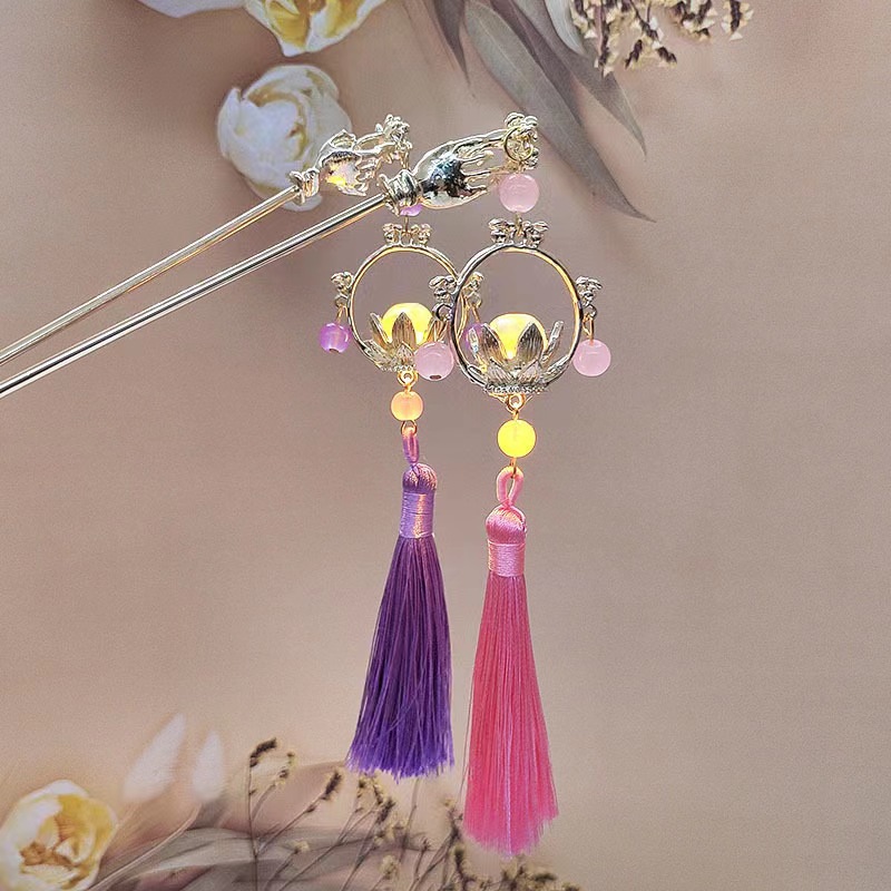 古风发光发簪发光灯笼景区摆摊爆款流苏发钗批发汉服步摇头饰发饰