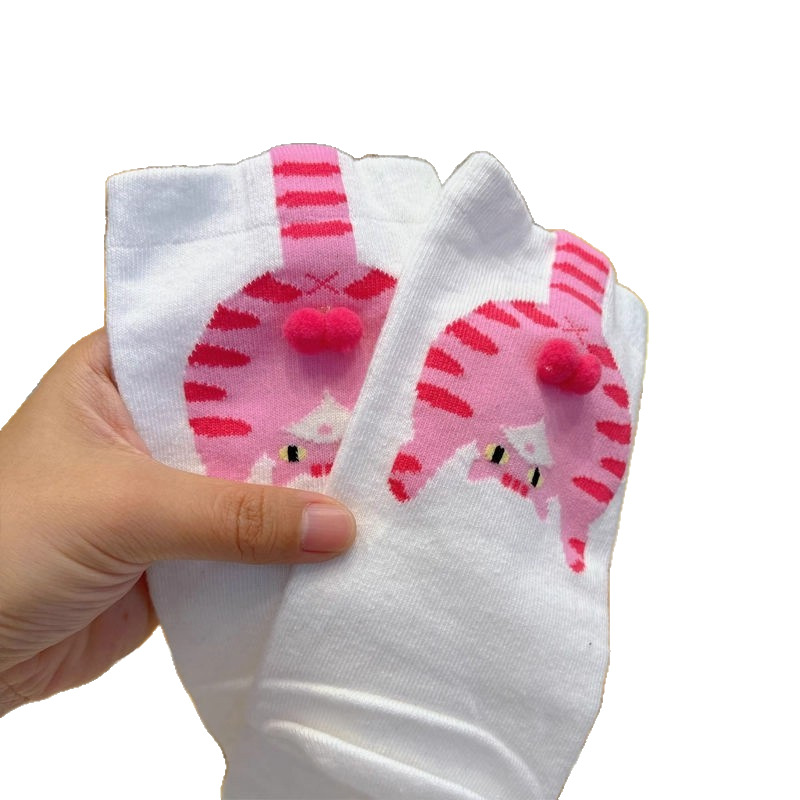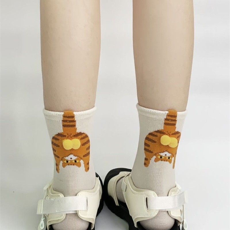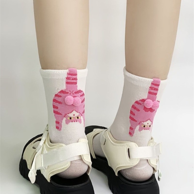 春夏季情侣袜可爱中筒百搭女堆堆袜四季袜卡通猫咪叮当蛋ins日系