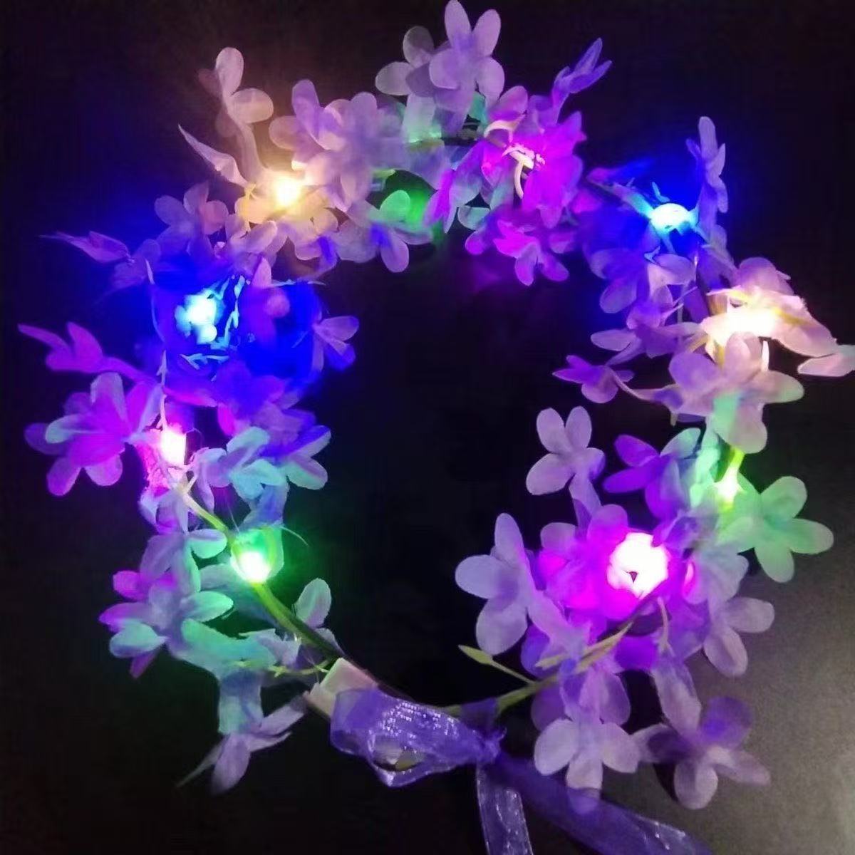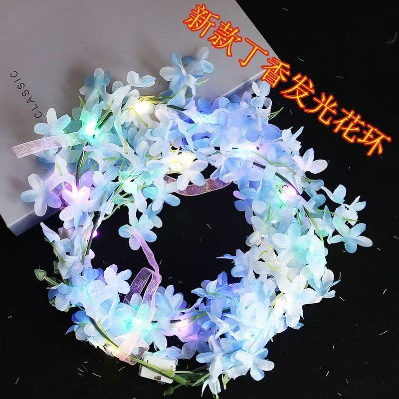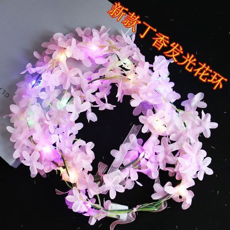 新款丁香花森系发光夏威夷花环发箍仙女天使玩具礼品夜市地摊头饰