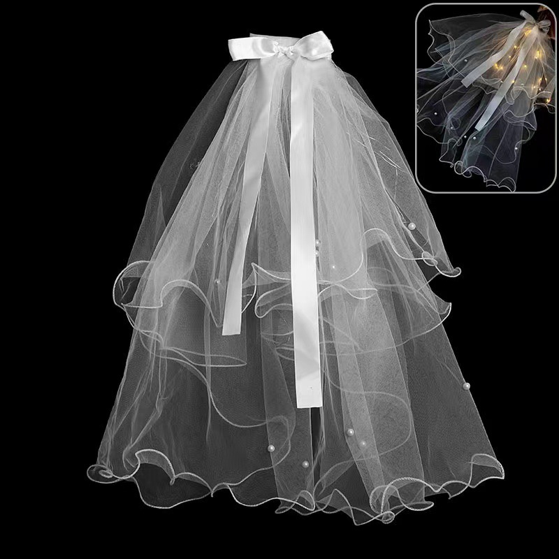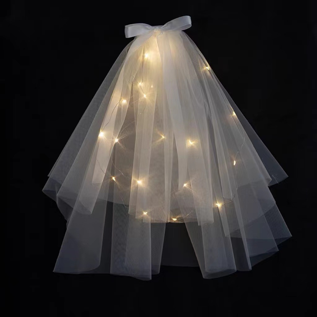 学校表演幼儿园头纱节日礼品装扮发光头纱儿童发饰蝴蝶结配饰